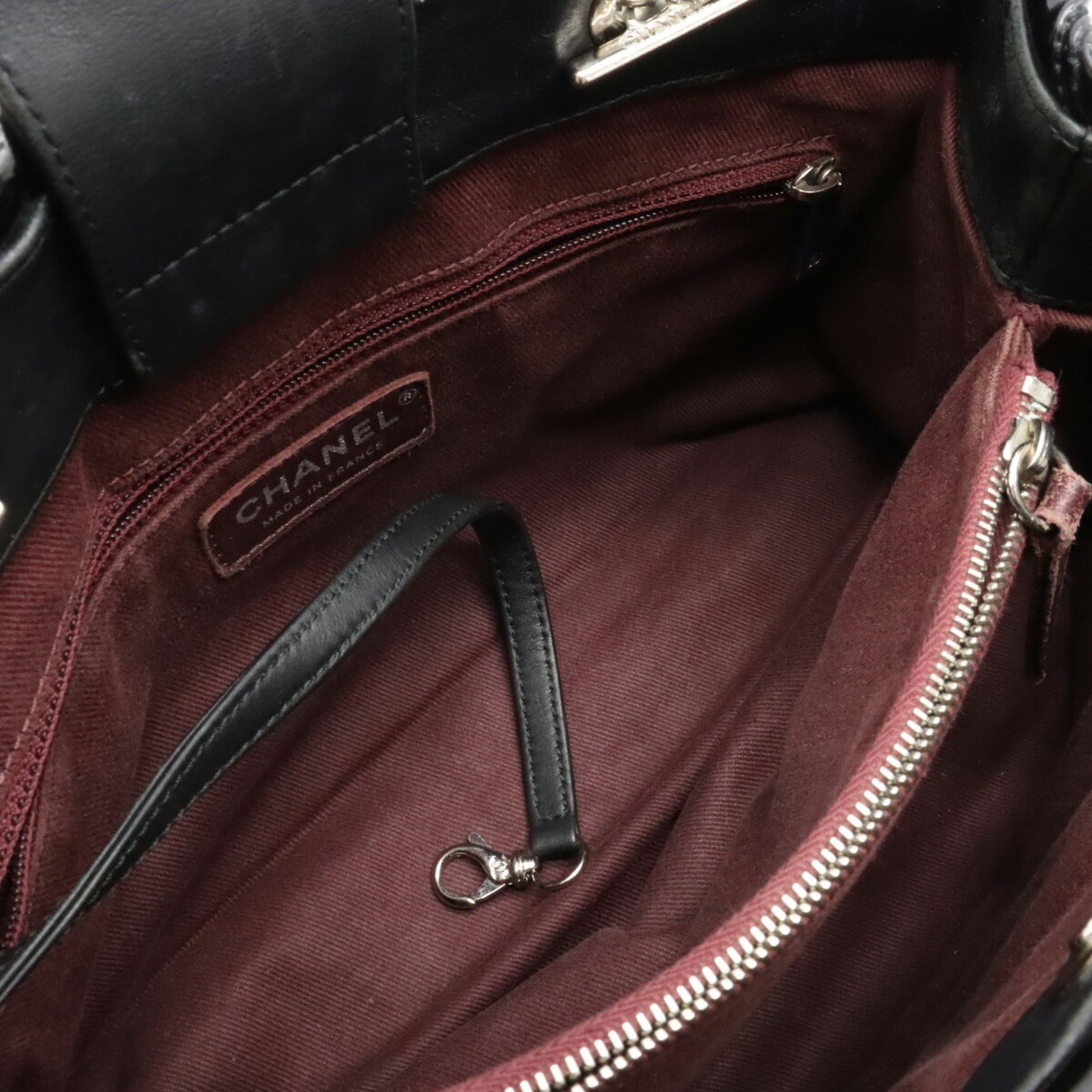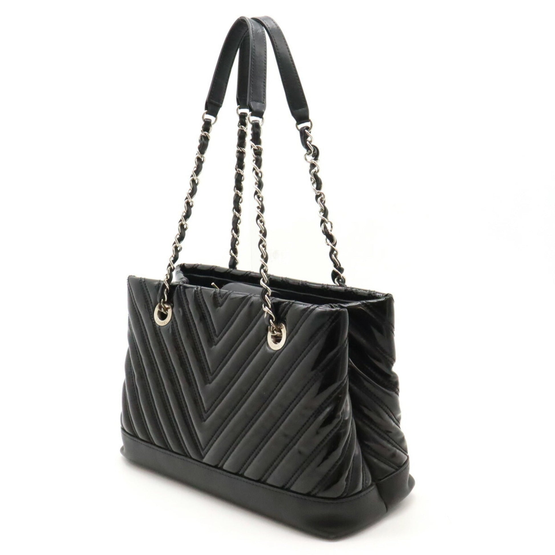 CHANEL V-stitch chevron tote bag, chain shoulder enamel leather, black A93052