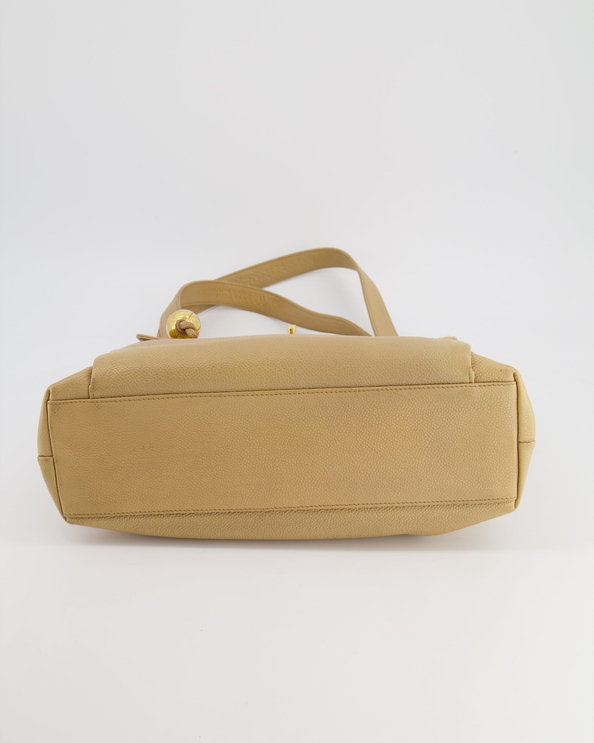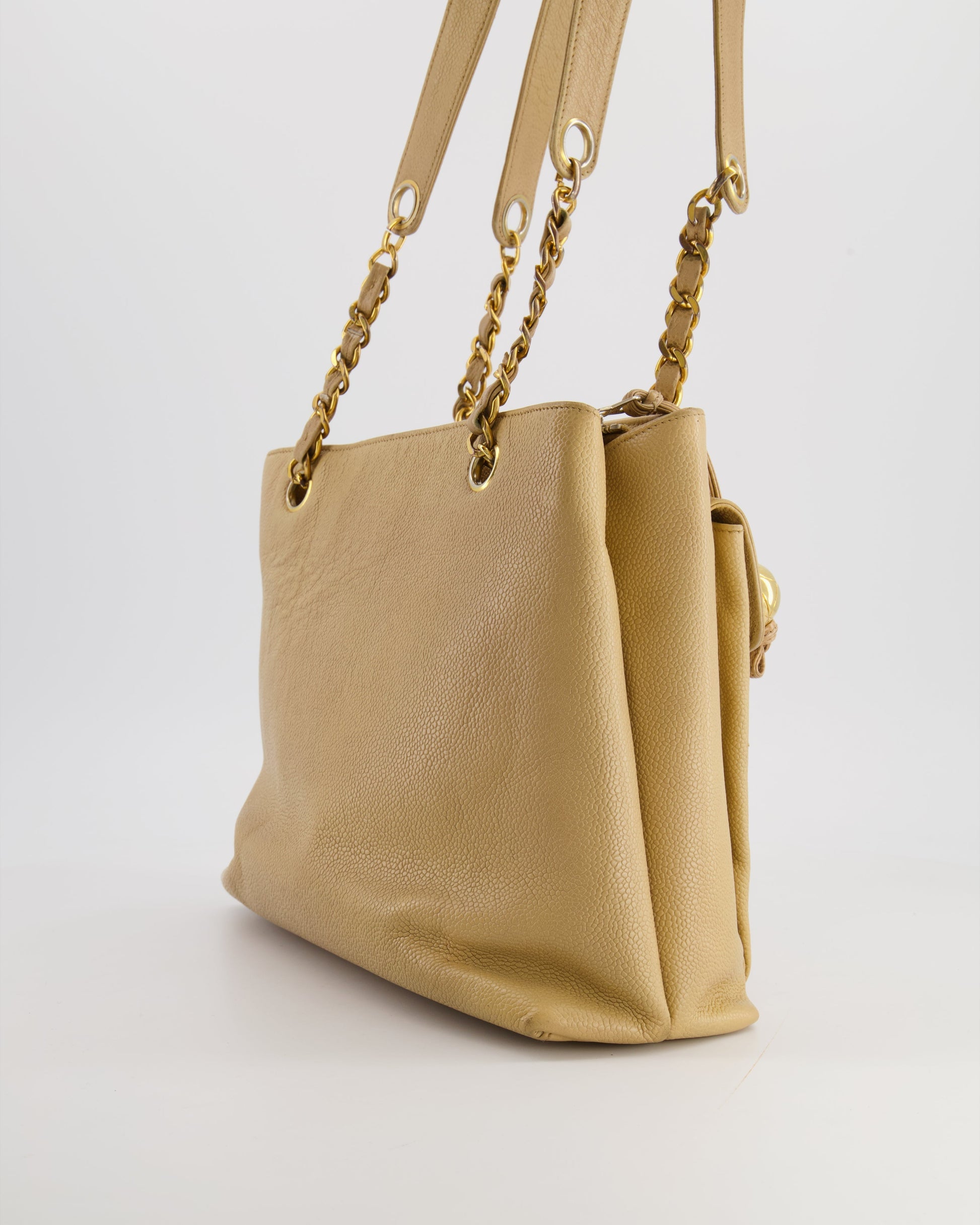 Chanel Vintage Beige Caviar CC Logo Tote Bag with 24k Gold Hardware