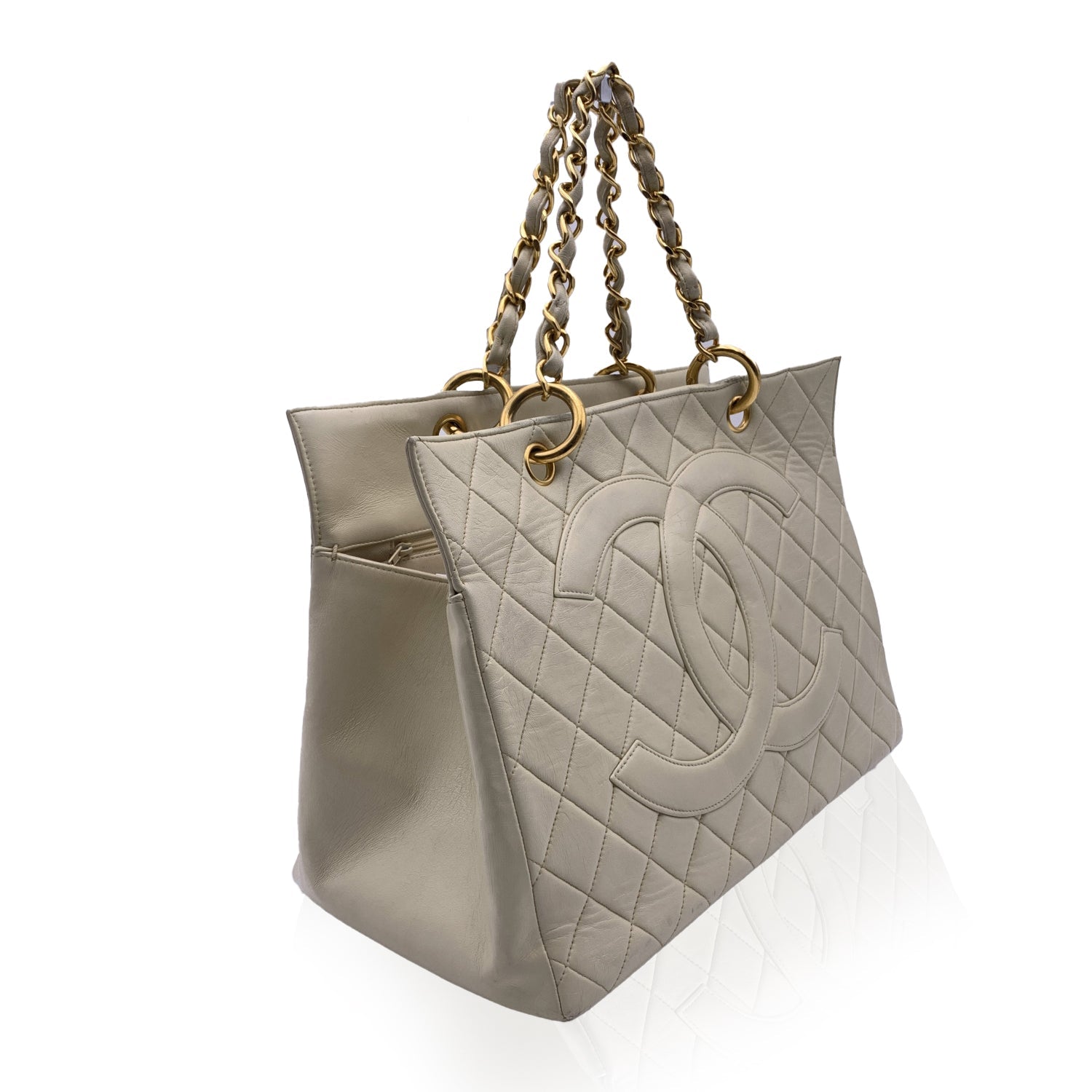 CHANEL Vintage Beige Quilted Leather Gst 1997 Grand Shopping Tote