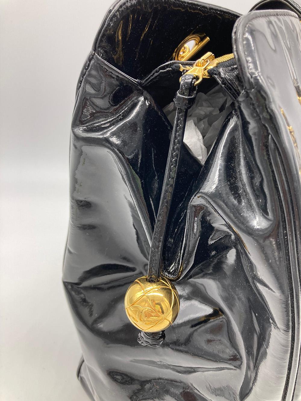 Vintage Chanel Black Patent XL Weekender Super Model Tote in fair condition.