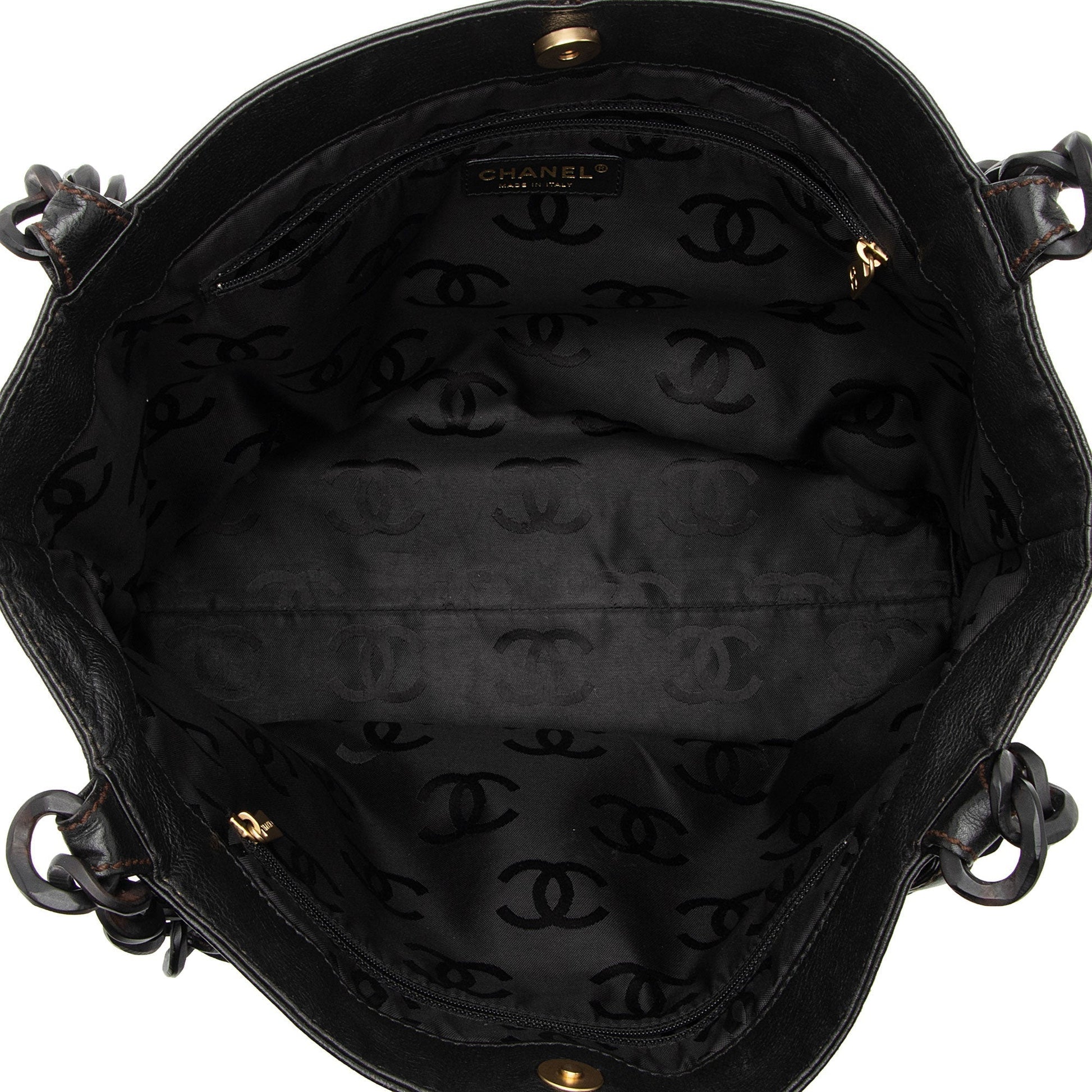 Chanel Vintage Leather Wood Chain Tote (SHF-bz2XaF)