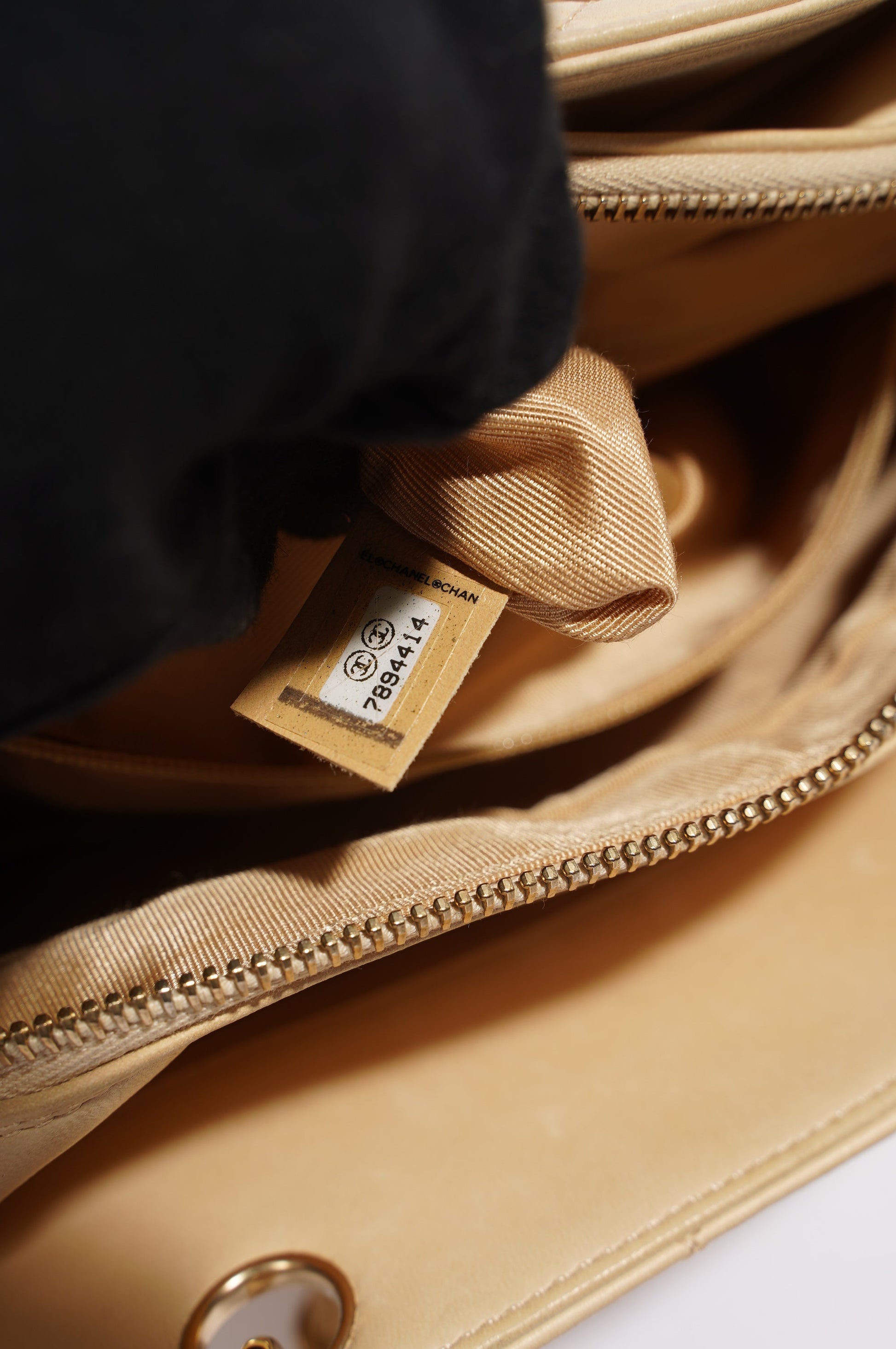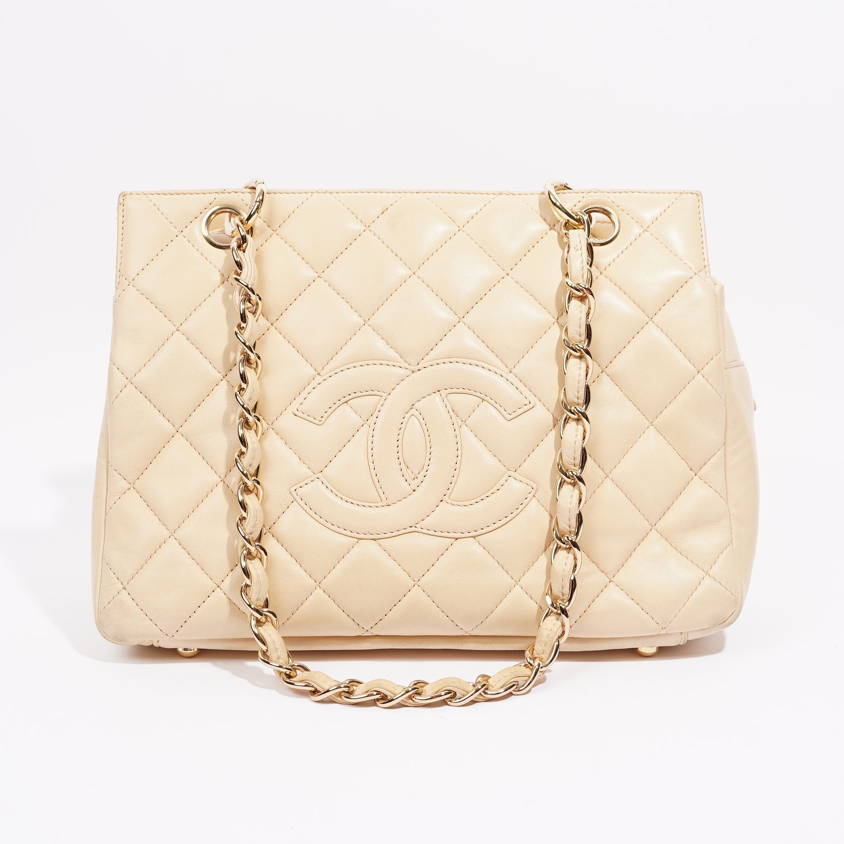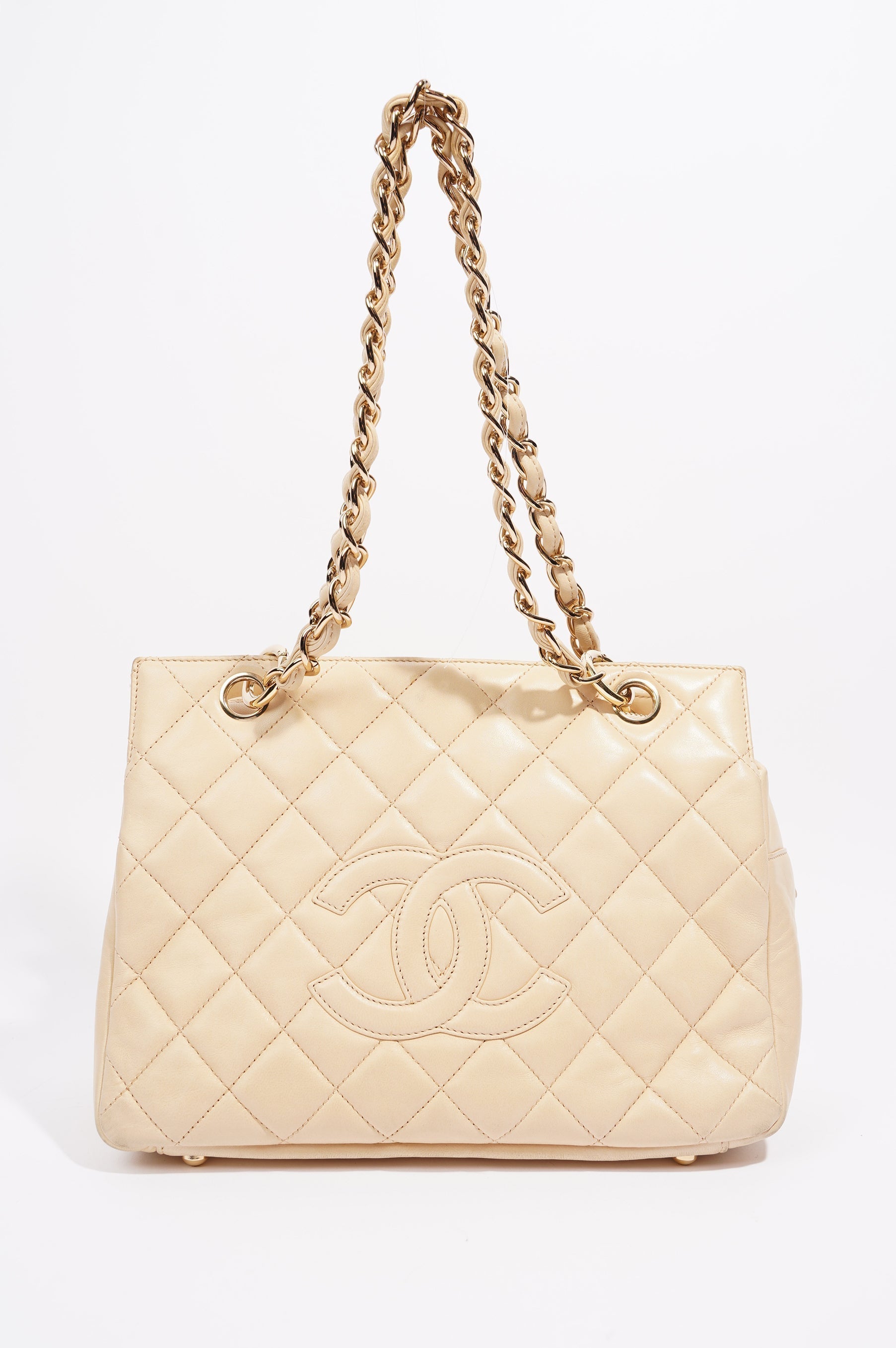 Chanel Womens Vintage Petit Timeless Tote Cream Leather Small