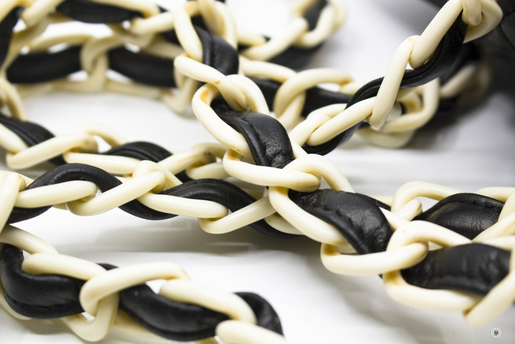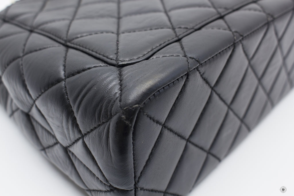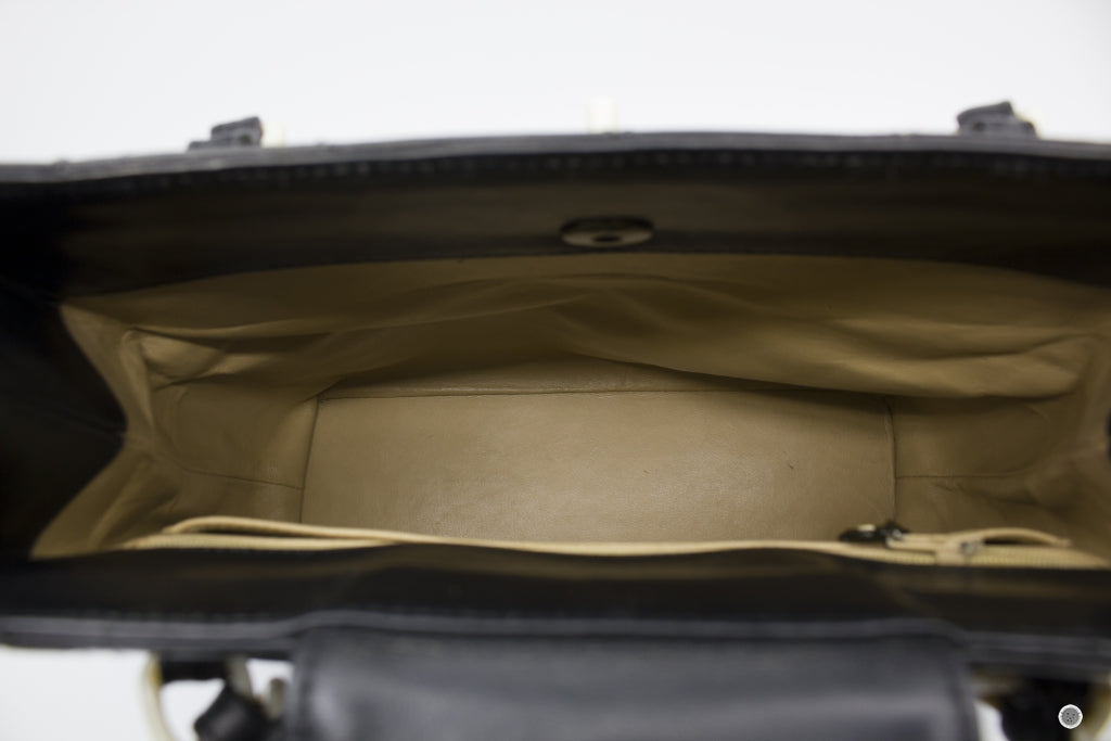 Chanel Vintage With Resin Woven Chain And Lock Black Lambskin Tote Bag