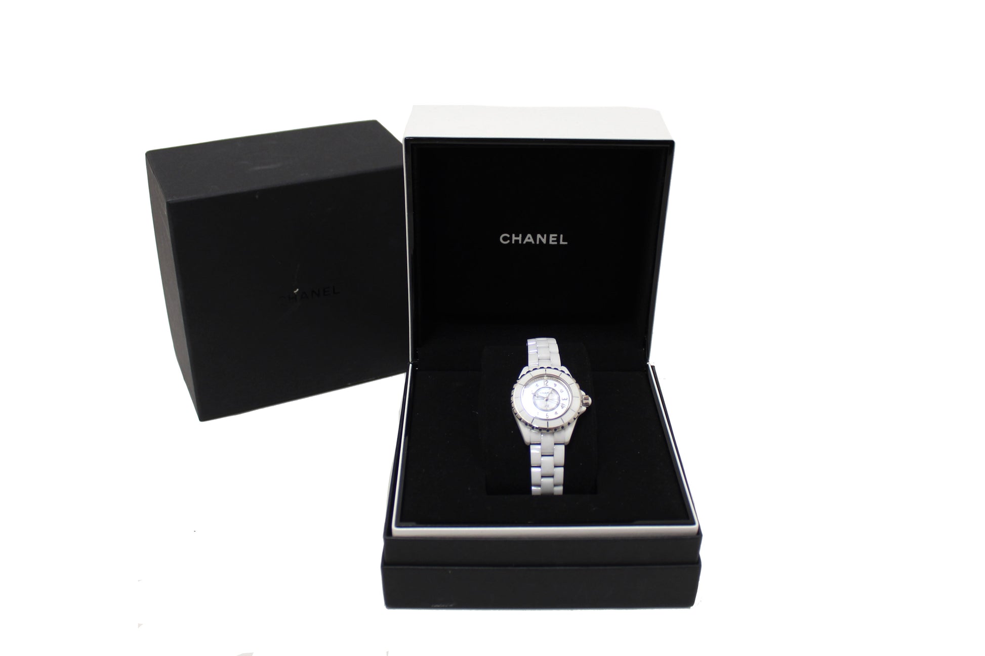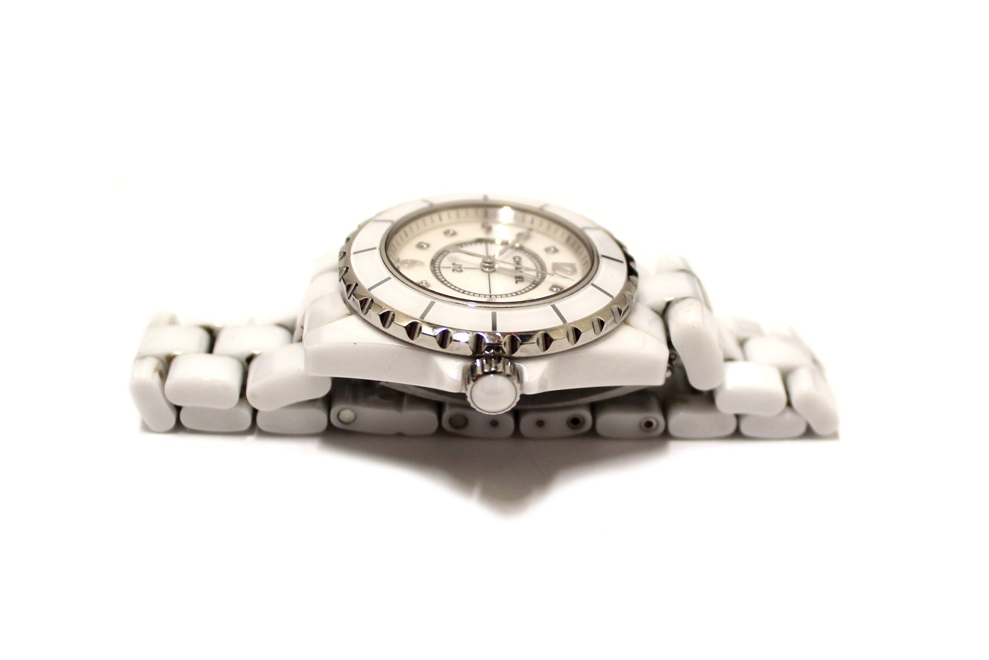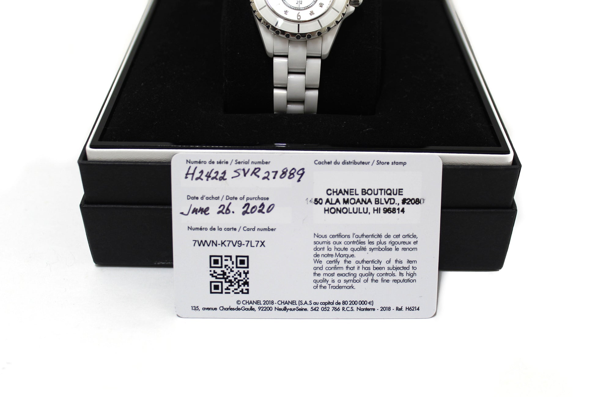 Chanel White Ceramic J Diamond Quatz Watch mm H