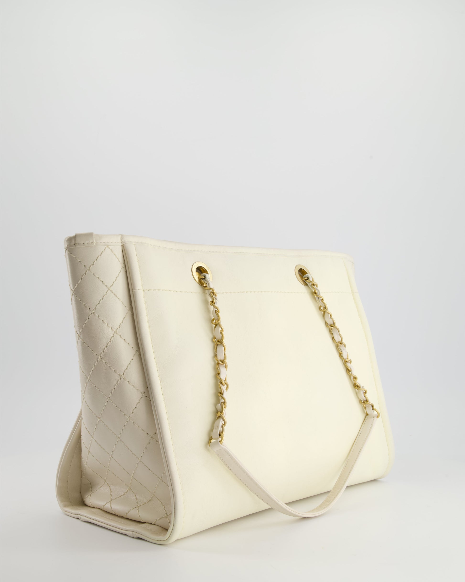 Chanel White Leather Deauville Tote Bag with Gold Hardware