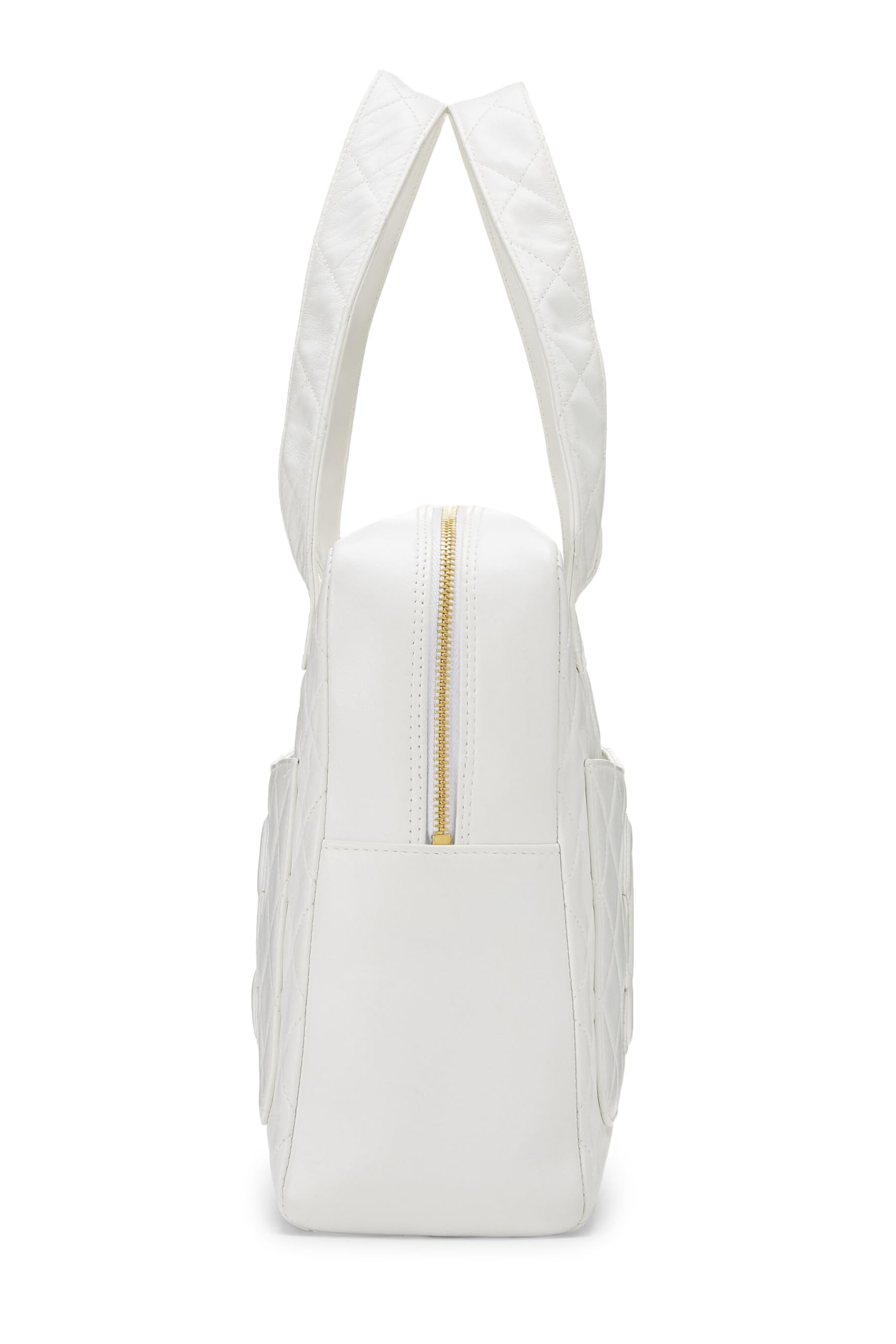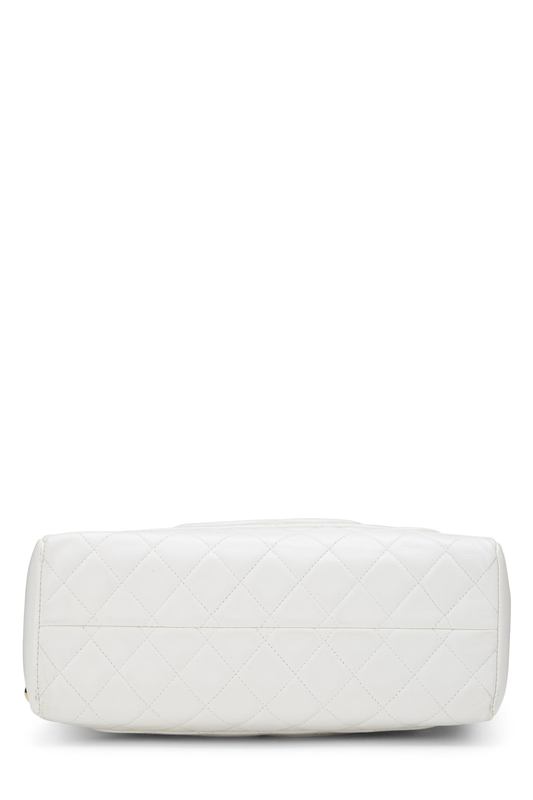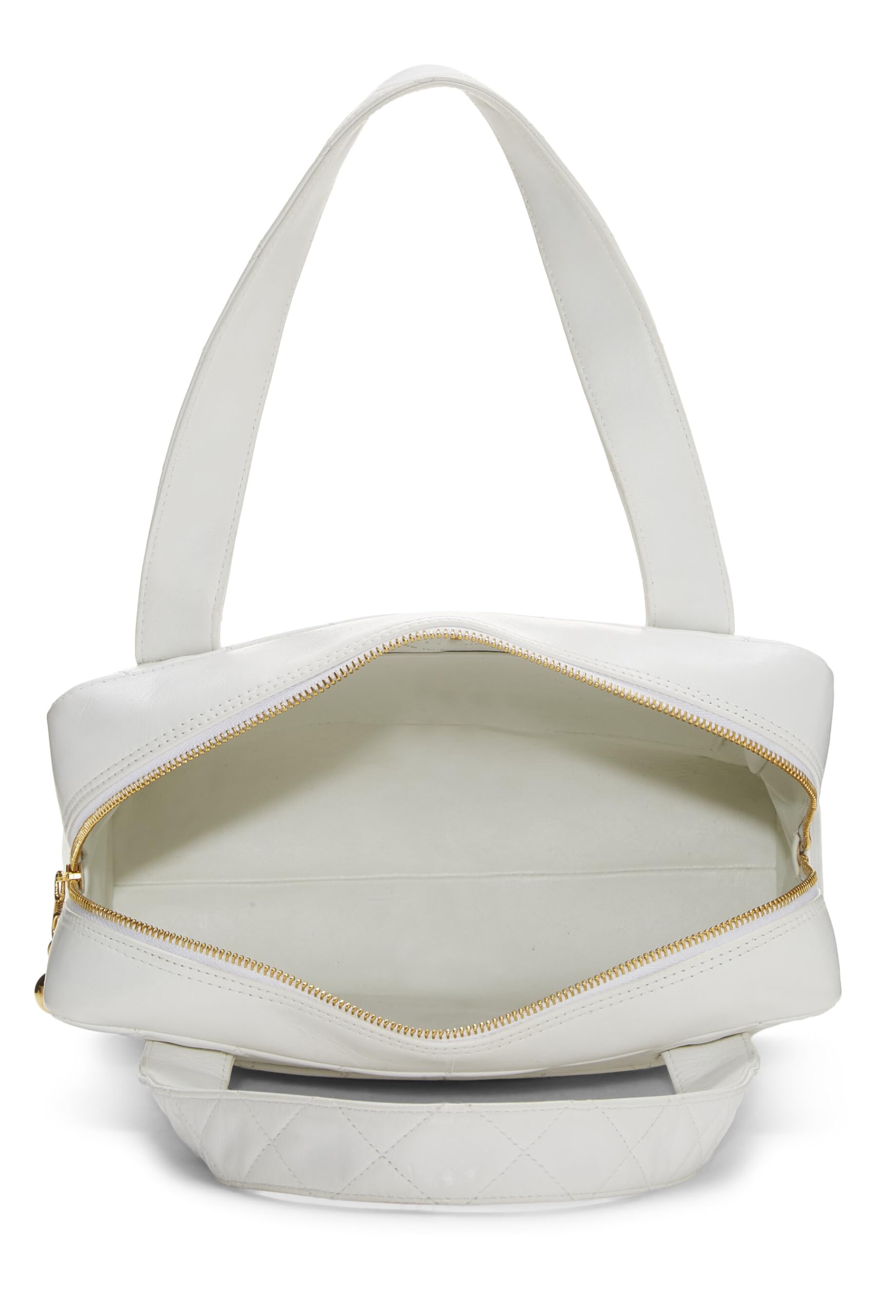 Chanel, White Quilted Lambskin Top Handle Tote Mini, White