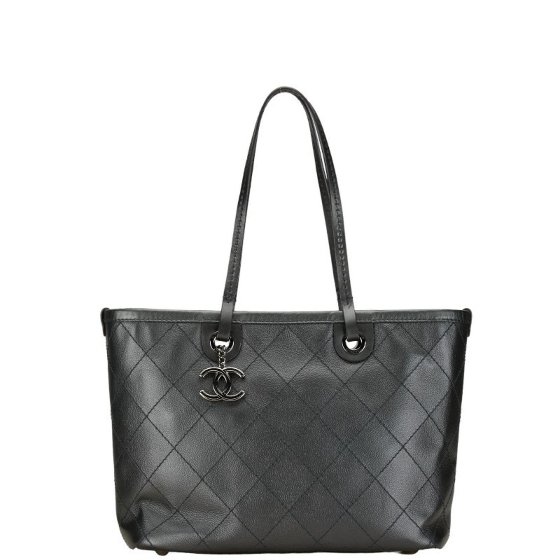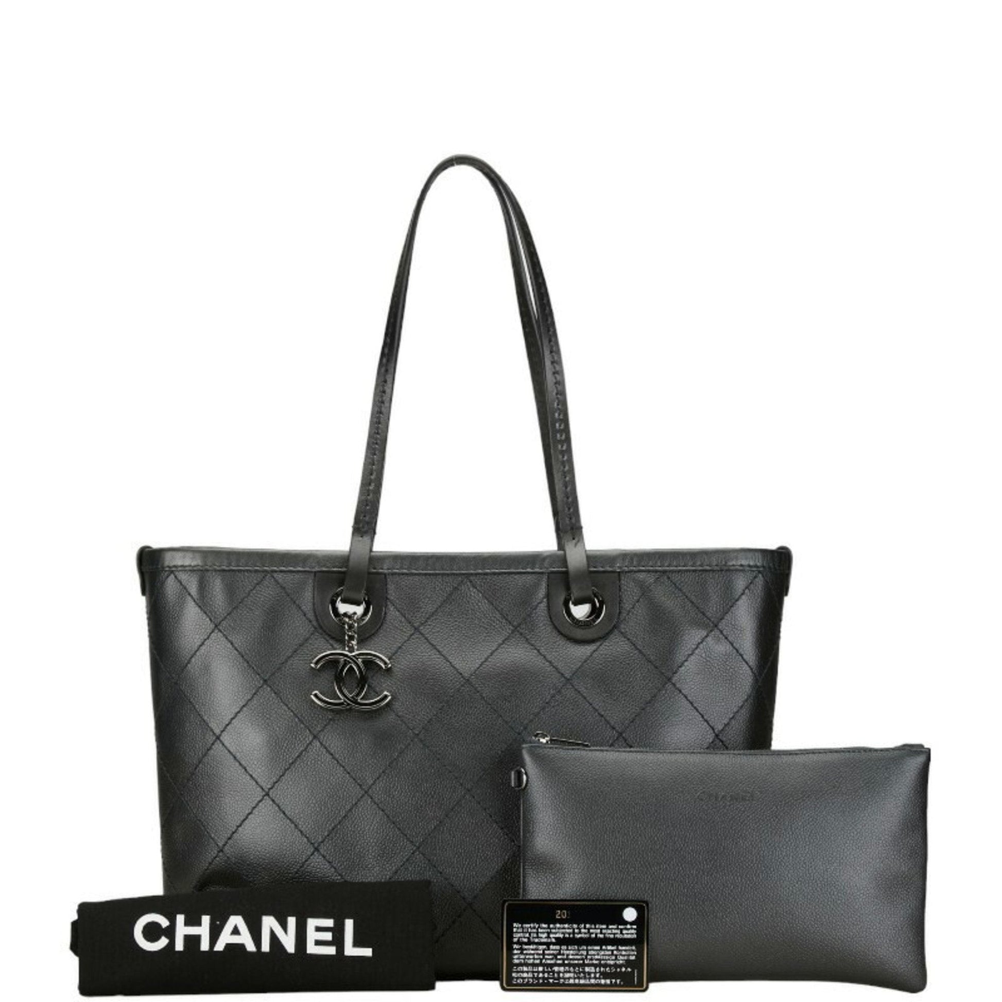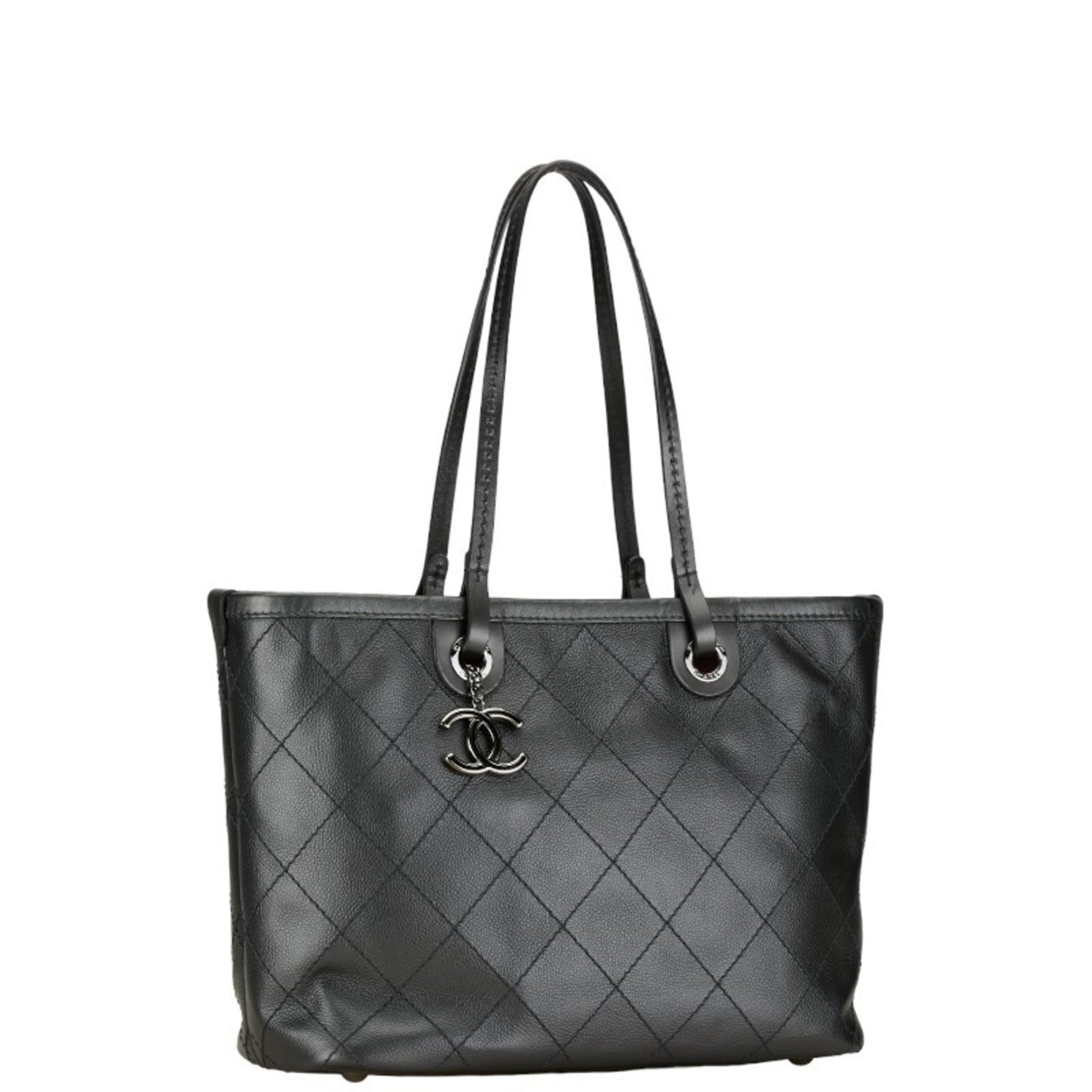 CHANEL Wild Stitch Coco Mark On The Road Tote Bag Shoulder Black Caviar Skin Leather Women's