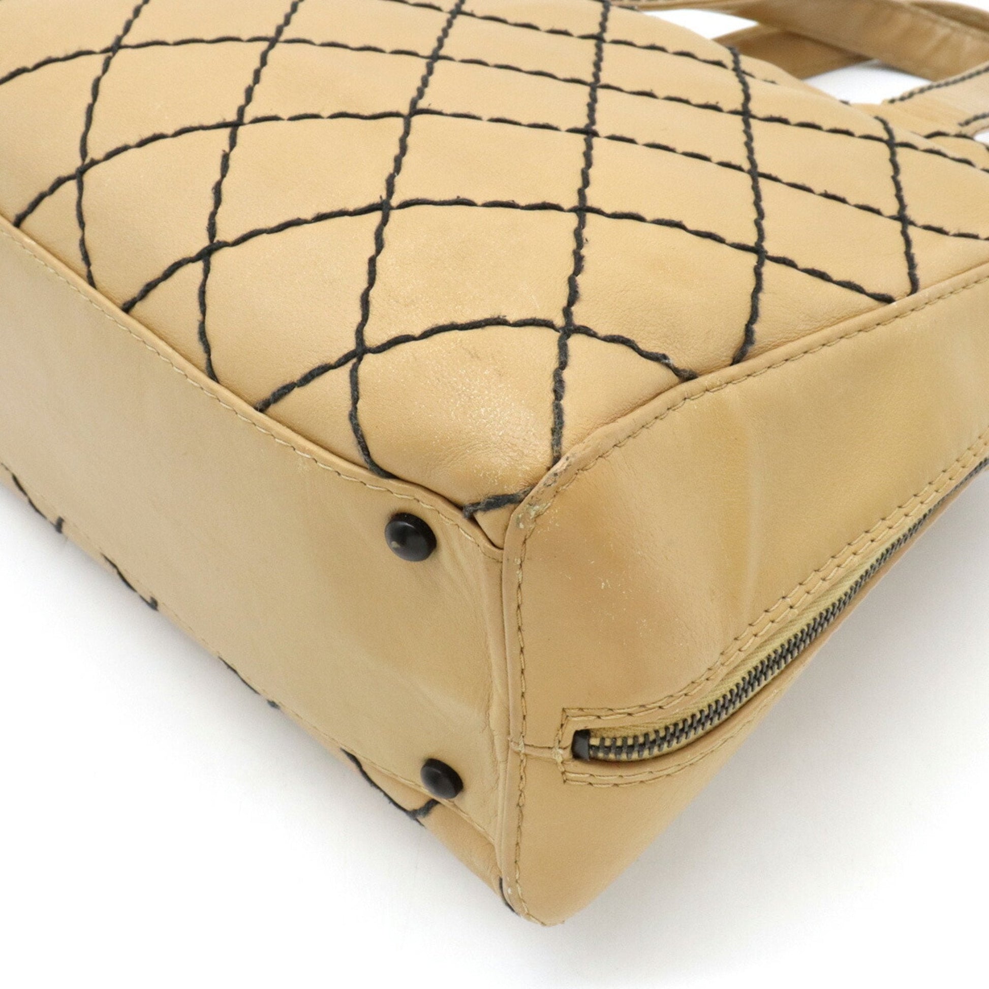 Chanel Wild Stitch Coco Mark Tote Bag HandBag Leather Beige A14693