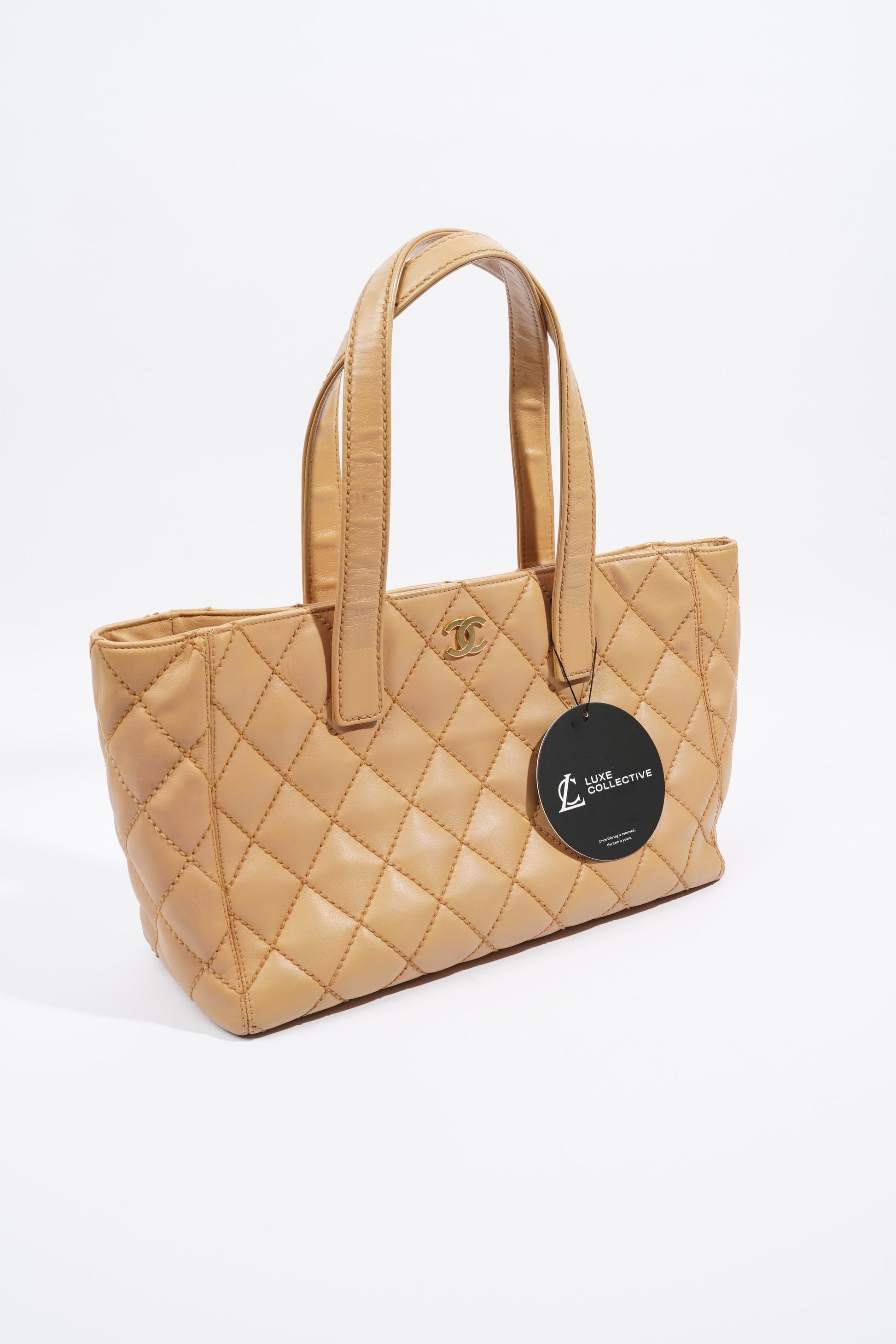 Chanel Wild Stitch Tote Bag Beige Lambskin Leather