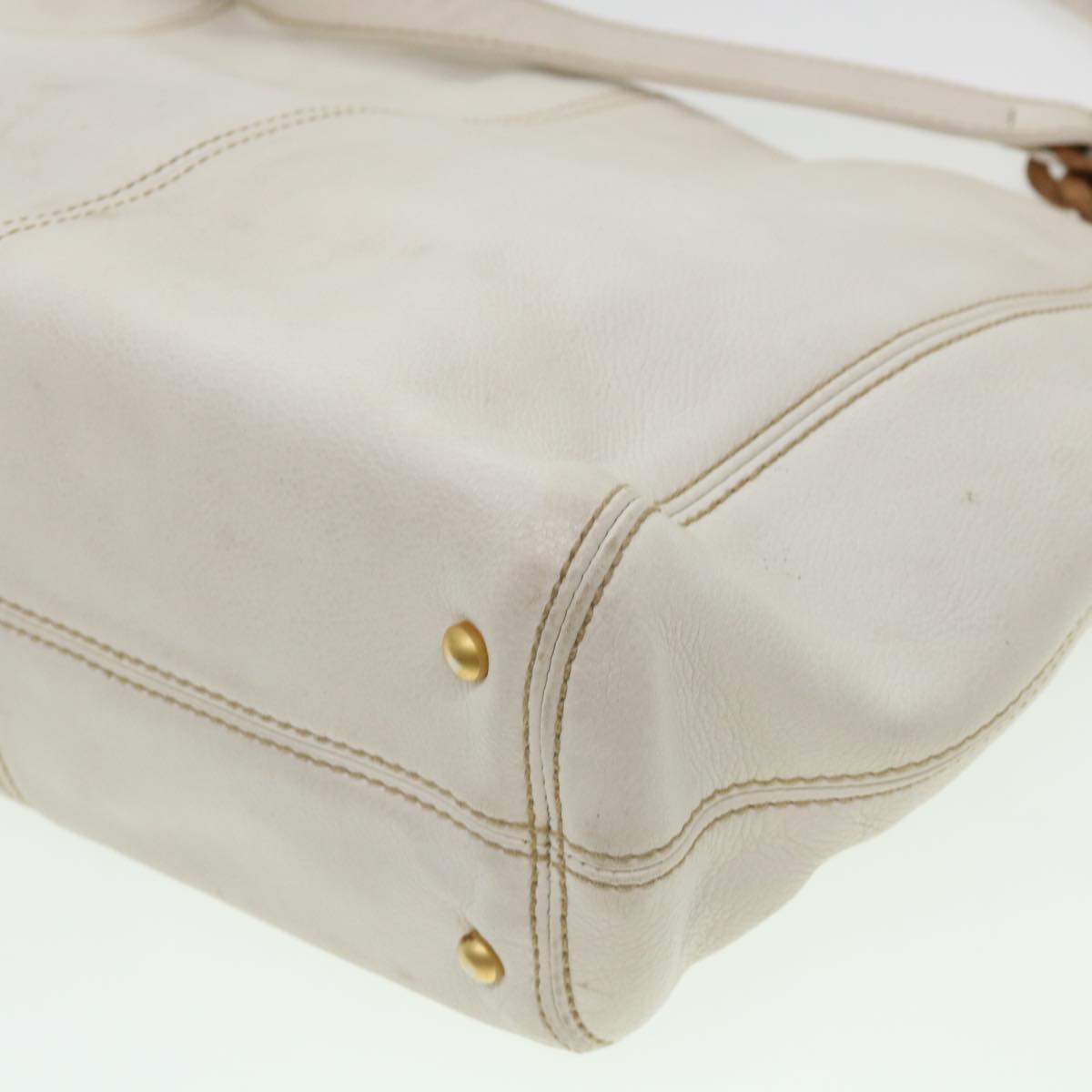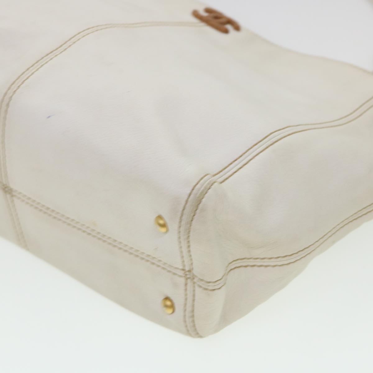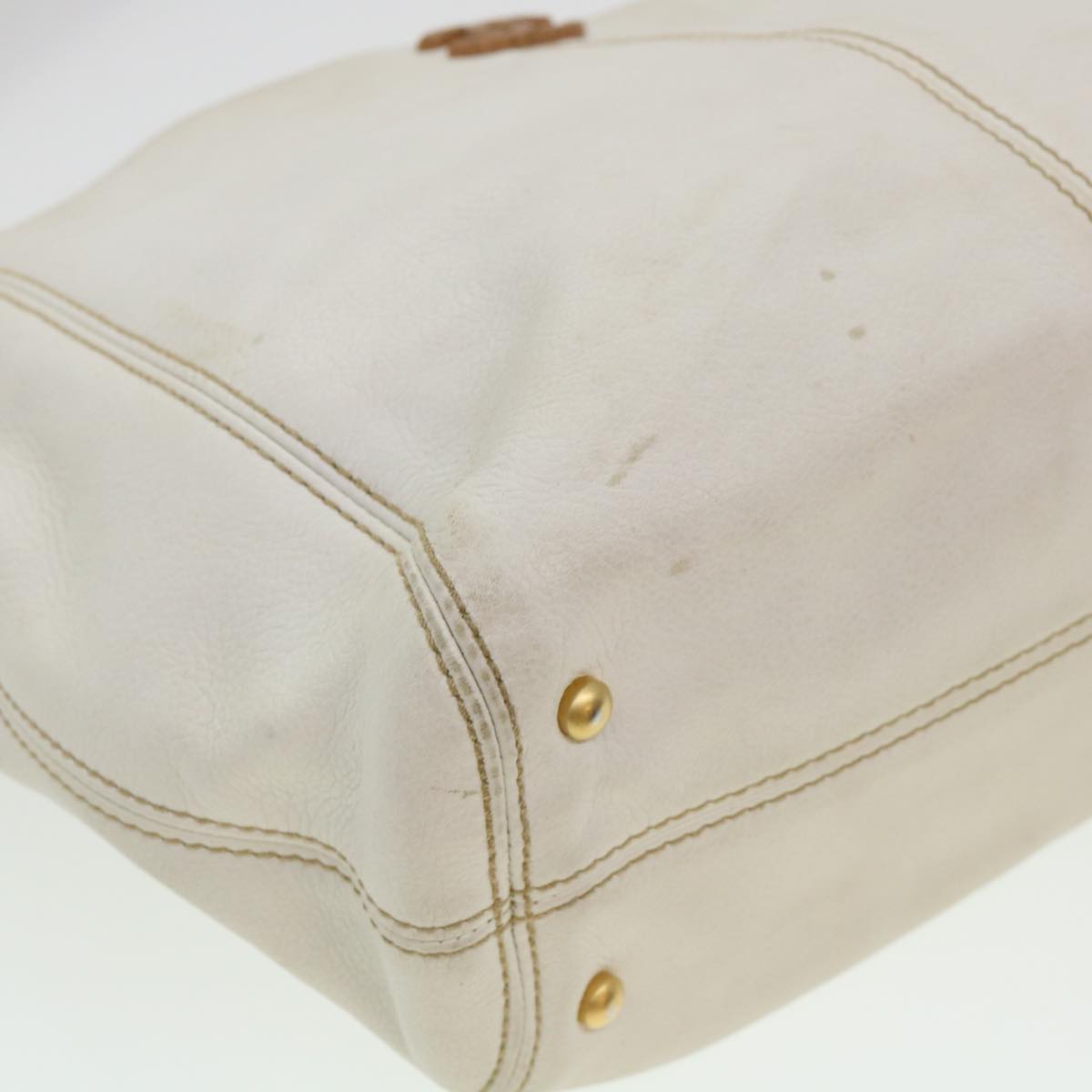 Chanel Wood Chain Tote Bag Caviar Skin White Brown CC Auth yk6580