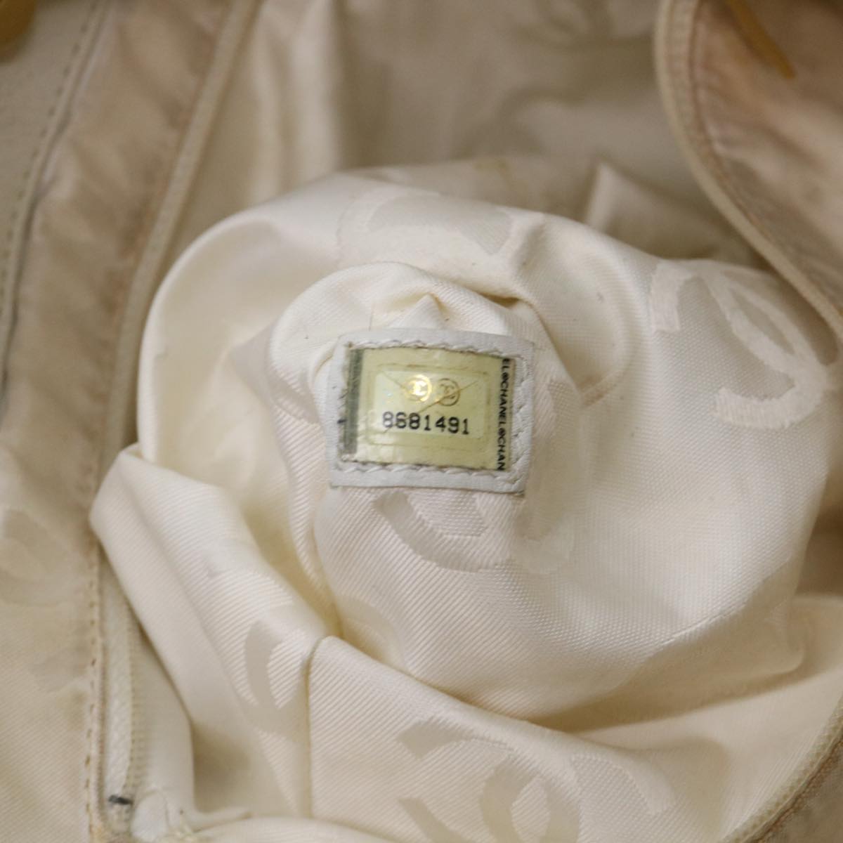 Chanel Wood Chain Tote Bag Caviar Skin White Brown CC yk6580