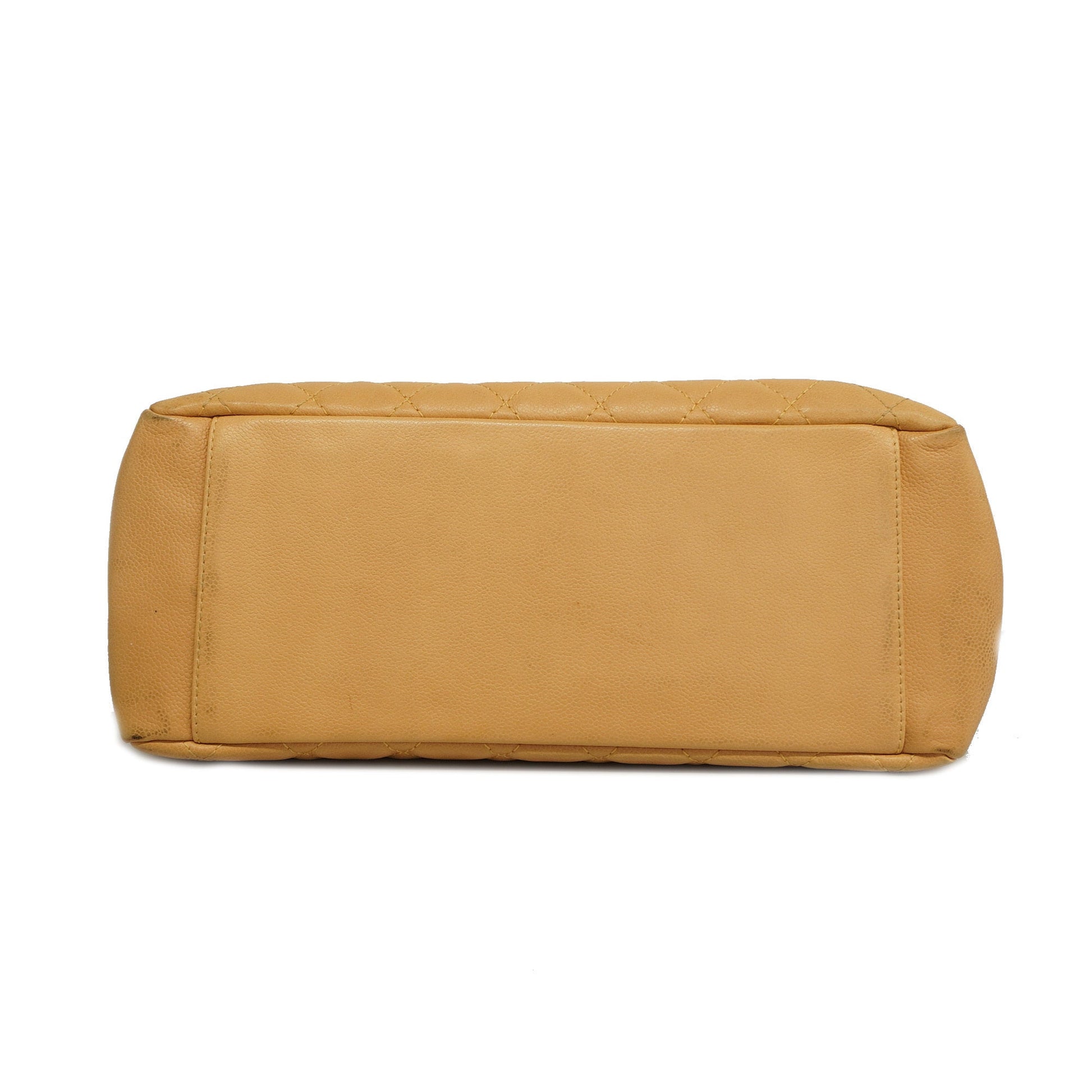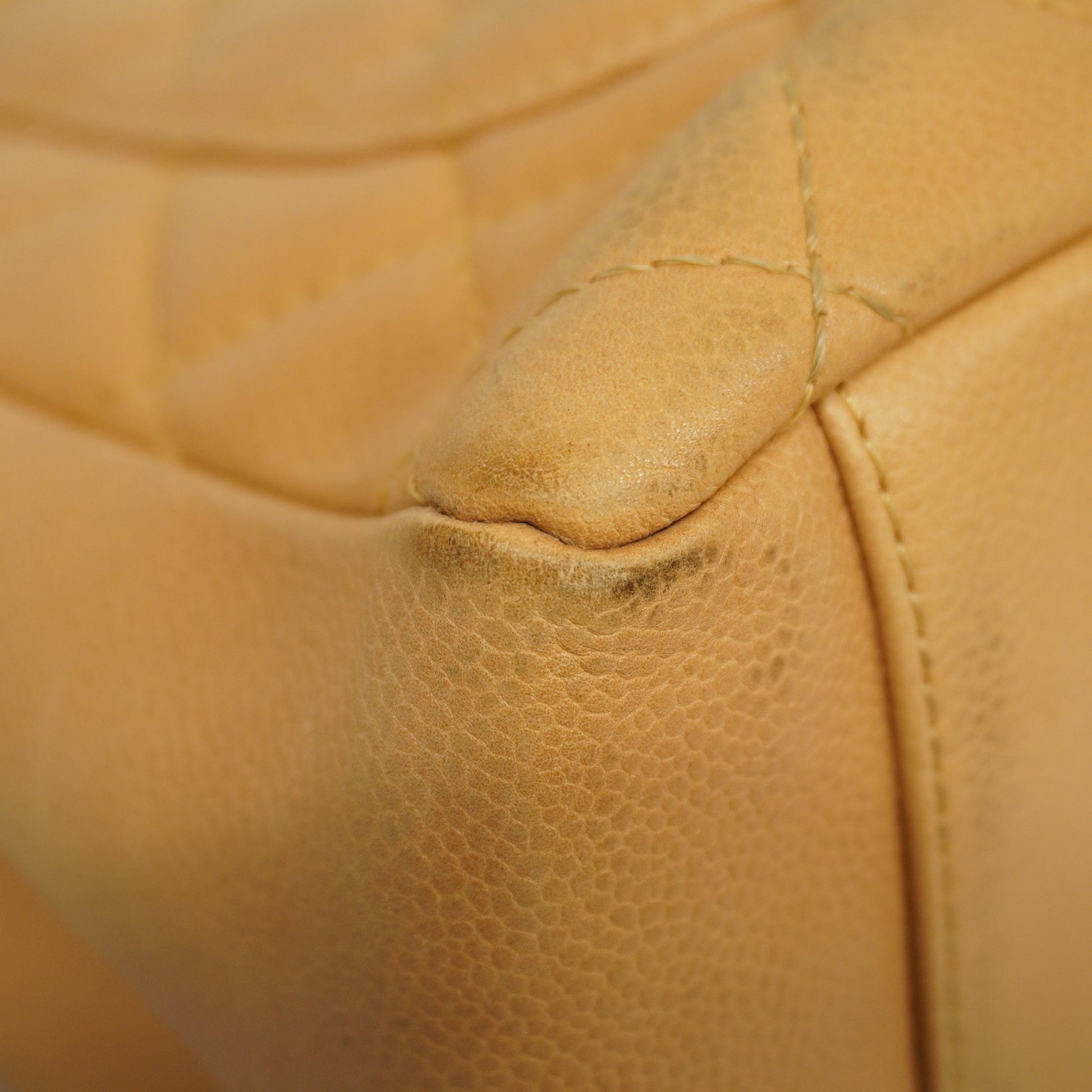 [3ca0361] Auth Chanel Tote Bag Matelasse Chain Shoulder Caviar Skin Beige Silver metal