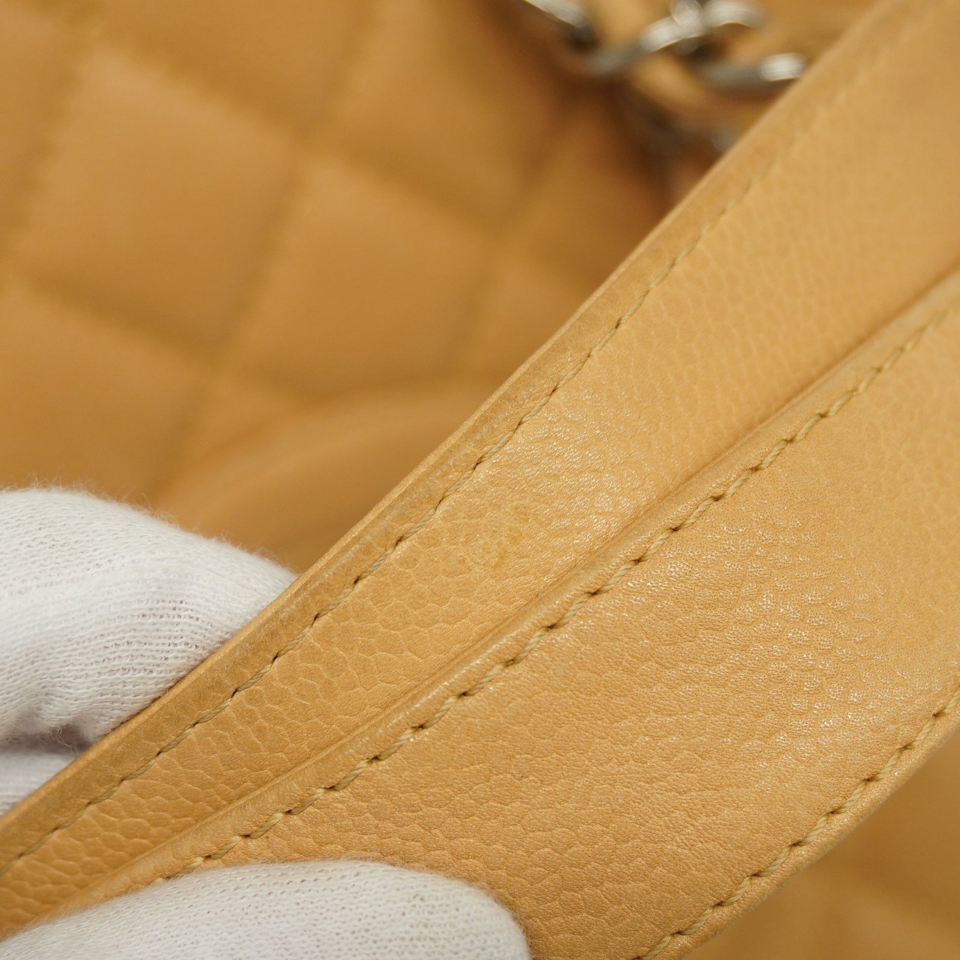 Chanel[3ca0361] Auth Tote Bag Matelasse Chain Shoulder Caviar Skin Beige Silver metal