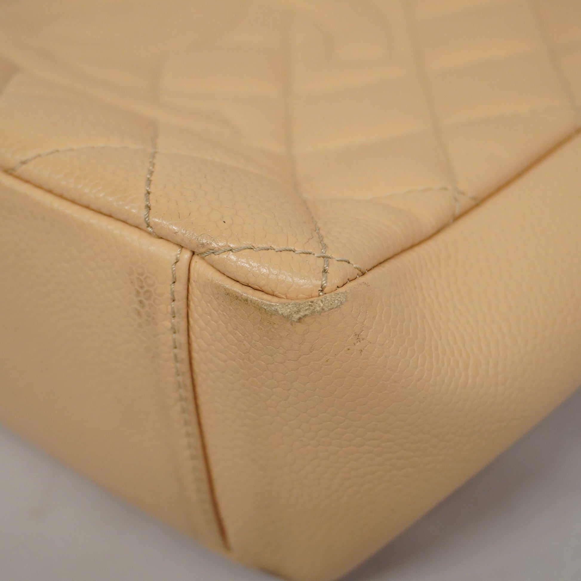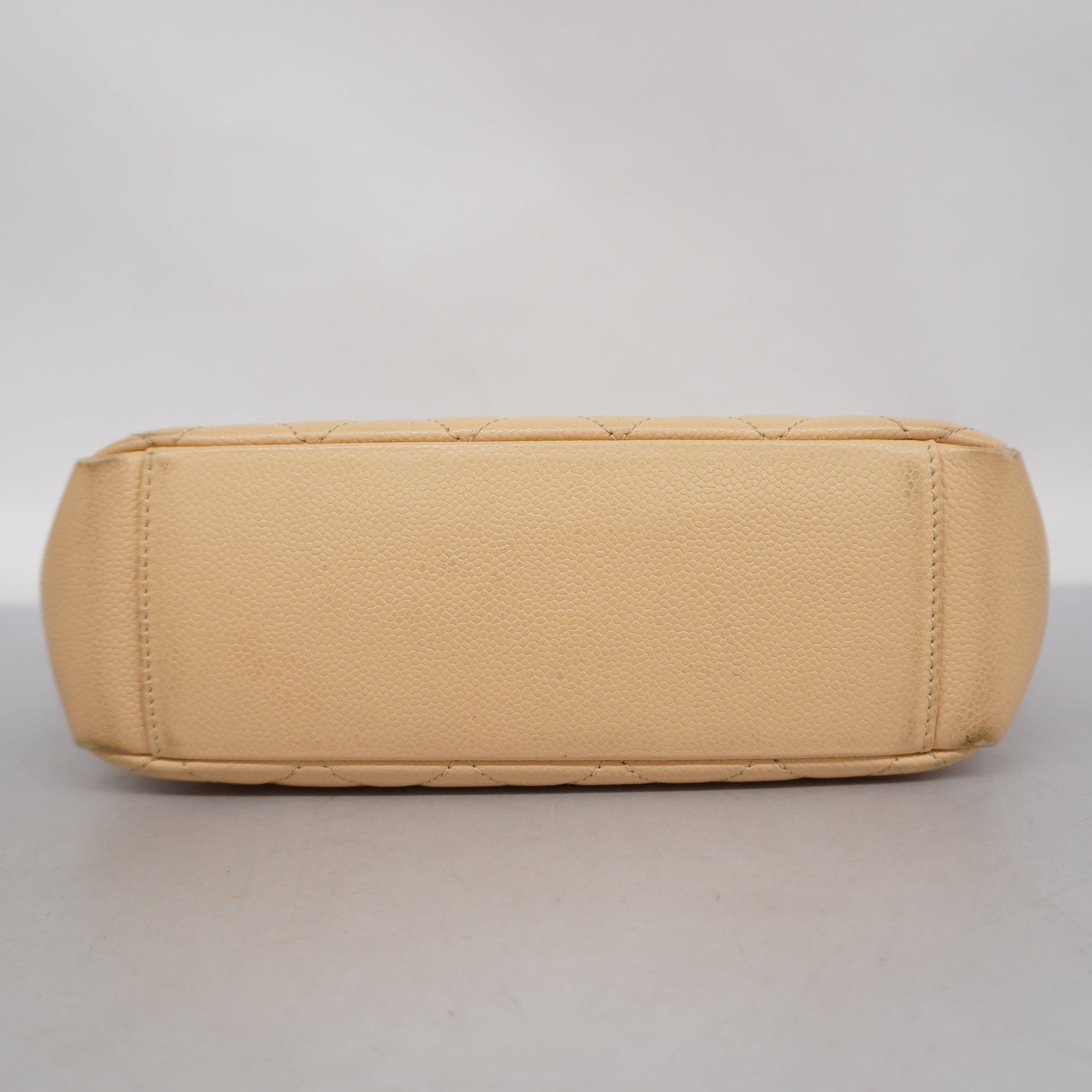 Auth Chanel Matelasse Chain Shoulder Women's Caviar Leather Tote Bag Beige
