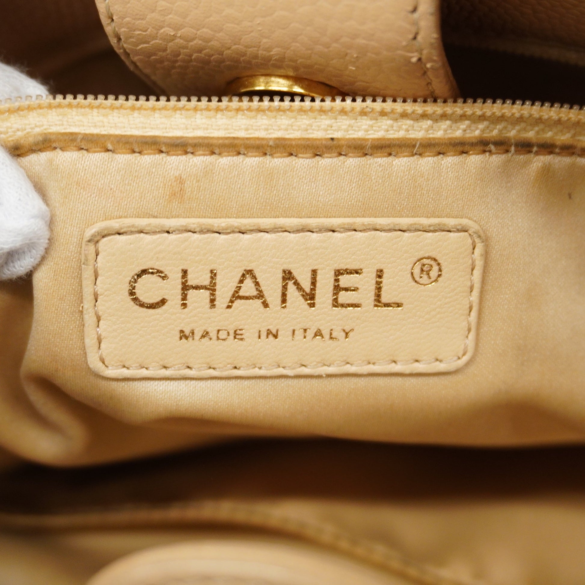 ChanelAuth Matelasse Chain Shoulder Women's Caviar Leather Tote Bag Beige