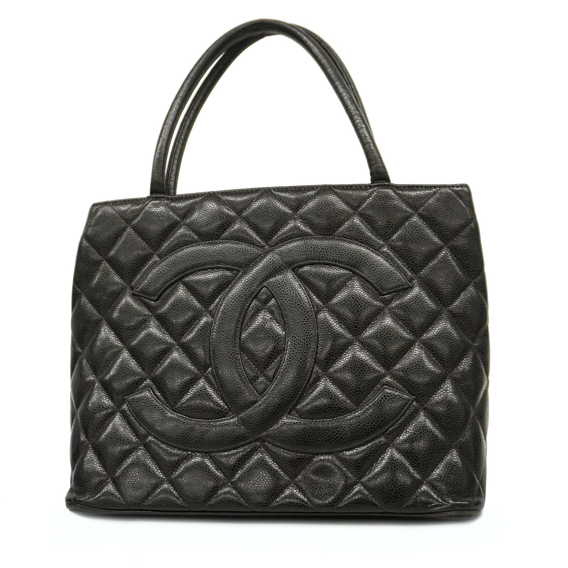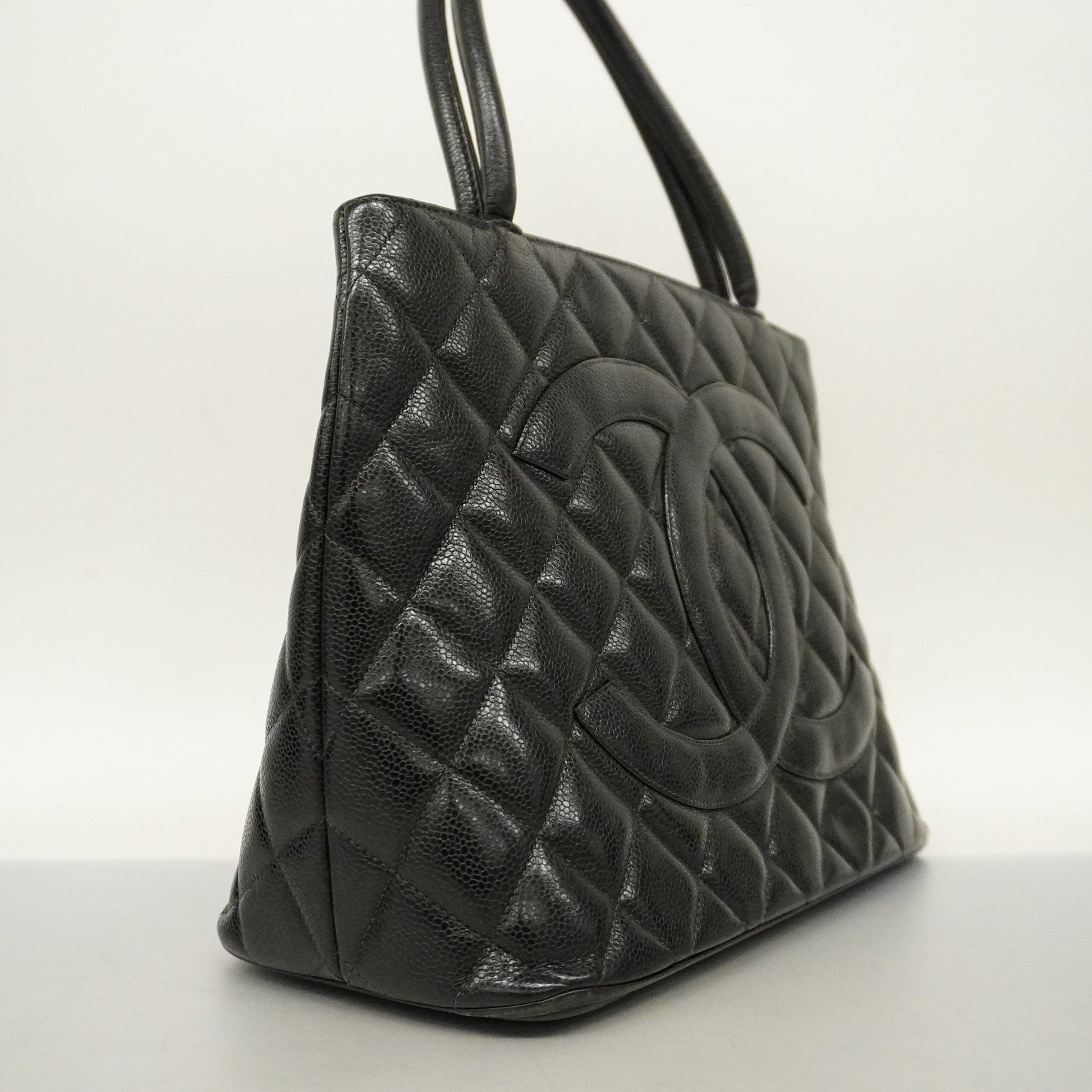 Auth Chanel Reprint Tote Women's Caviar Leather Tote Bag Black