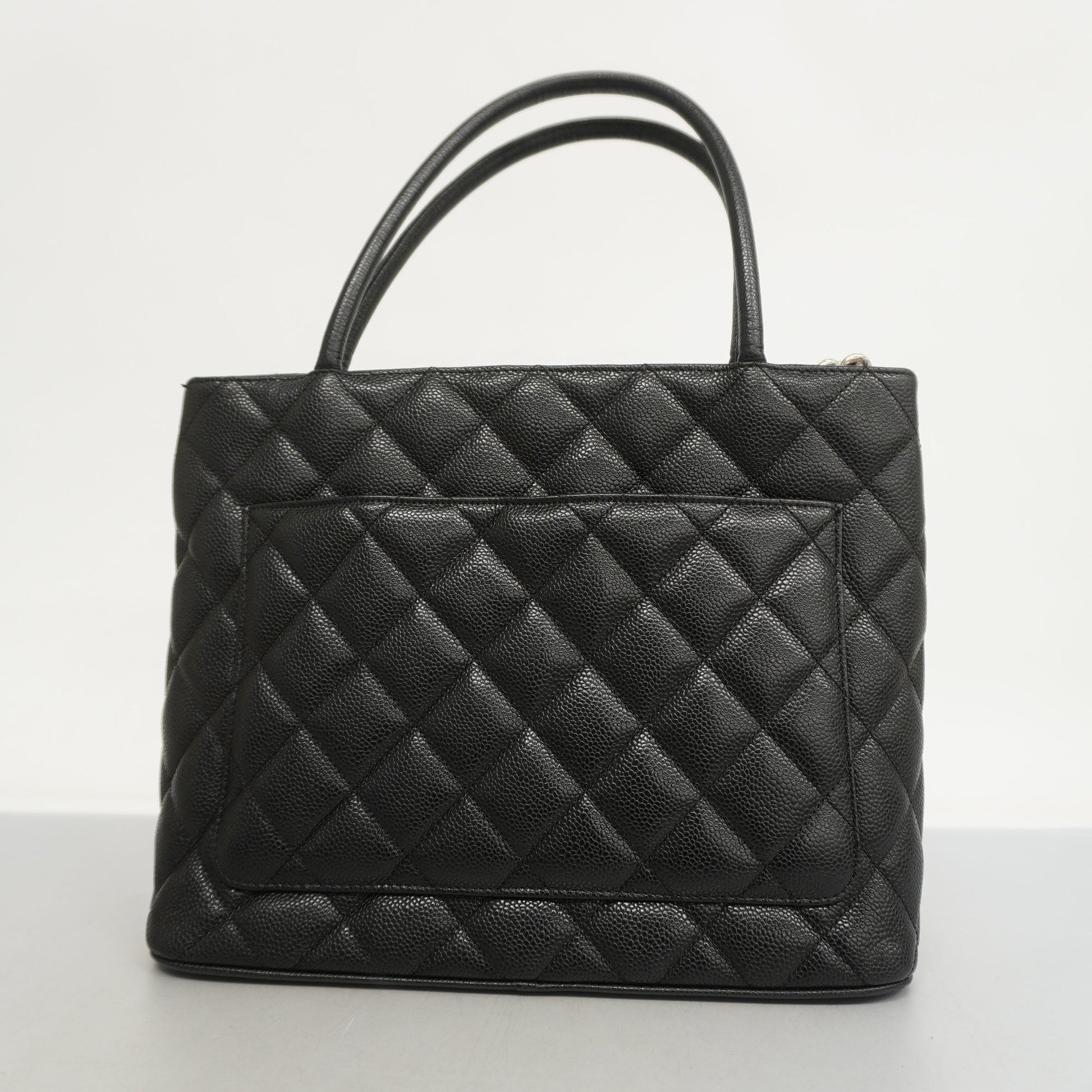 Auth Chanel Reprint Tote Women's Caviar Leather Tote Bag Black