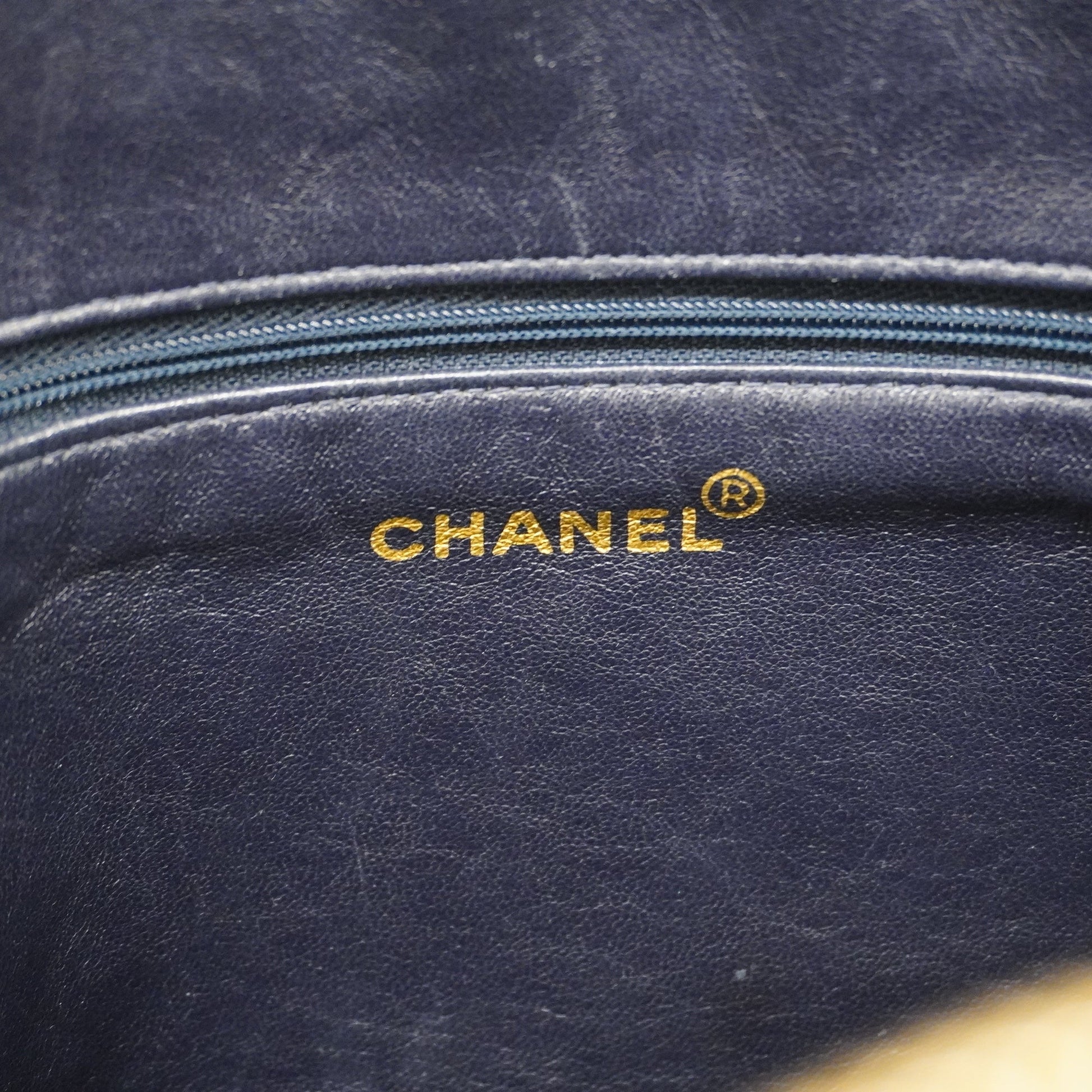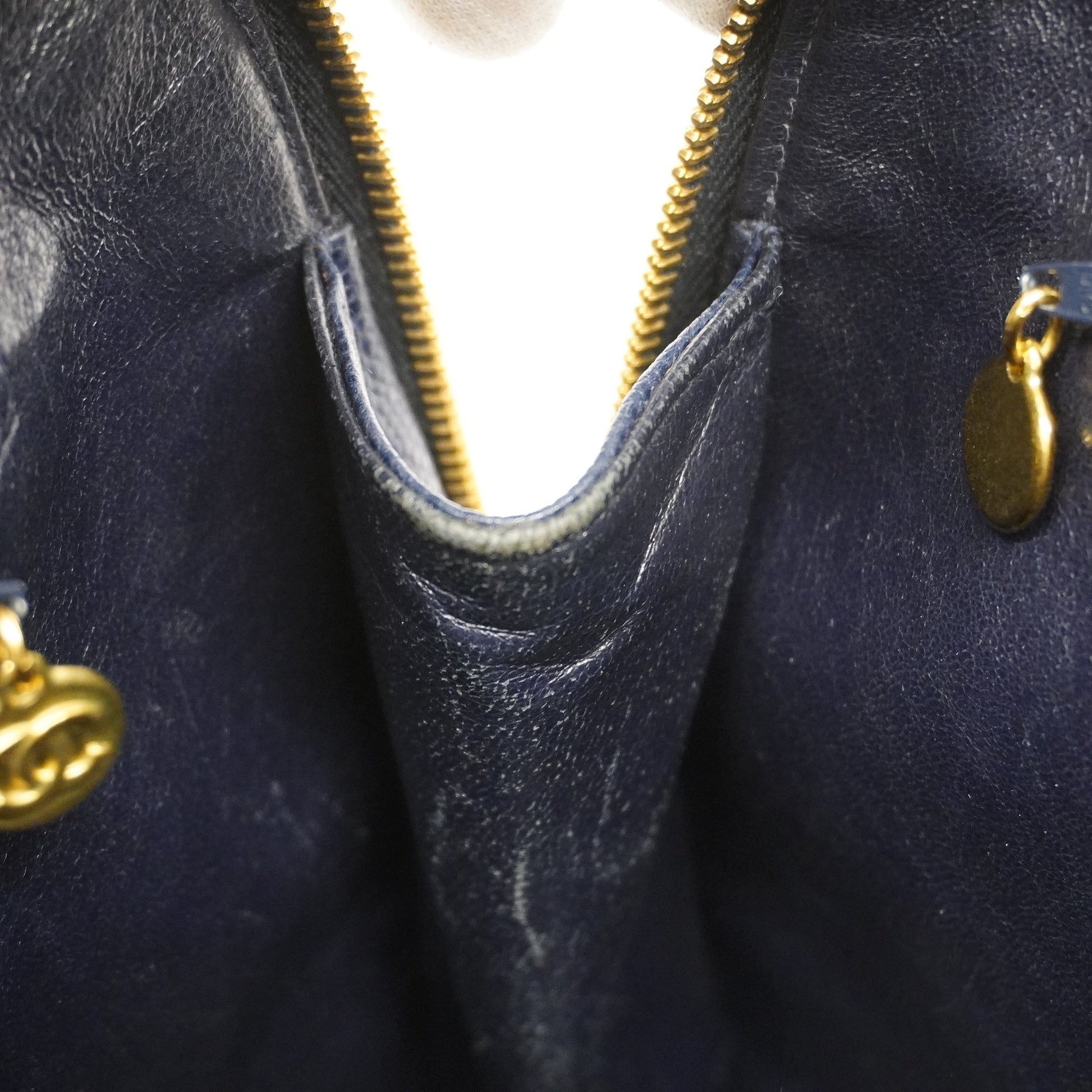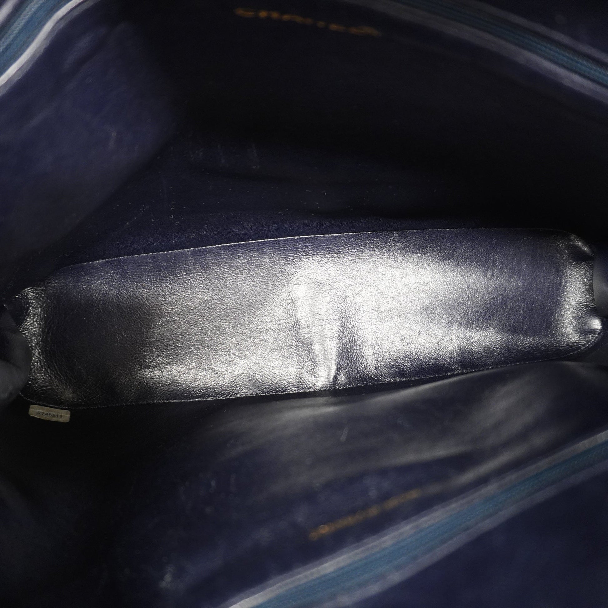 Auth Chanel Tote Bag Cambon Line Women's Leather Tote Bag Navy