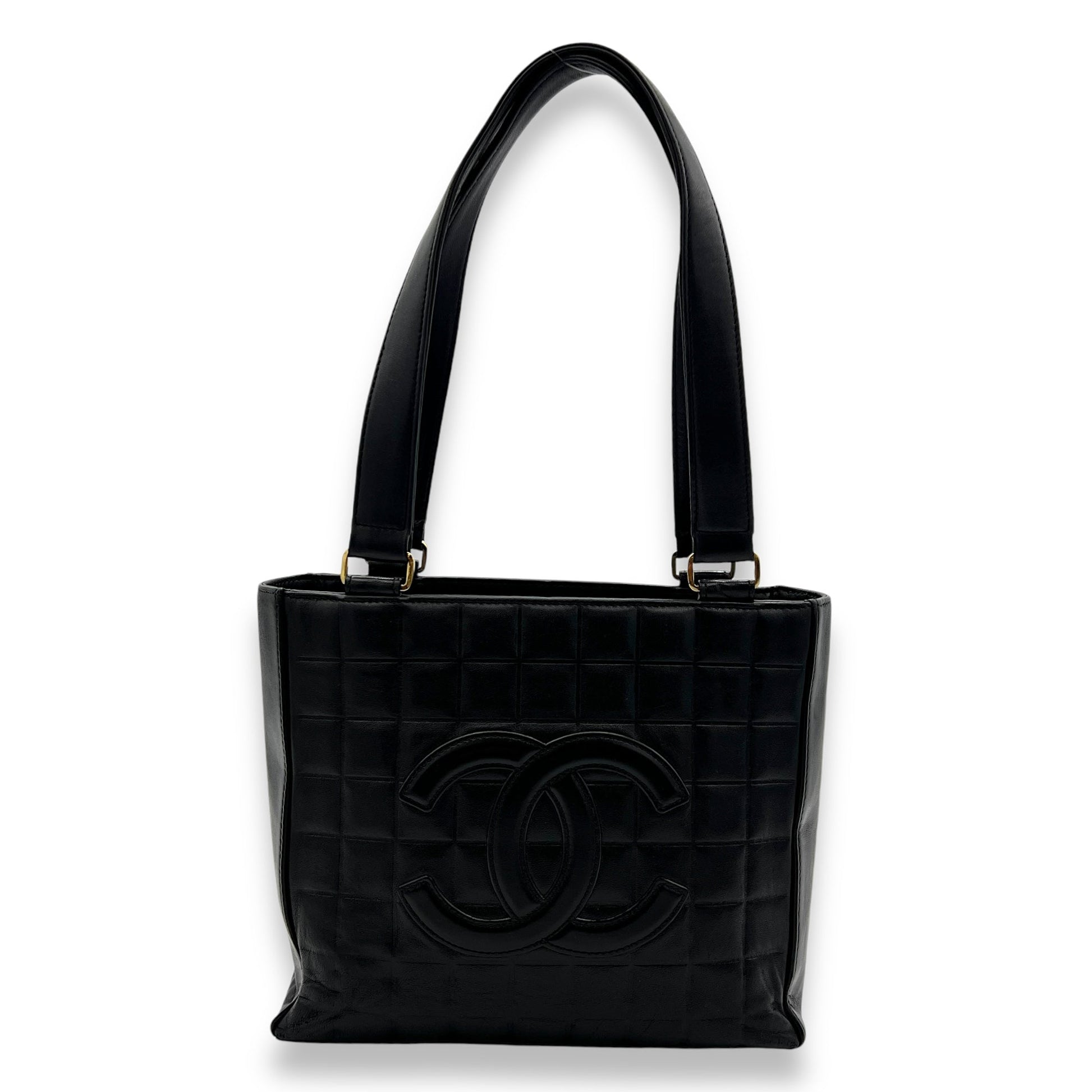 Chanel chocolate Black Tote Bag in Calfskin, Gold hardware Bags Tote Bag Black Good Condition MEN UNISEX