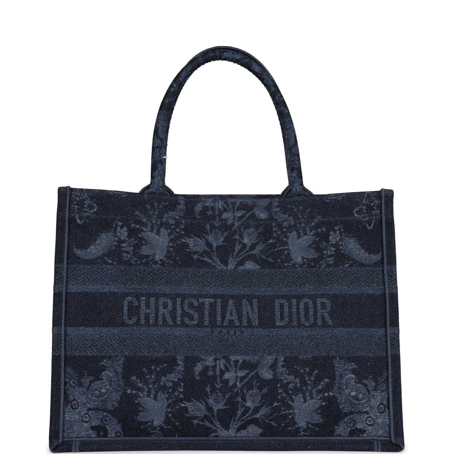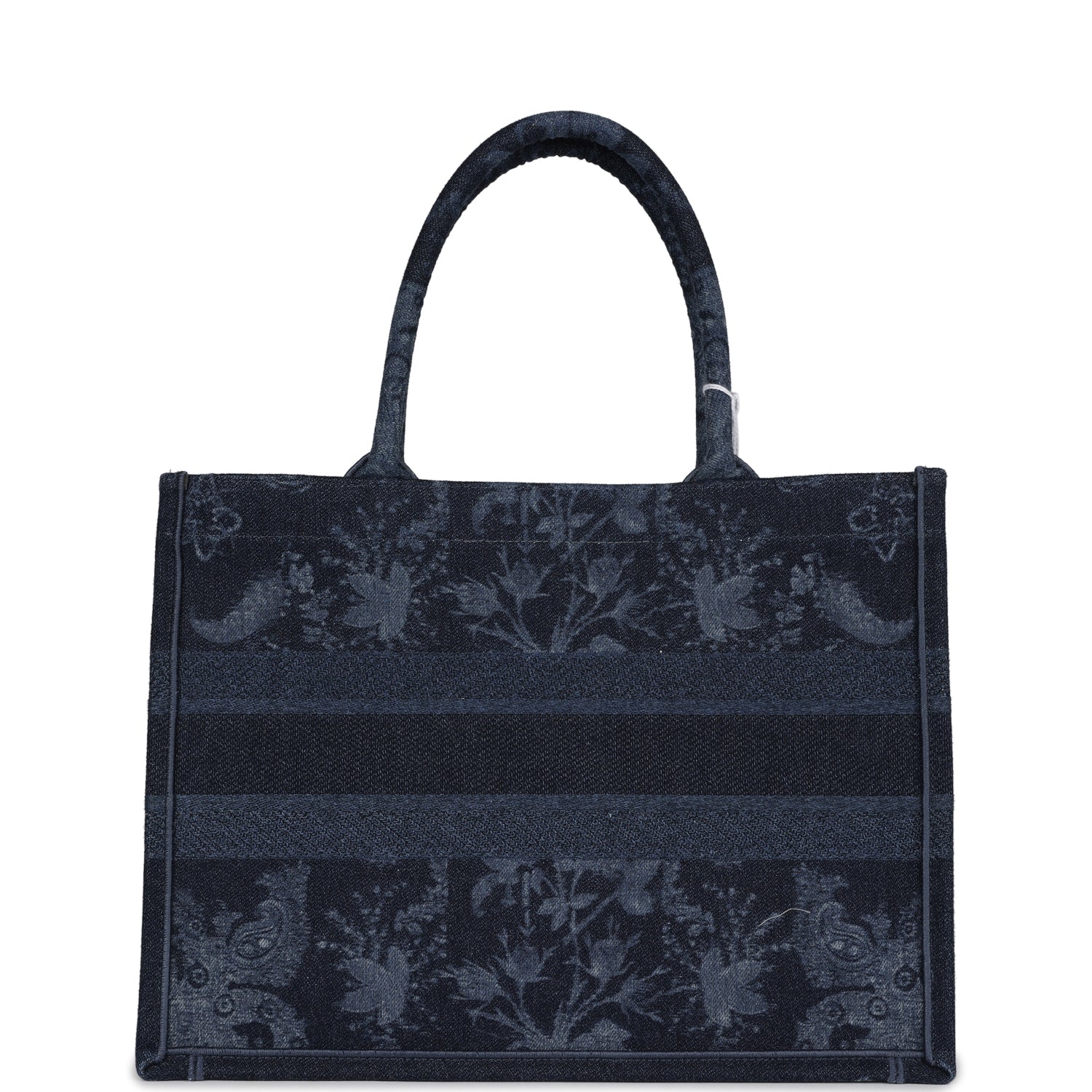 Christian Dior Blue Flower Embroidered Denim Small Book Tote