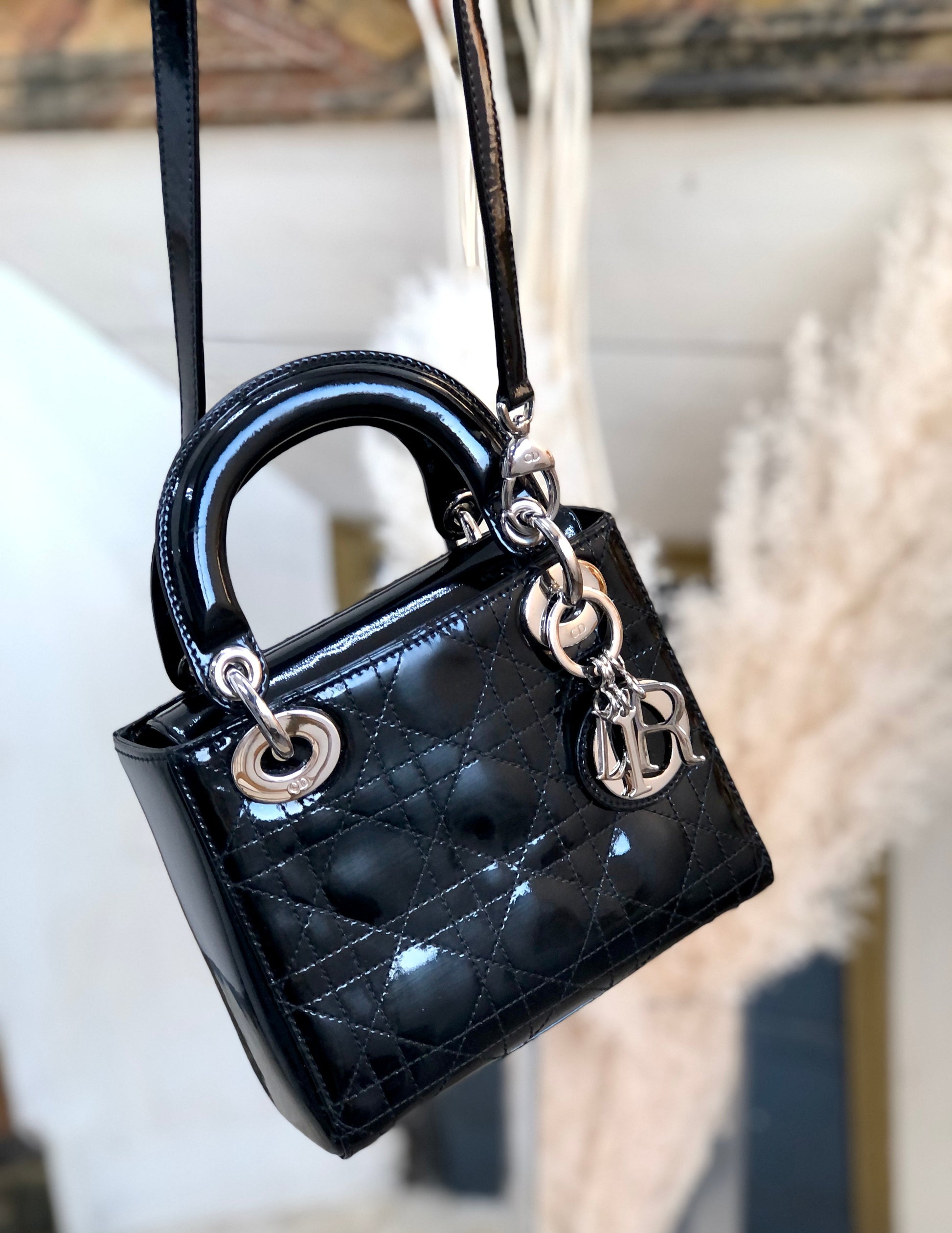 Christian Dior Cannage Lady dior Patent leather Handbag Shoulder bag Black e3i7xj