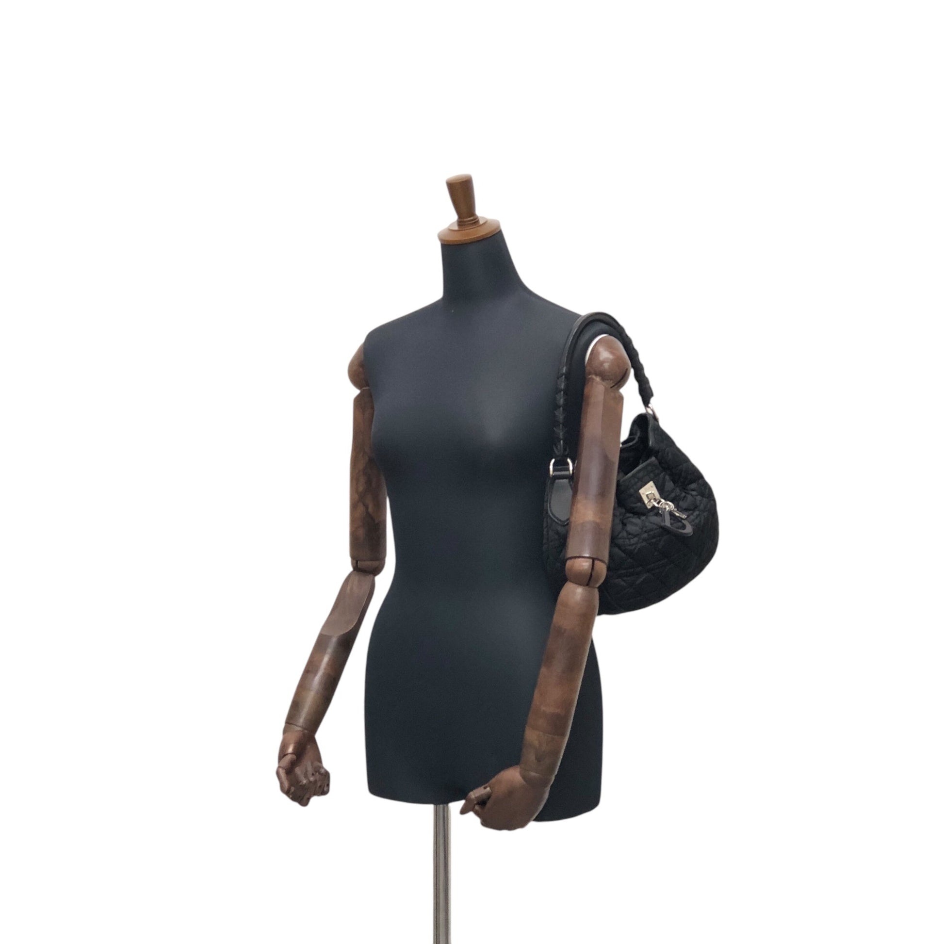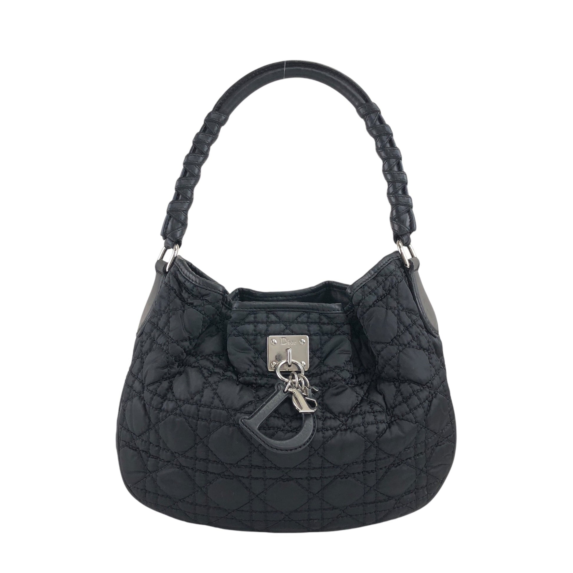 Christian Dior Cannage Logo Charm Shoulder bag Hobobag Black Vintage j5gaea
