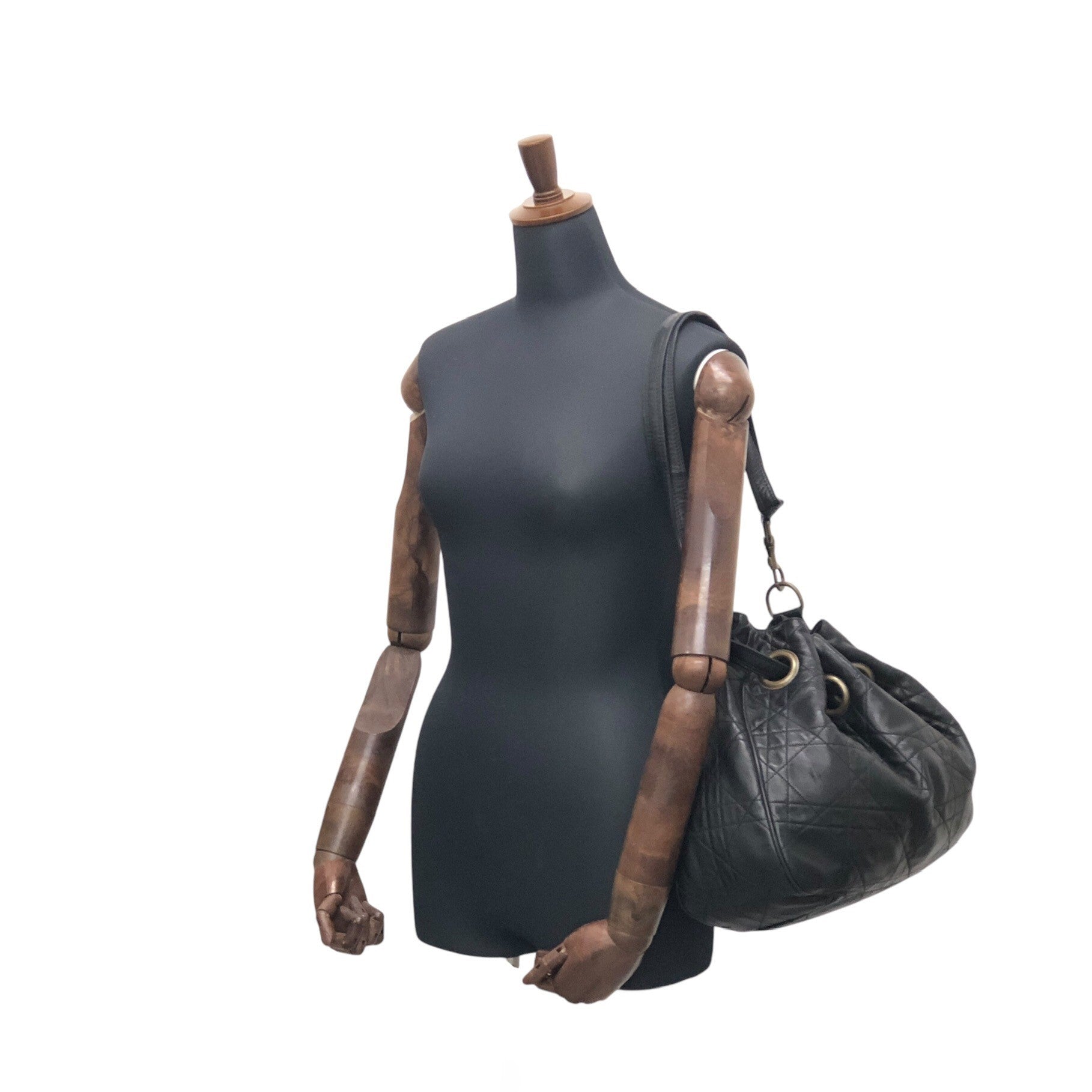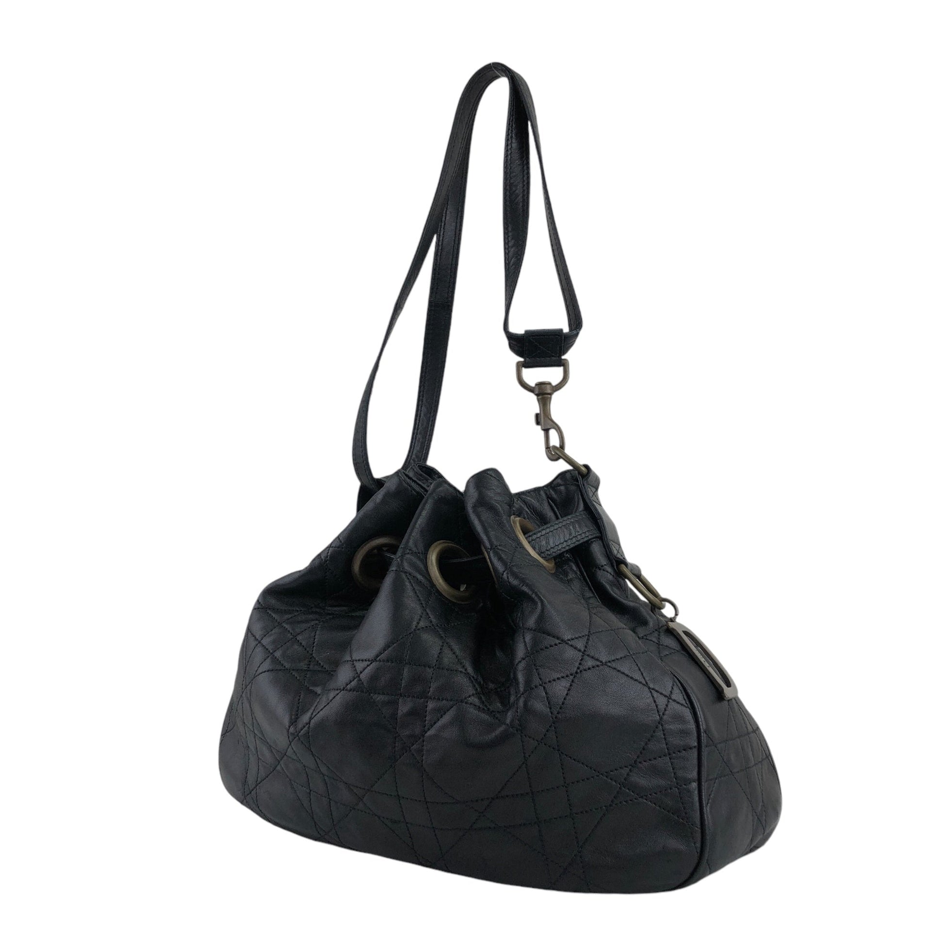 Christian Dior Cannage Logo Motif Drawstring Shoulder bag Black Vintage ryhx6x