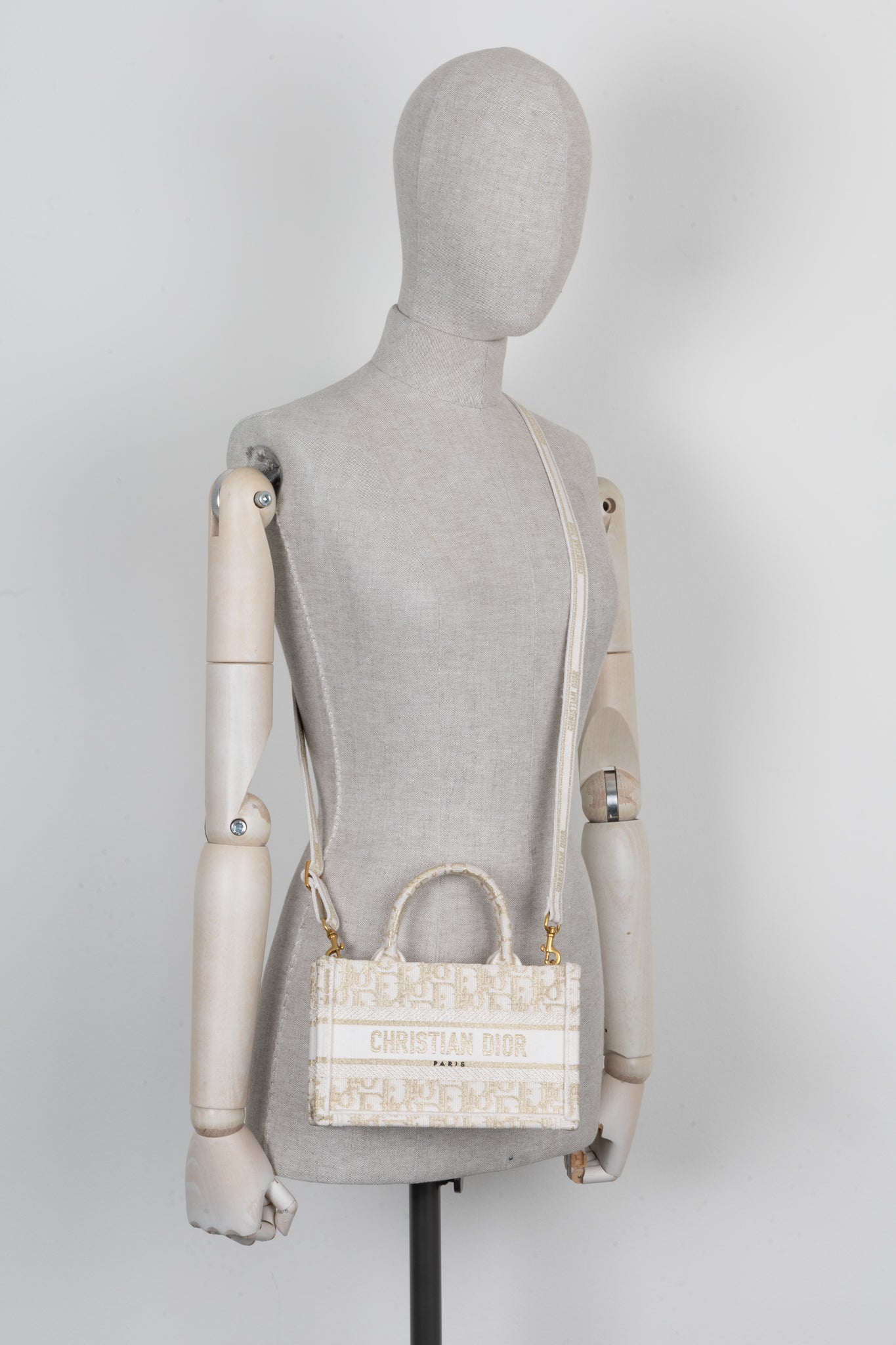CHRISTIAN DIOR Mini Tote Bag Oblique Ivory Gold