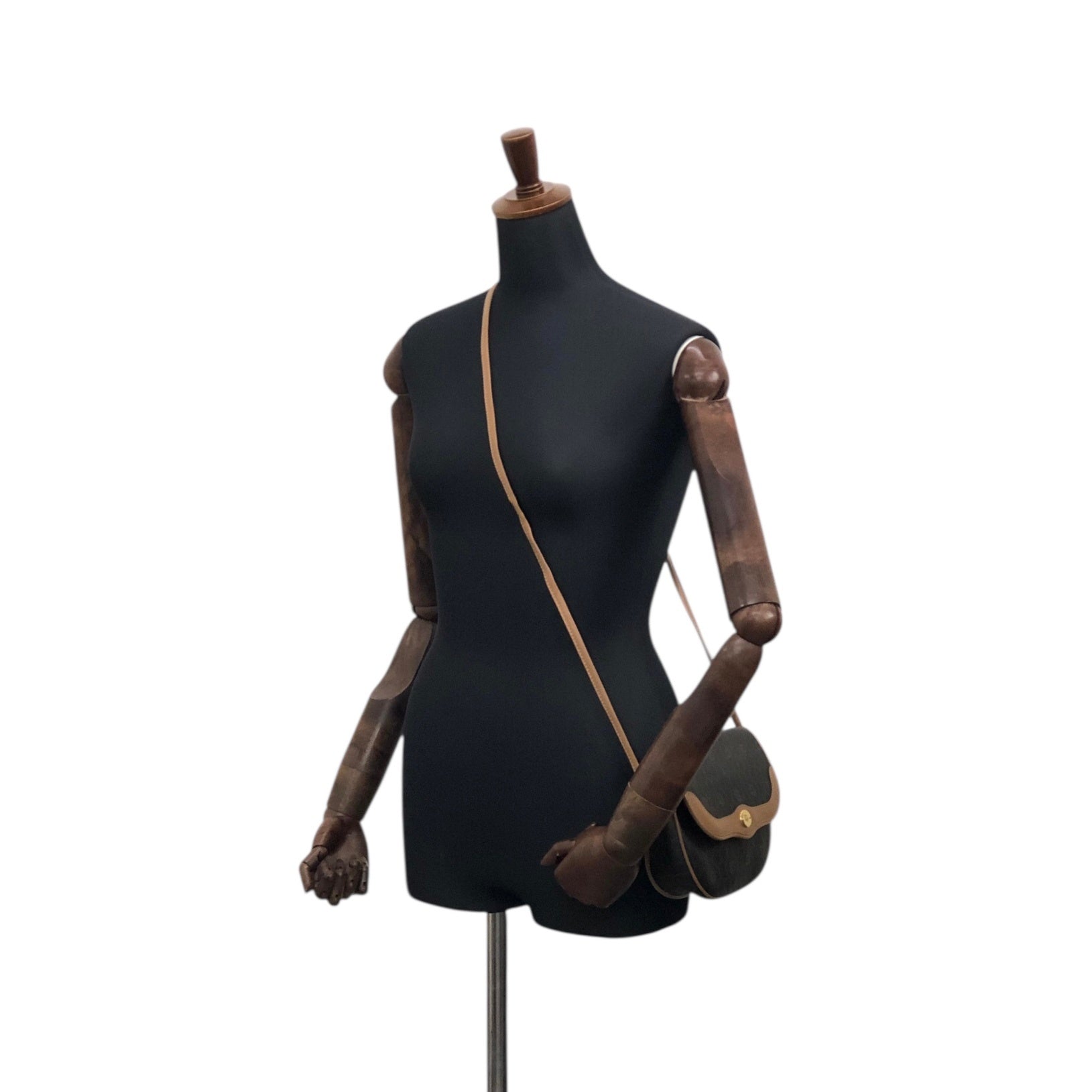 Honeycomb Pattern Logo Shoulder bag Black Vintage Height 17cm Width 24cm Depth 6cm Shoulder strap length 123cm