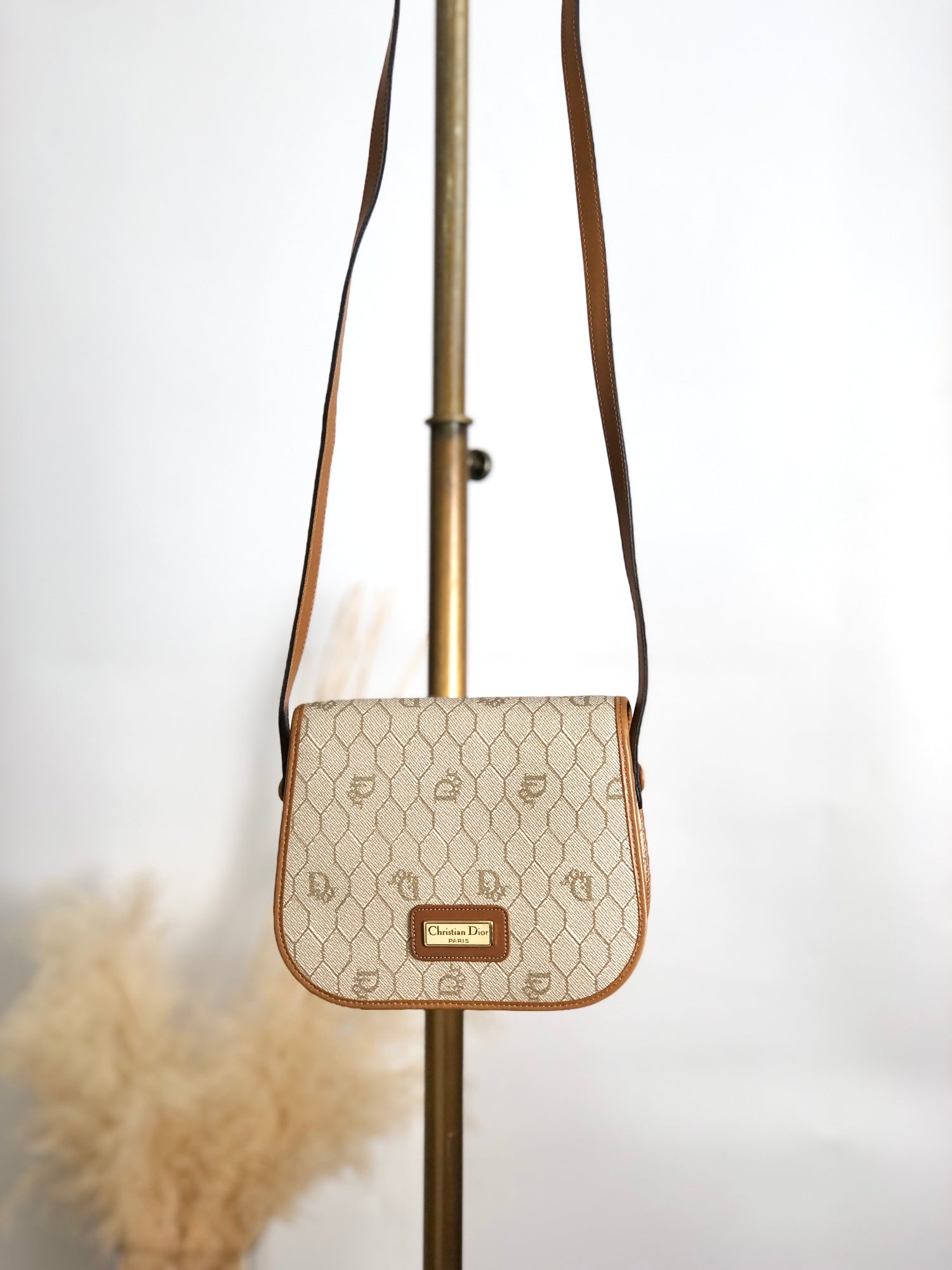 Christian Dior Honeycomb Pattern Small Shoulder bag Beige Vintage tumbw8