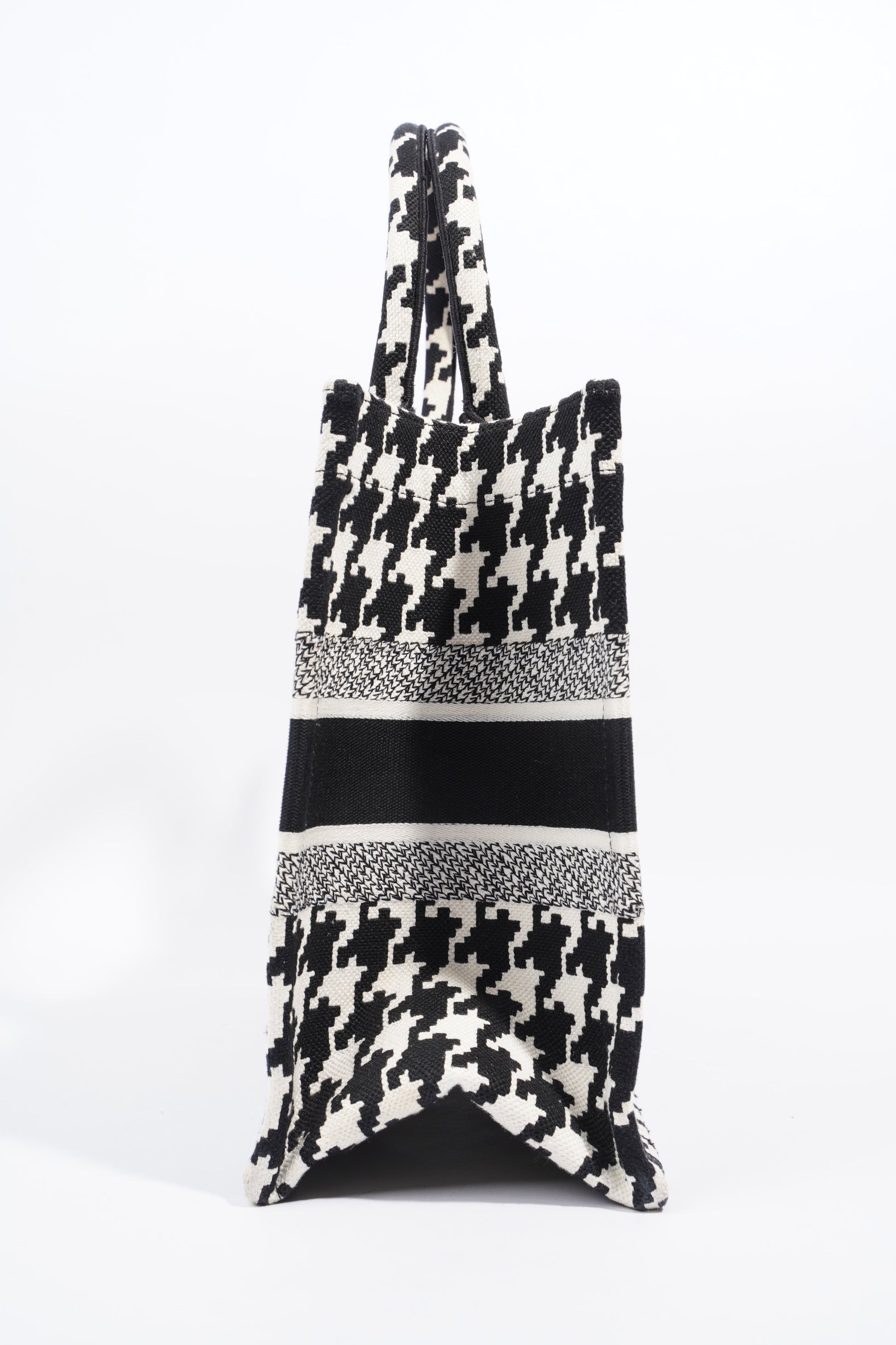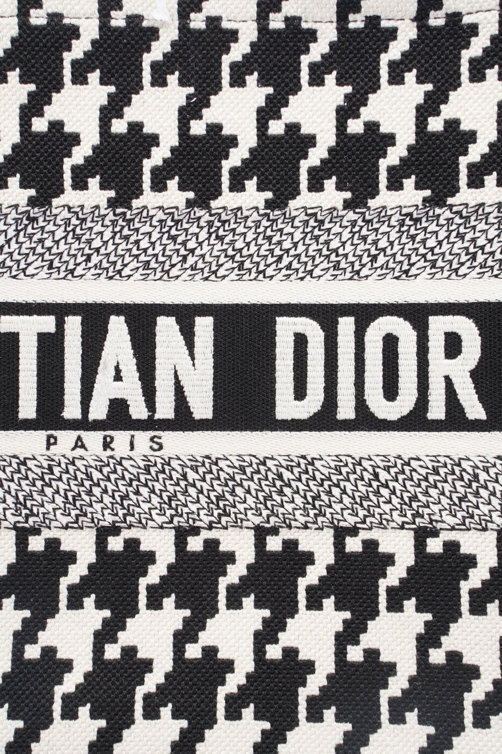 Christian Dior Houndstooth Book Tote Black / White Canvas Medium