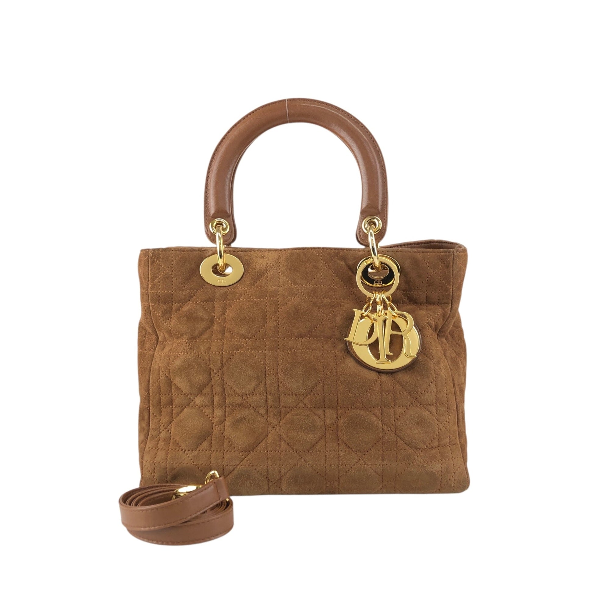 Lady Dior Cannage Two-way Handbag Shoulder bag Brown Vintage Height 19cm Width 24cm Depth 12cm Handle drop 10cm Shoulder strap length 89cm