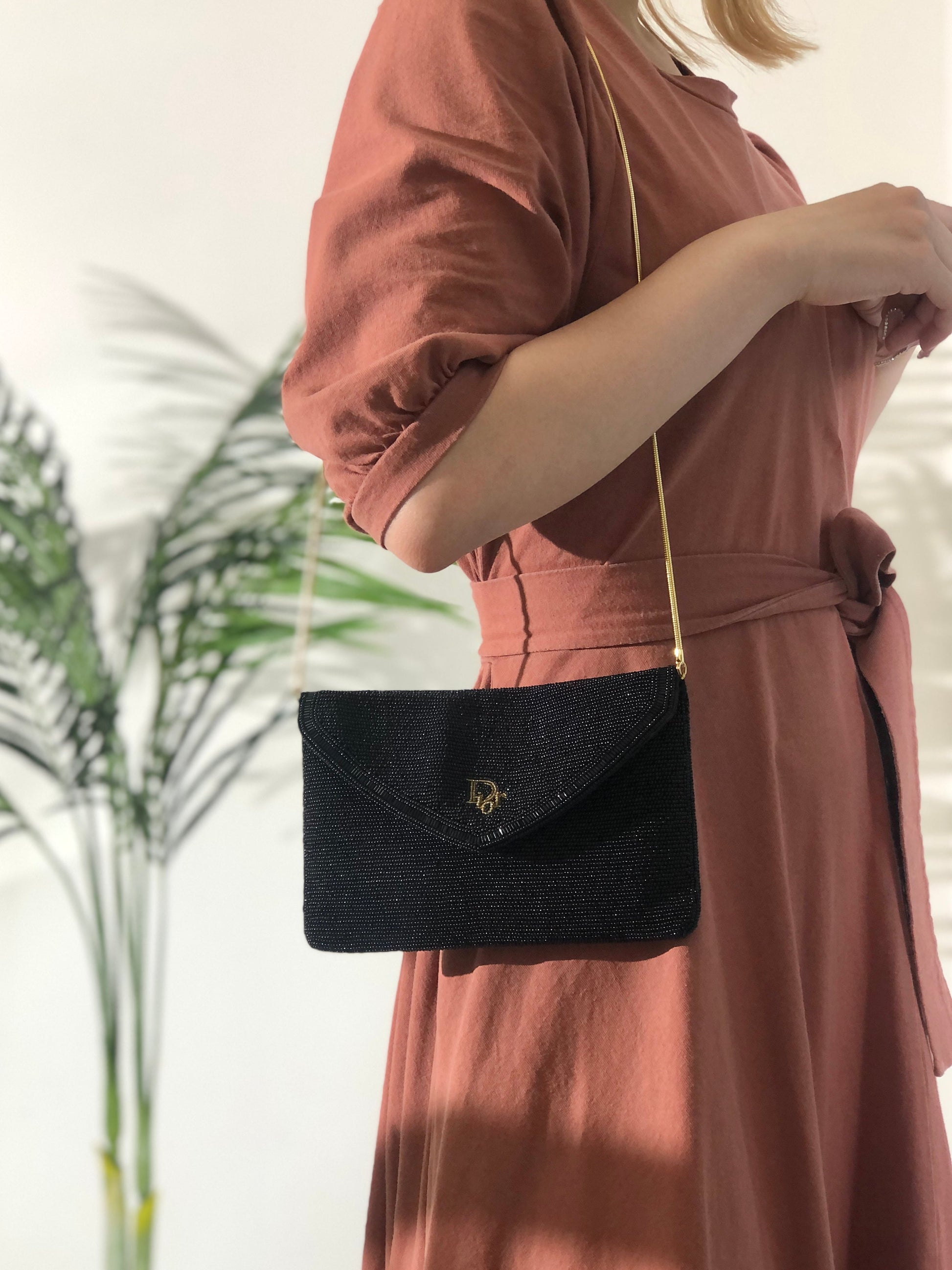 Christian Dior Logo Beads Chain Shoulder bag Black Vintage kxcim5