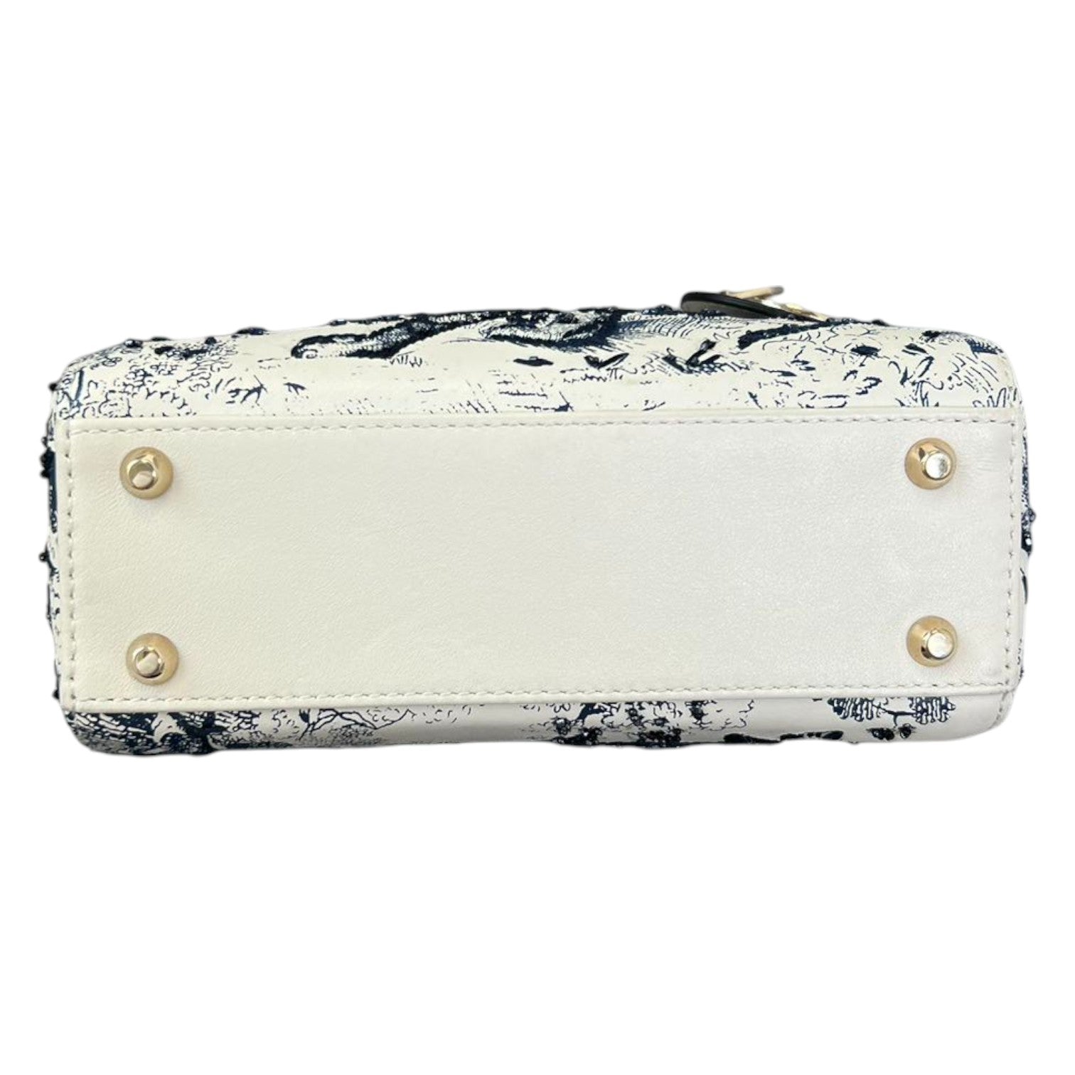 This is an Christian Dior Toile De Jouy Limited Edition Lady Dior Mini Calfskin Embroidered in Blue. Crafted from white leather with a delightfully embroidered and beaded blue art scene with an animal motif. The bag features shoulder strap, top handles, polished gold links and a gold Dior charm. The top flap opens to a microfiber interior with a zipper pocket.