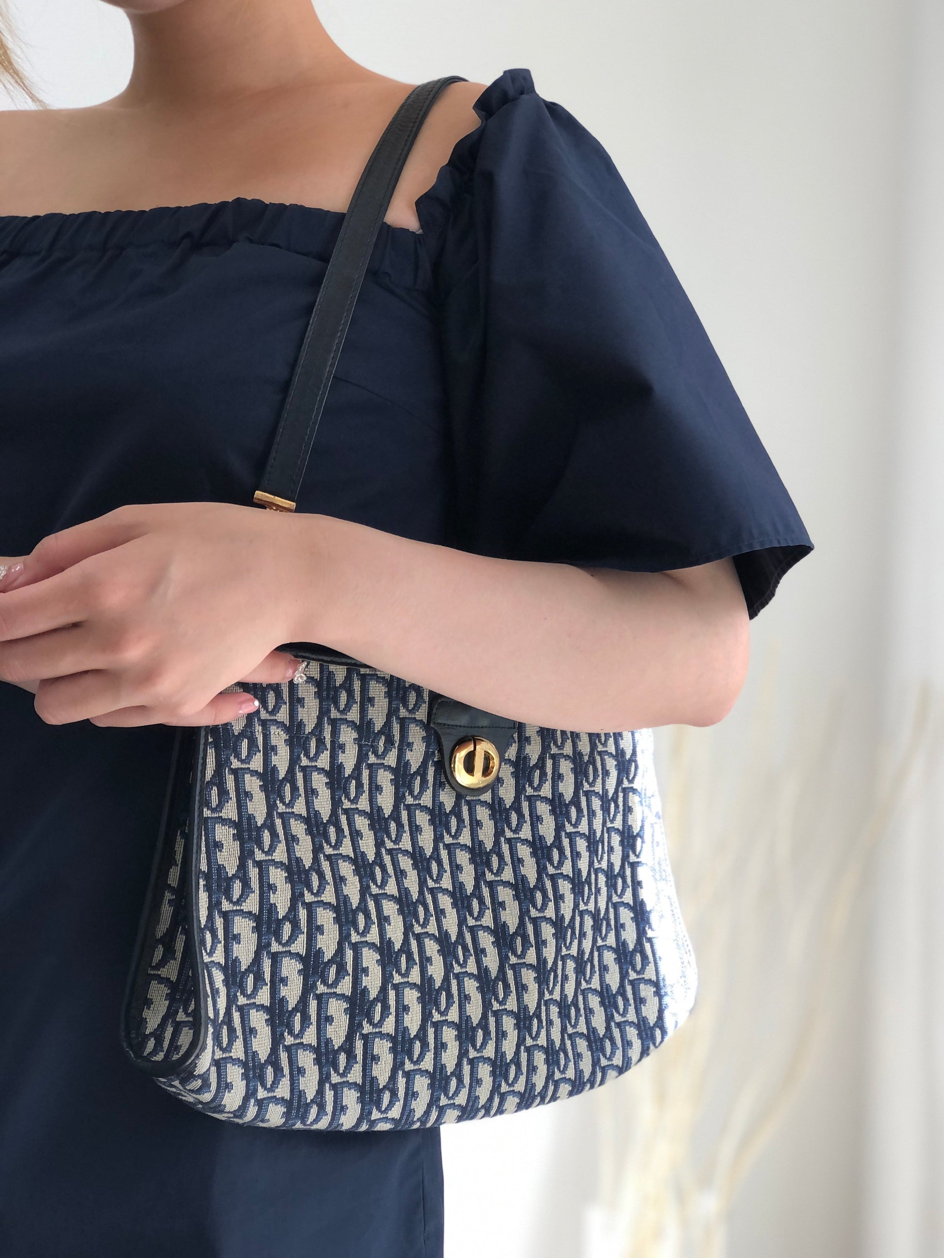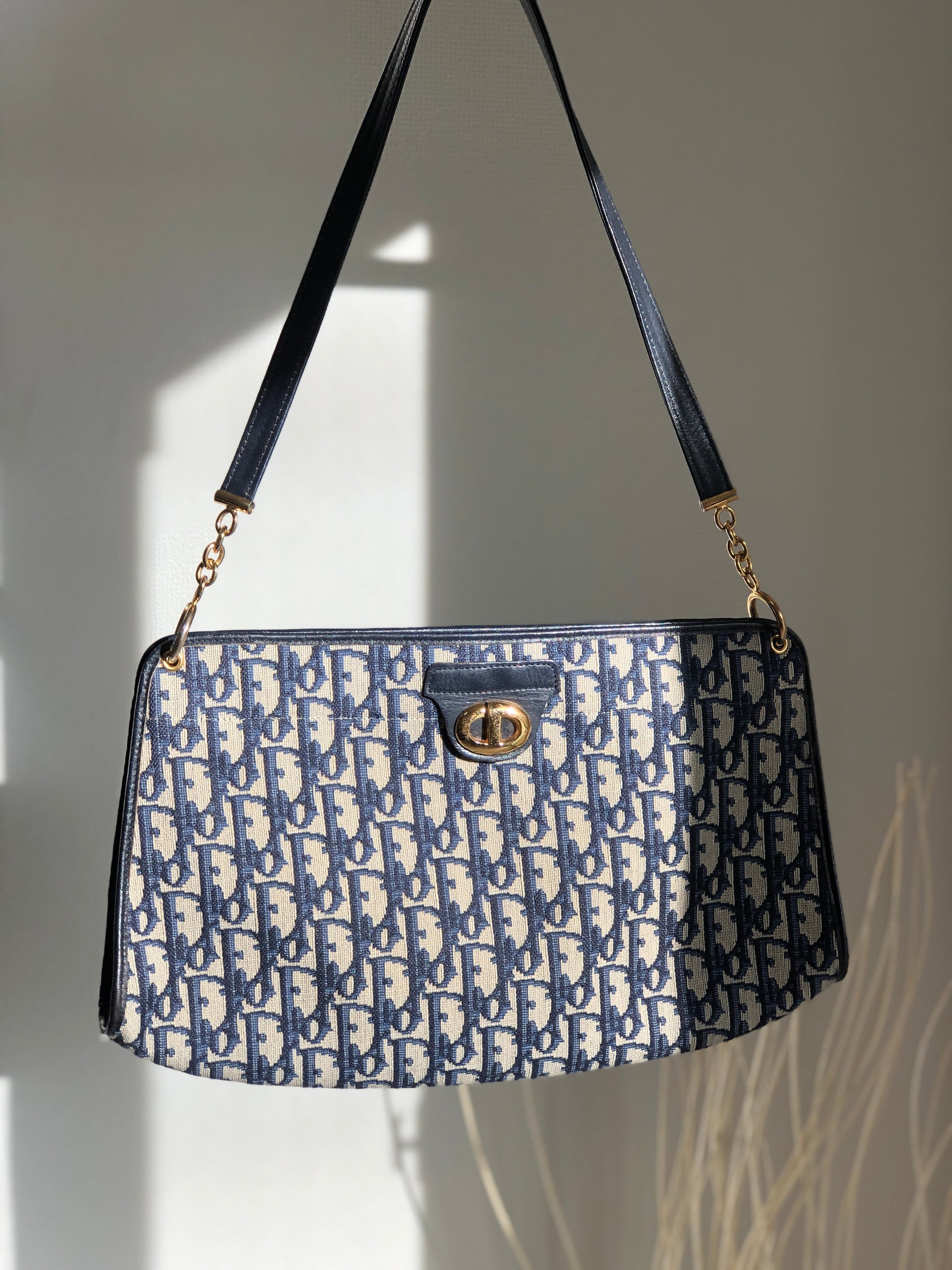 Christian Dior Trotter CD Logo Jacquard Leather Shoulder bag Navy Vintage 5f4tcg