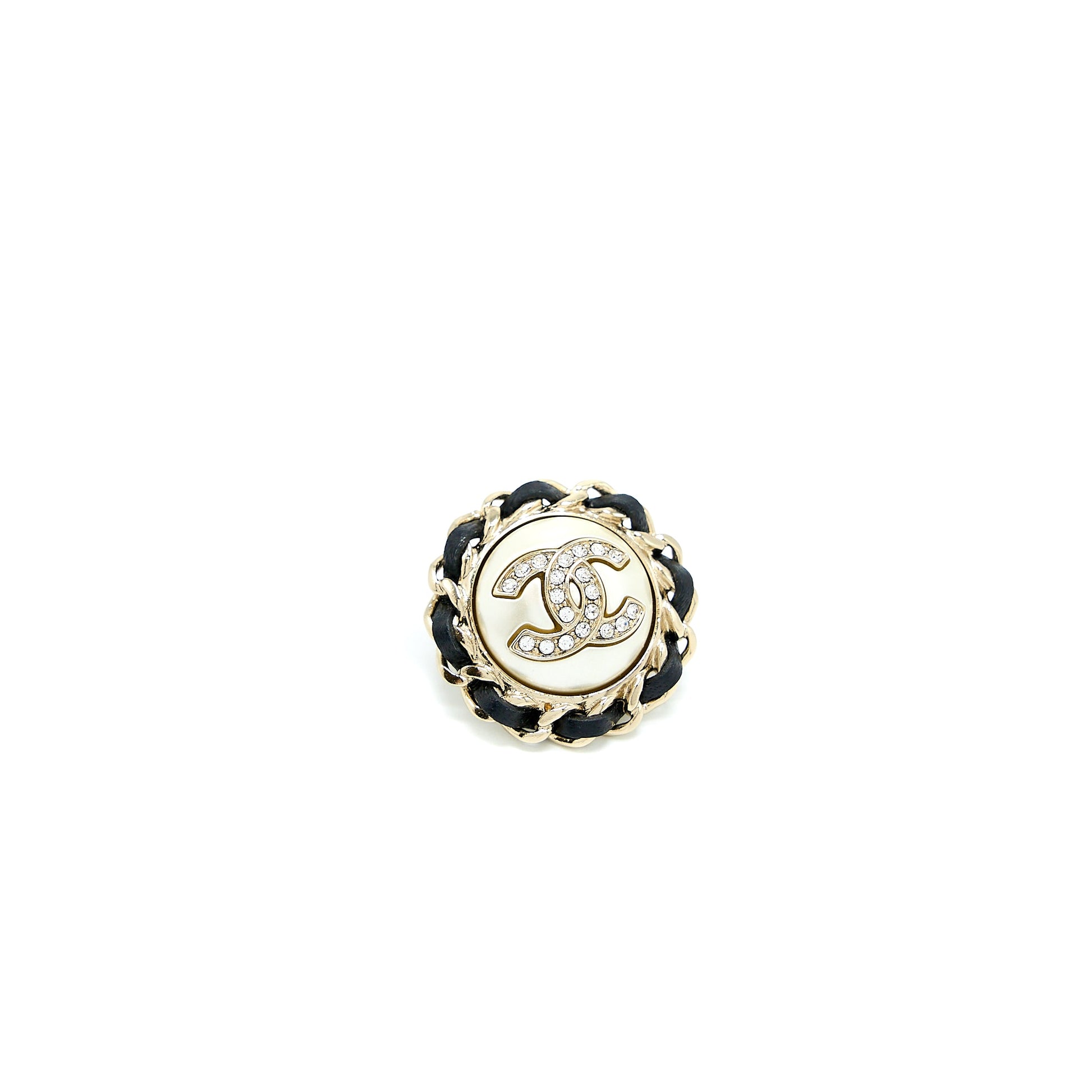 Chanel Giant Round CC Logo Earring Leather Chain/Crystal Light Gold Tone
