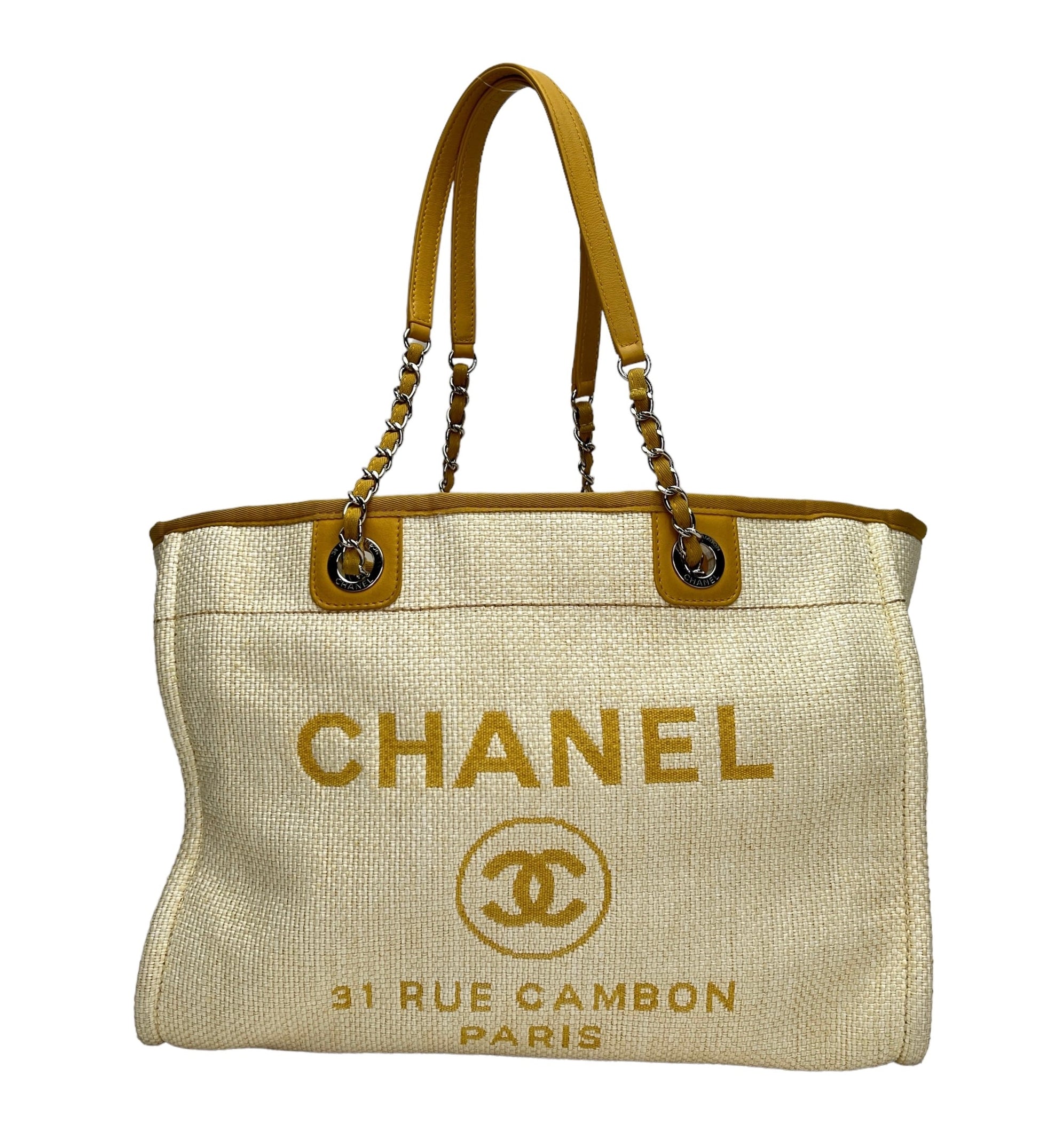 Deauville Small Yellow Tote Bag in Raffia, Silver hardware