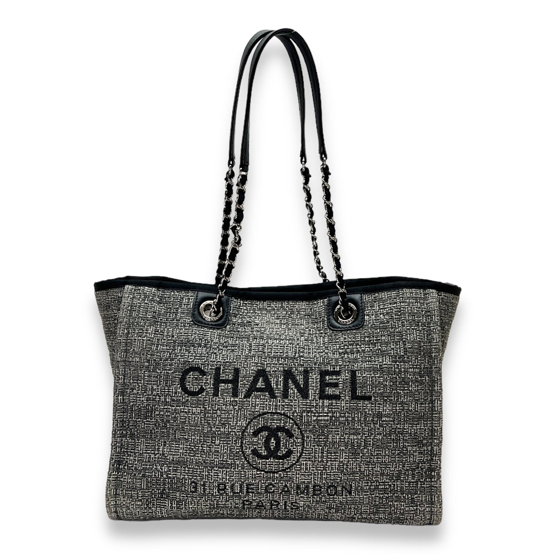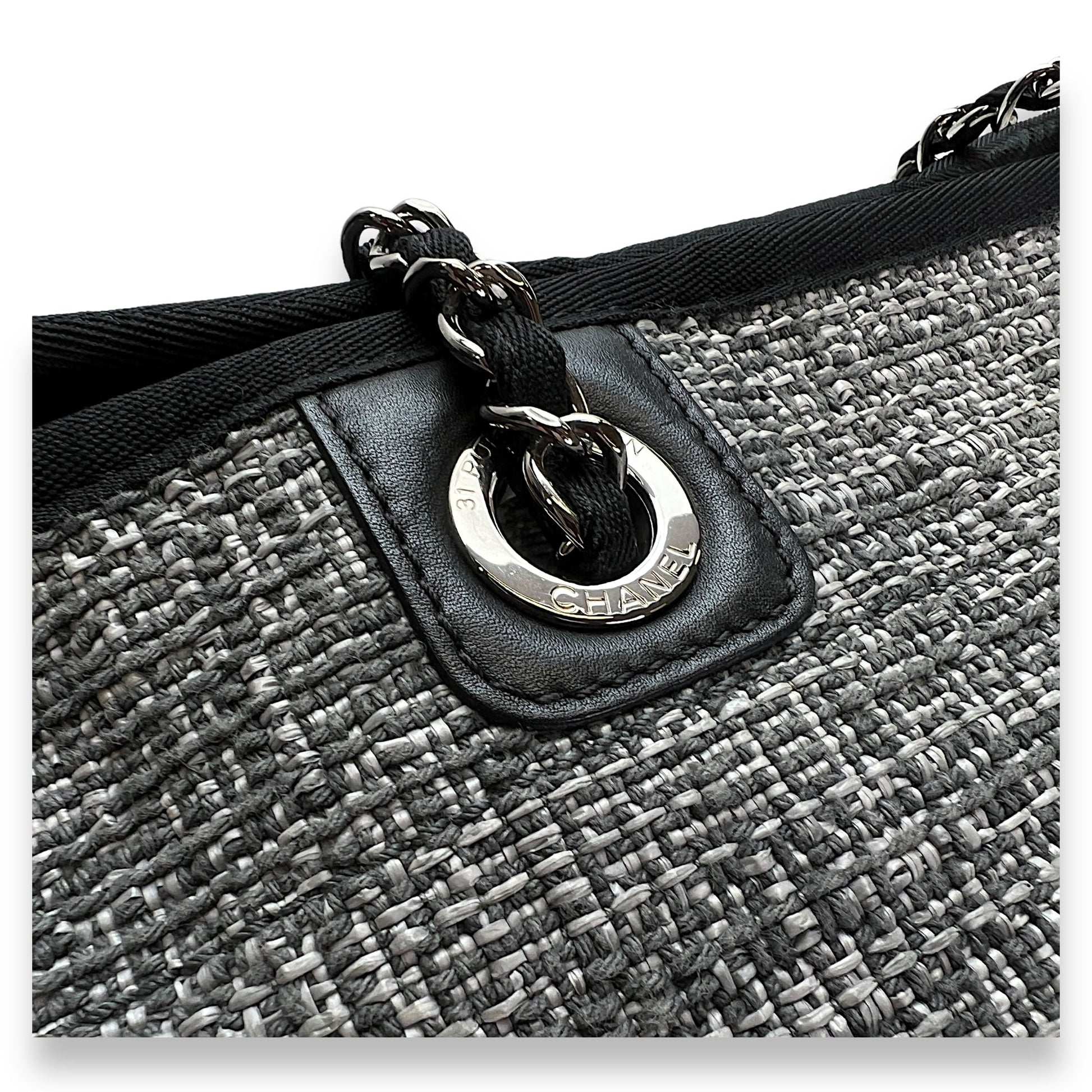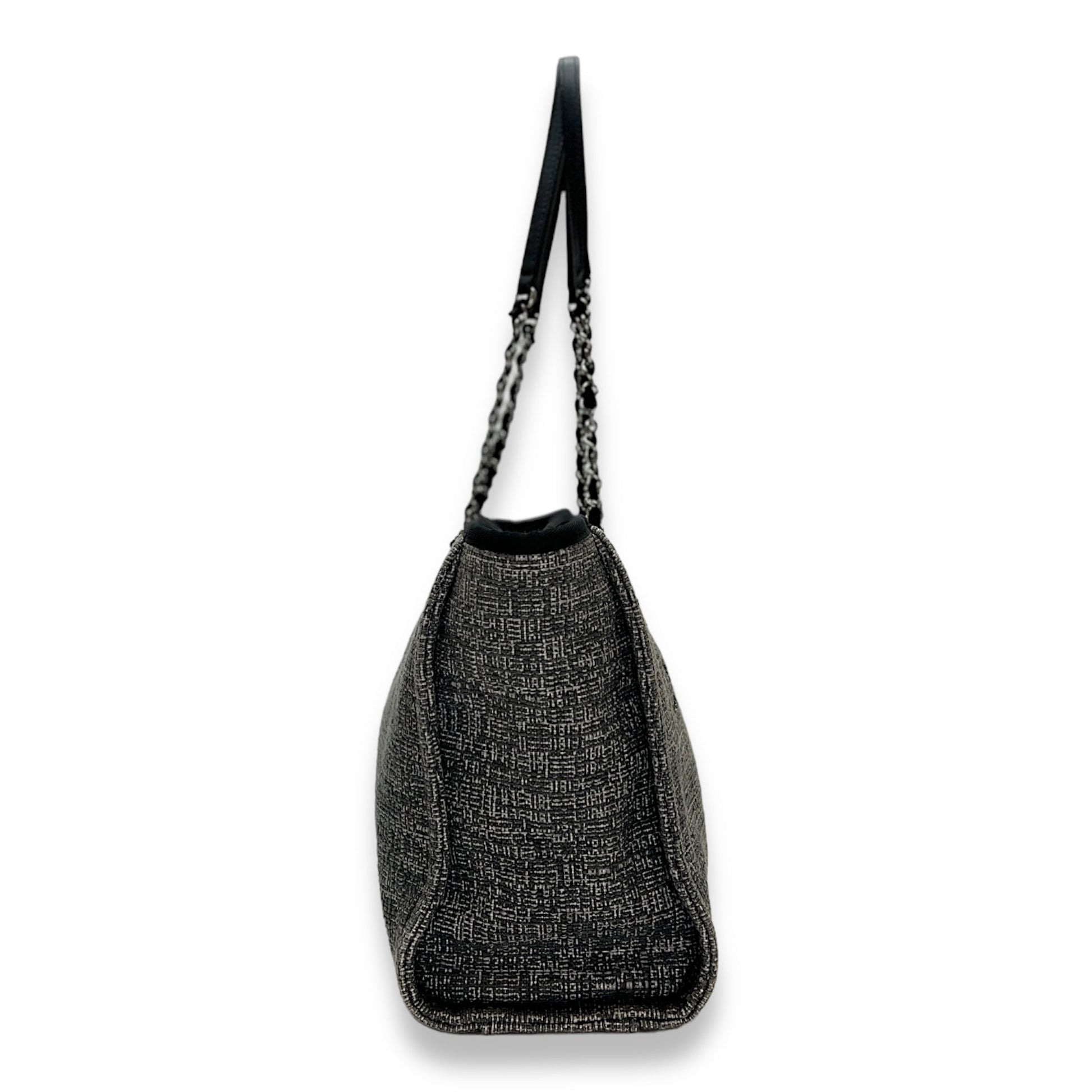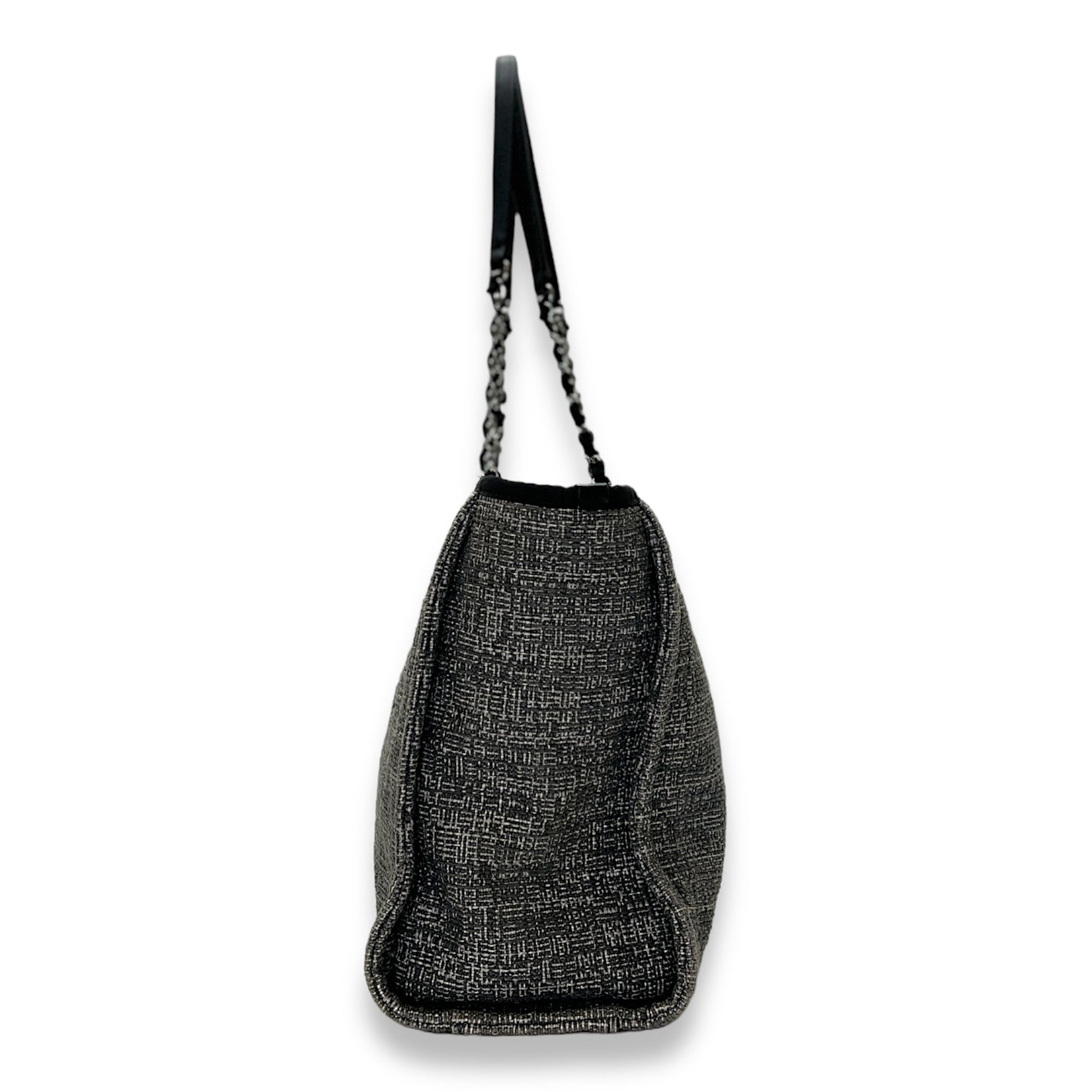Deauville Tote Bag Medium Grey in Tweed , Silver Hardware