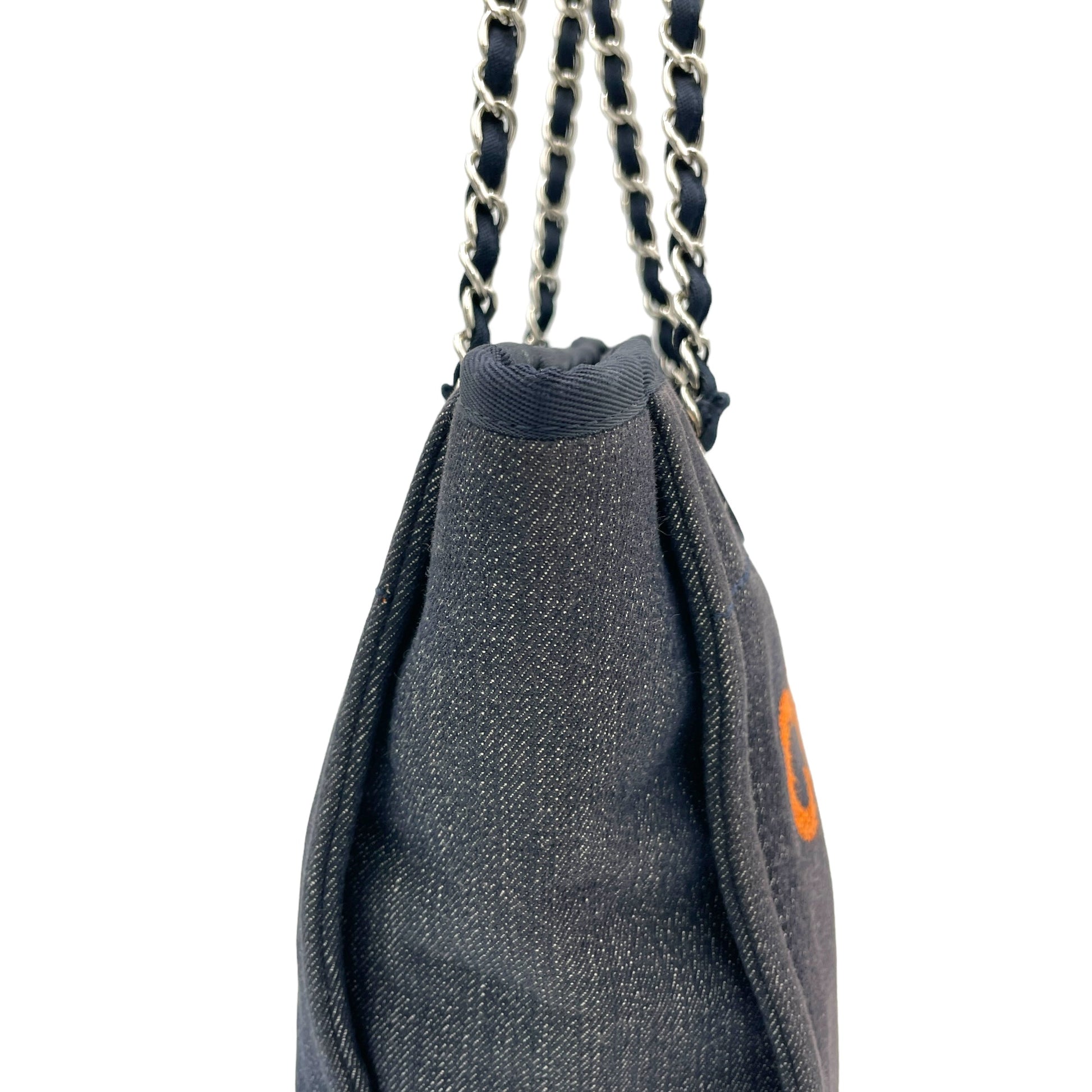 Deauville Blue Tote Bag in Denim, Silver hardware