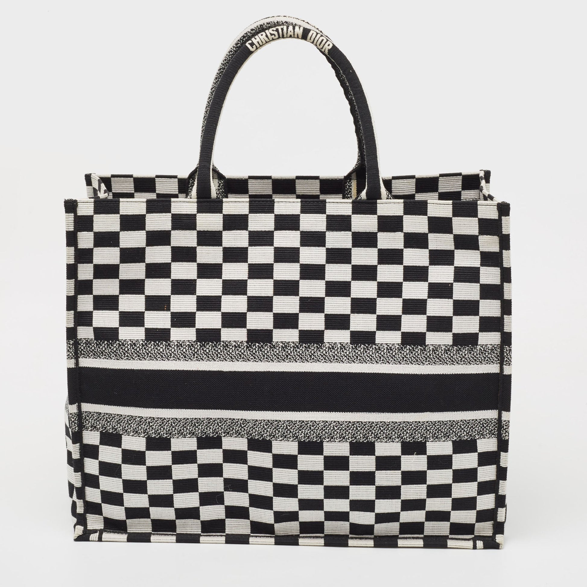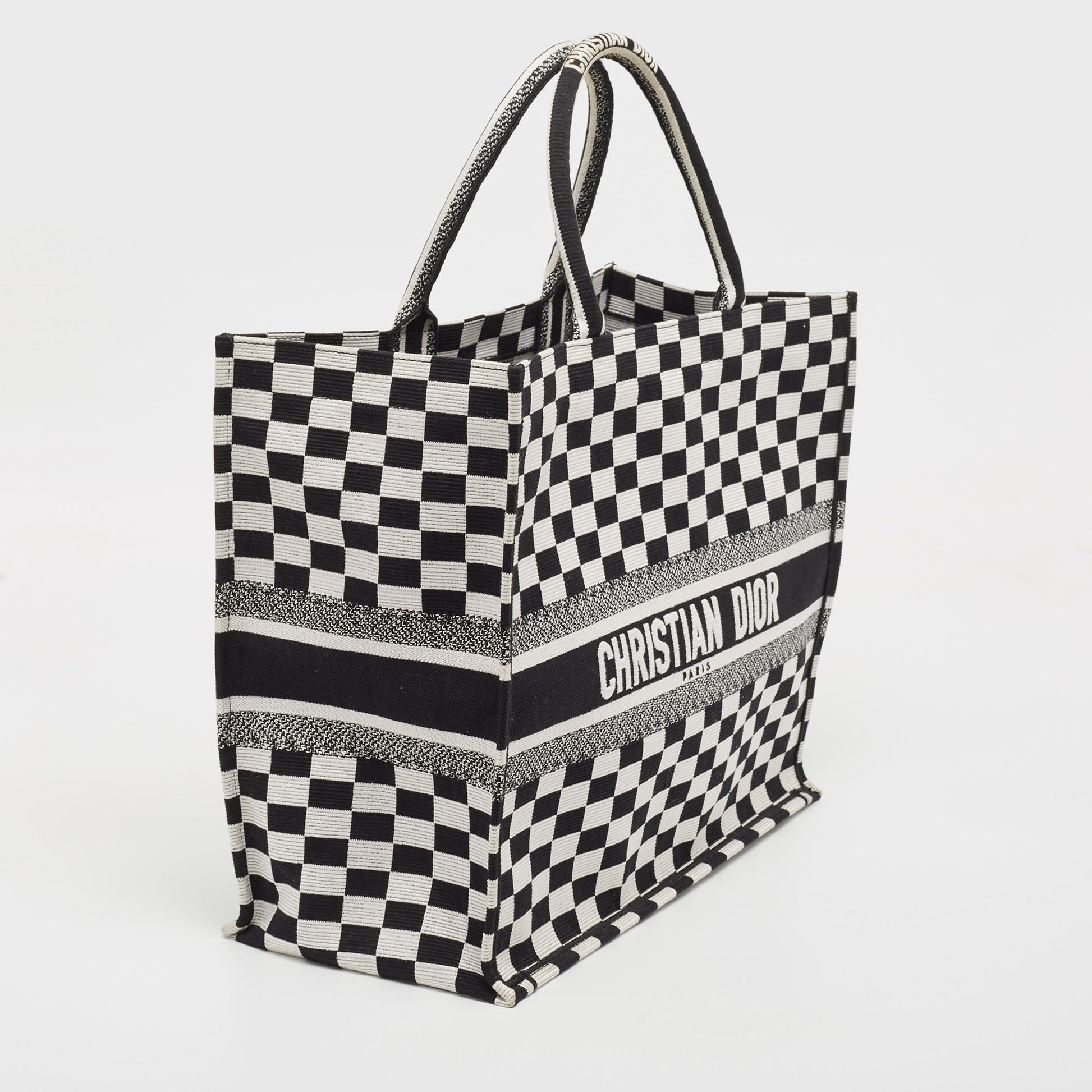 DIOR Black/White Checkered Embroidered Canvas Large Book Tote