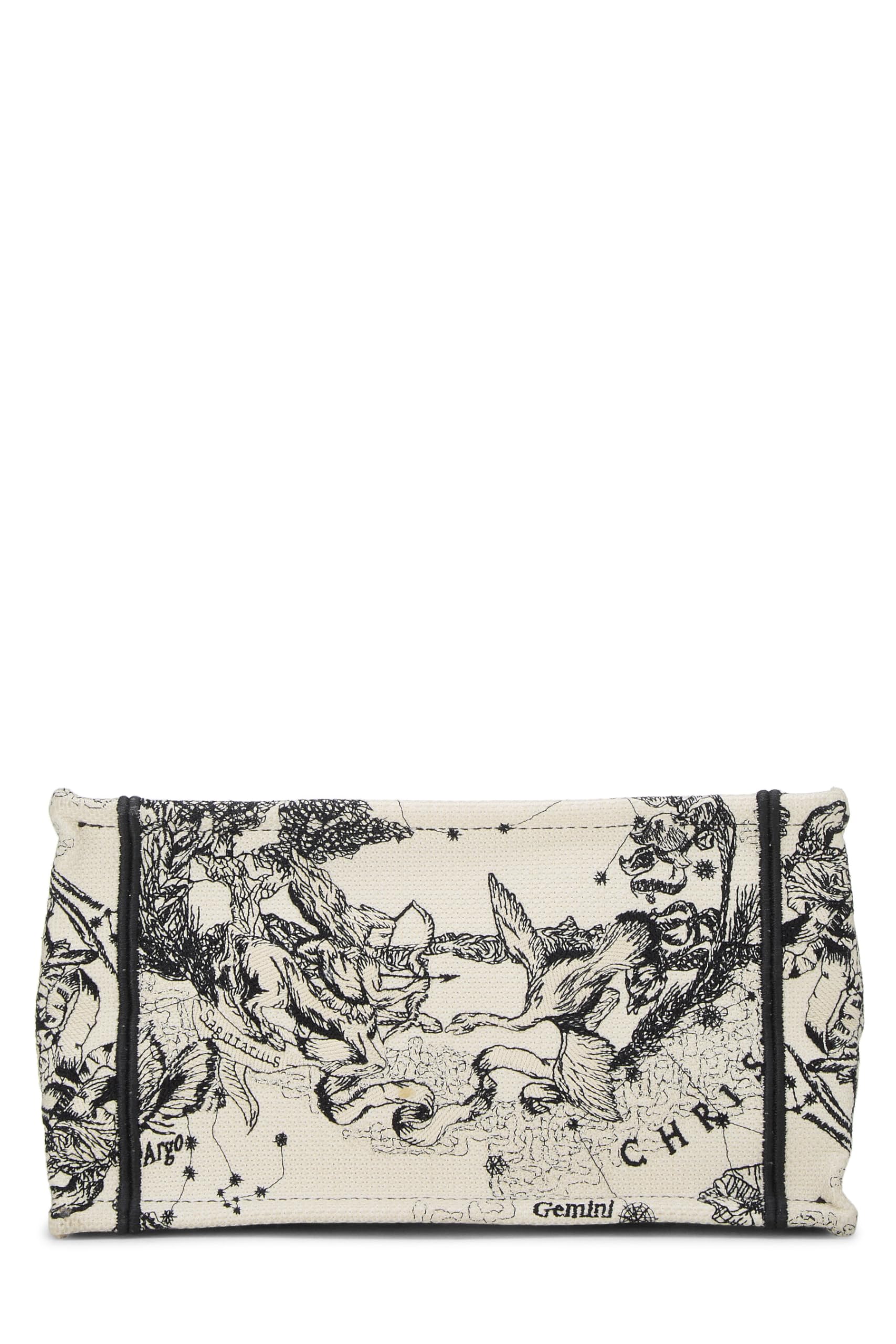 Dior, Black & White Zodiac Embroidered Canvas Book Tote Small, White