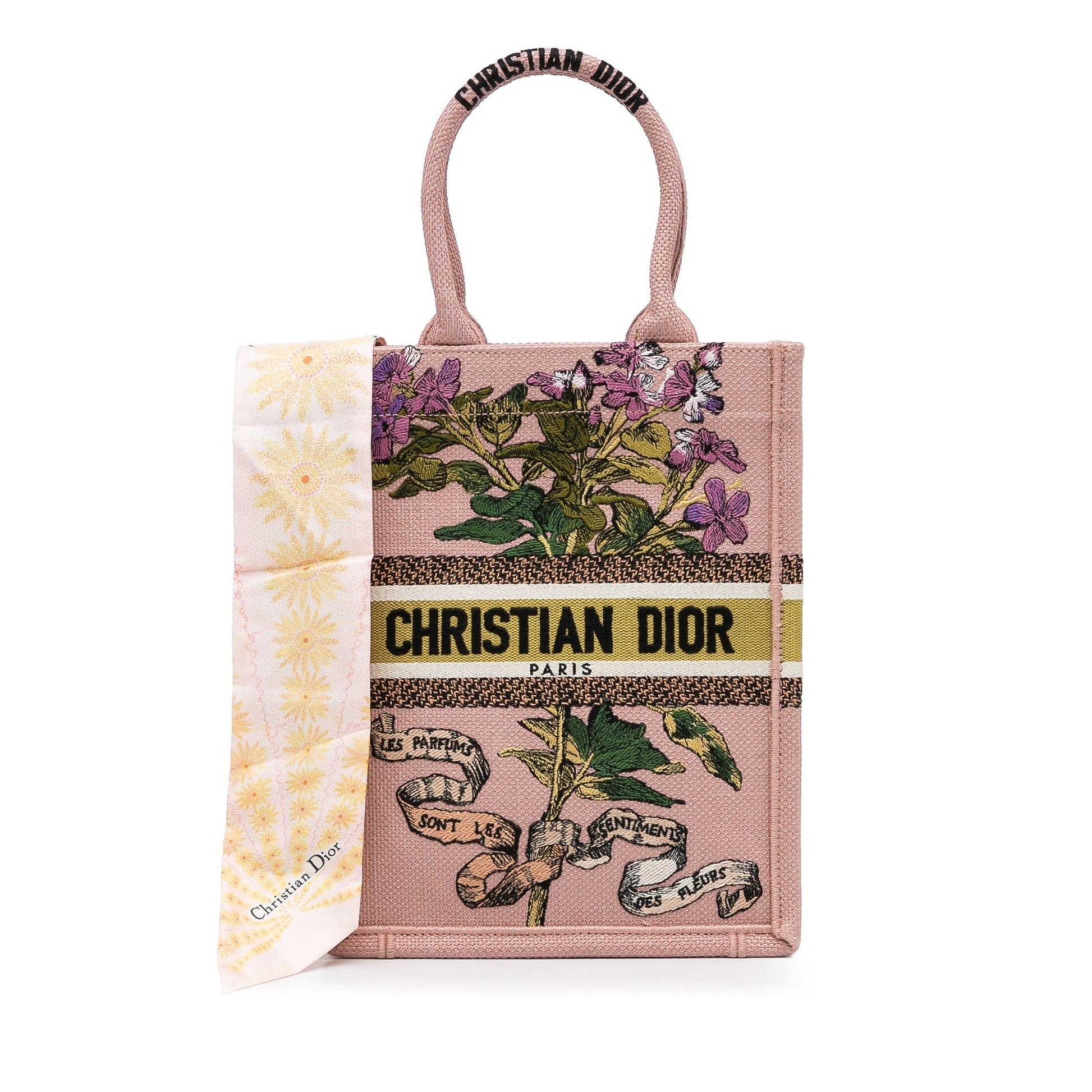 Dior Fleurs Bibliques Vertical Book Tote Pink Embroidered Canvas