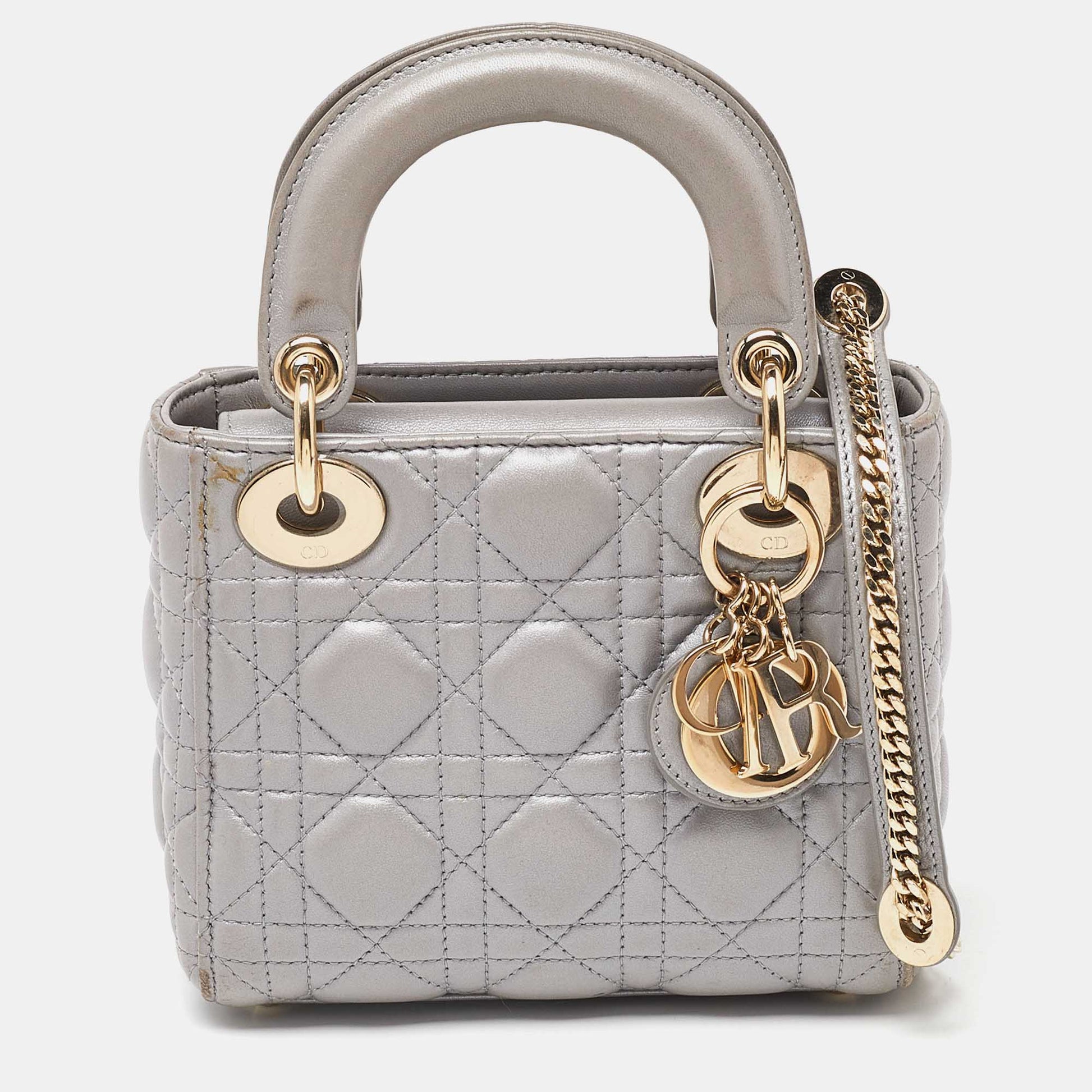 DIOR Grey Cannage Leather Mini Chain Lady Tote