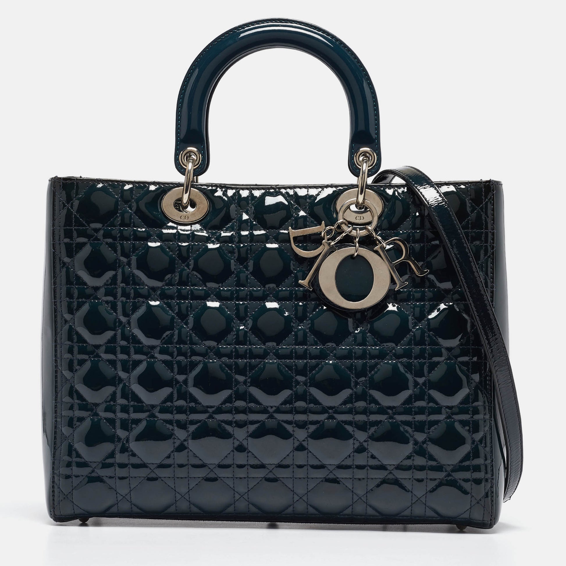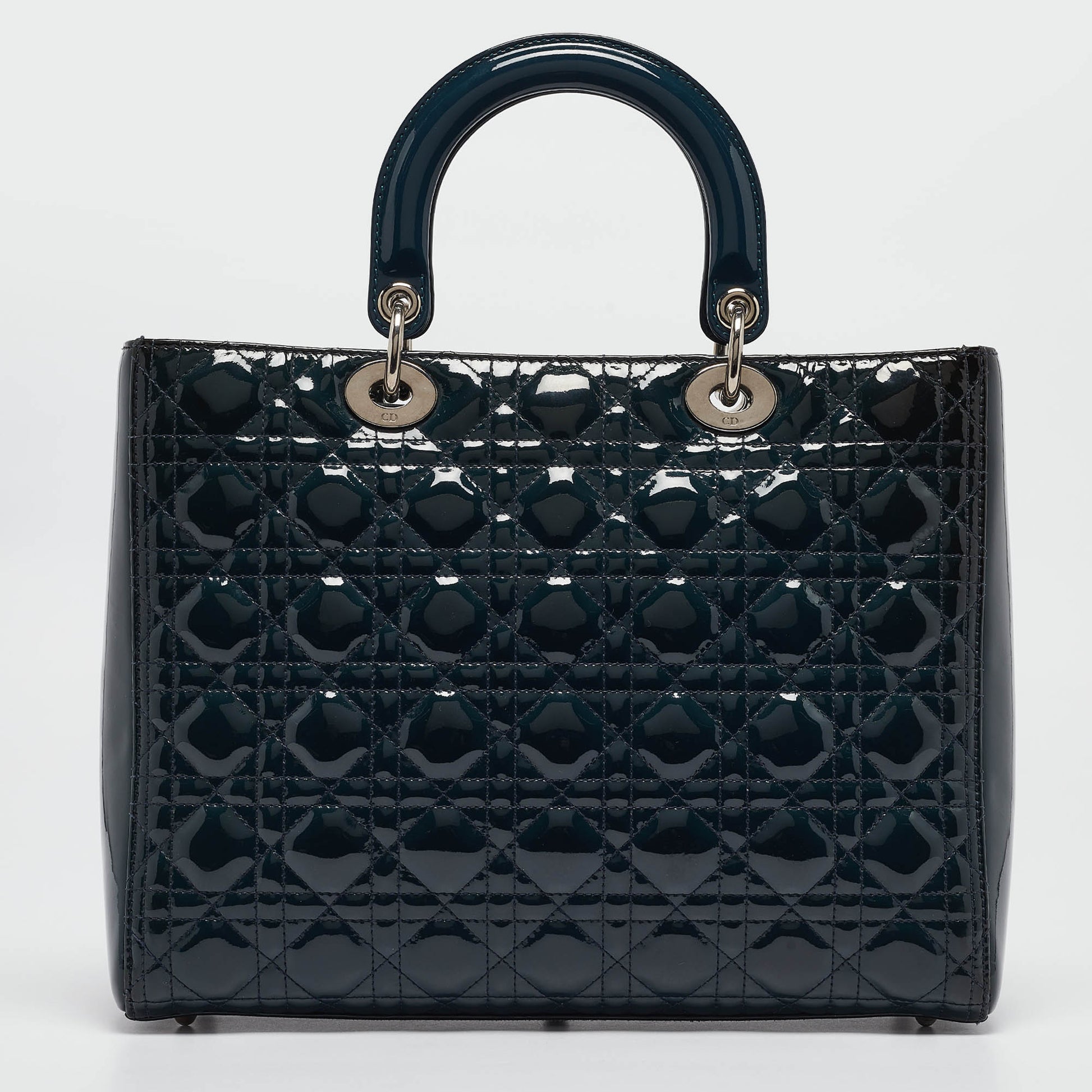 DIOR Navy Blue Cannage Patent Leather Large Lady Tote