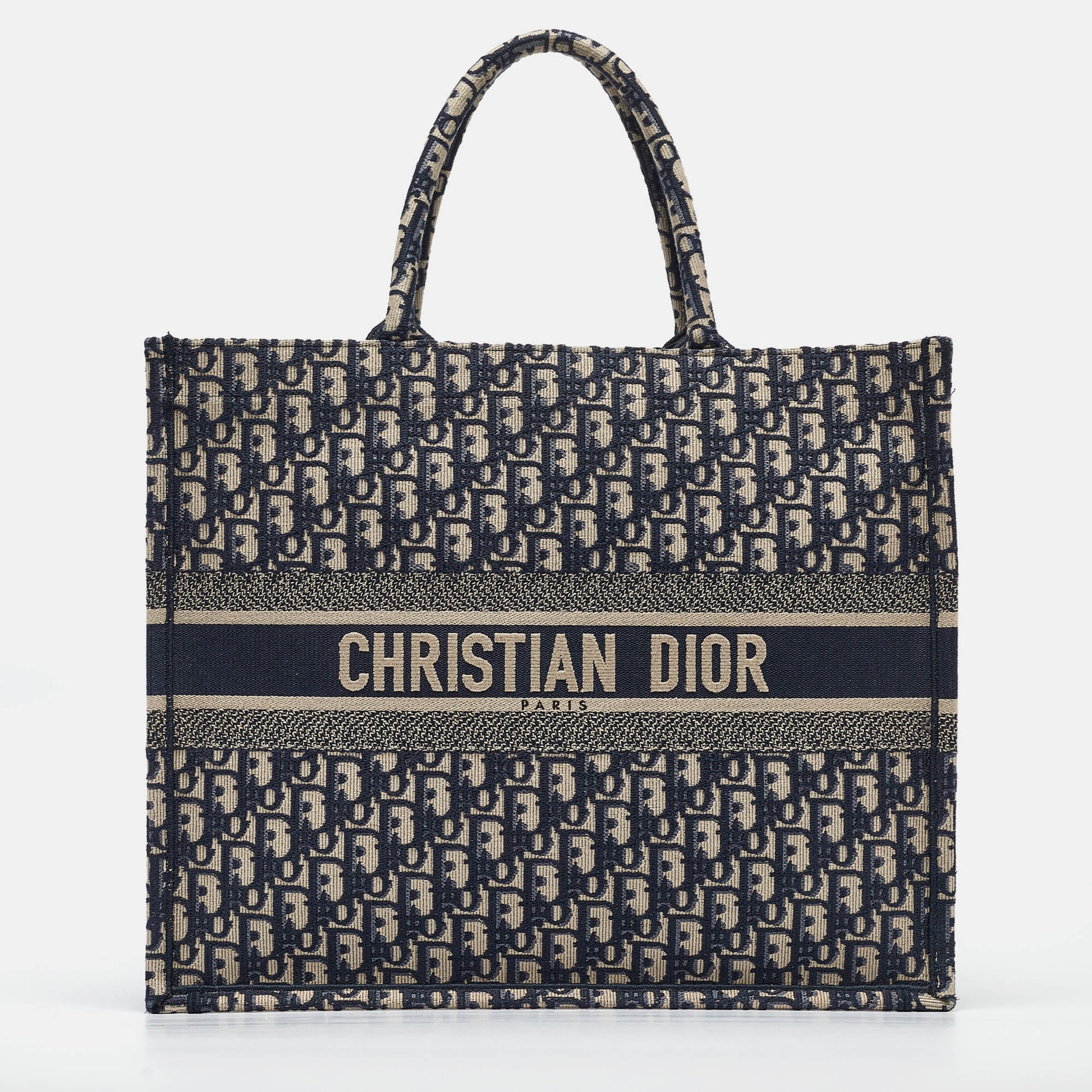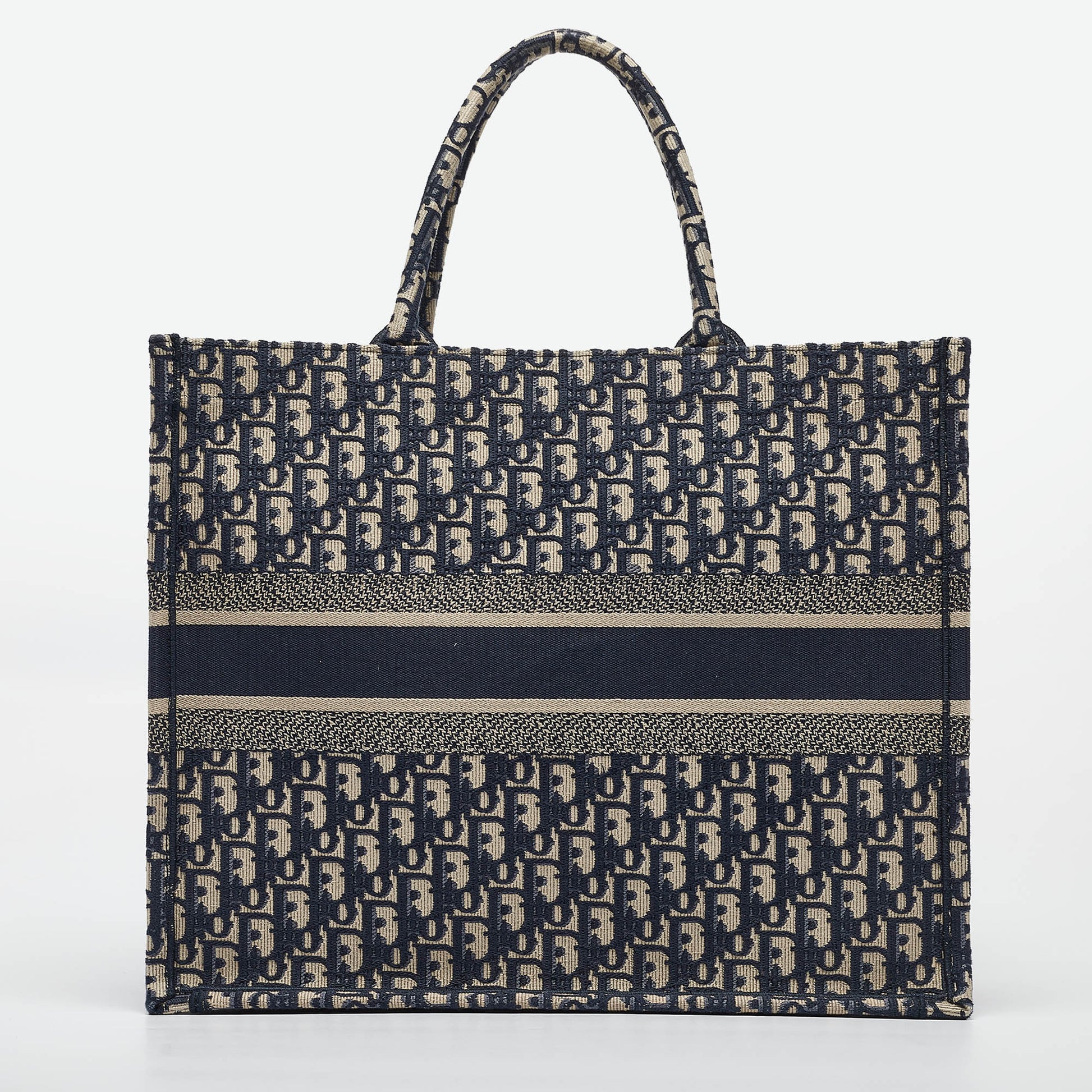 DIOR Navy Blue Oblique Embroidered Canvas Large Book Tote