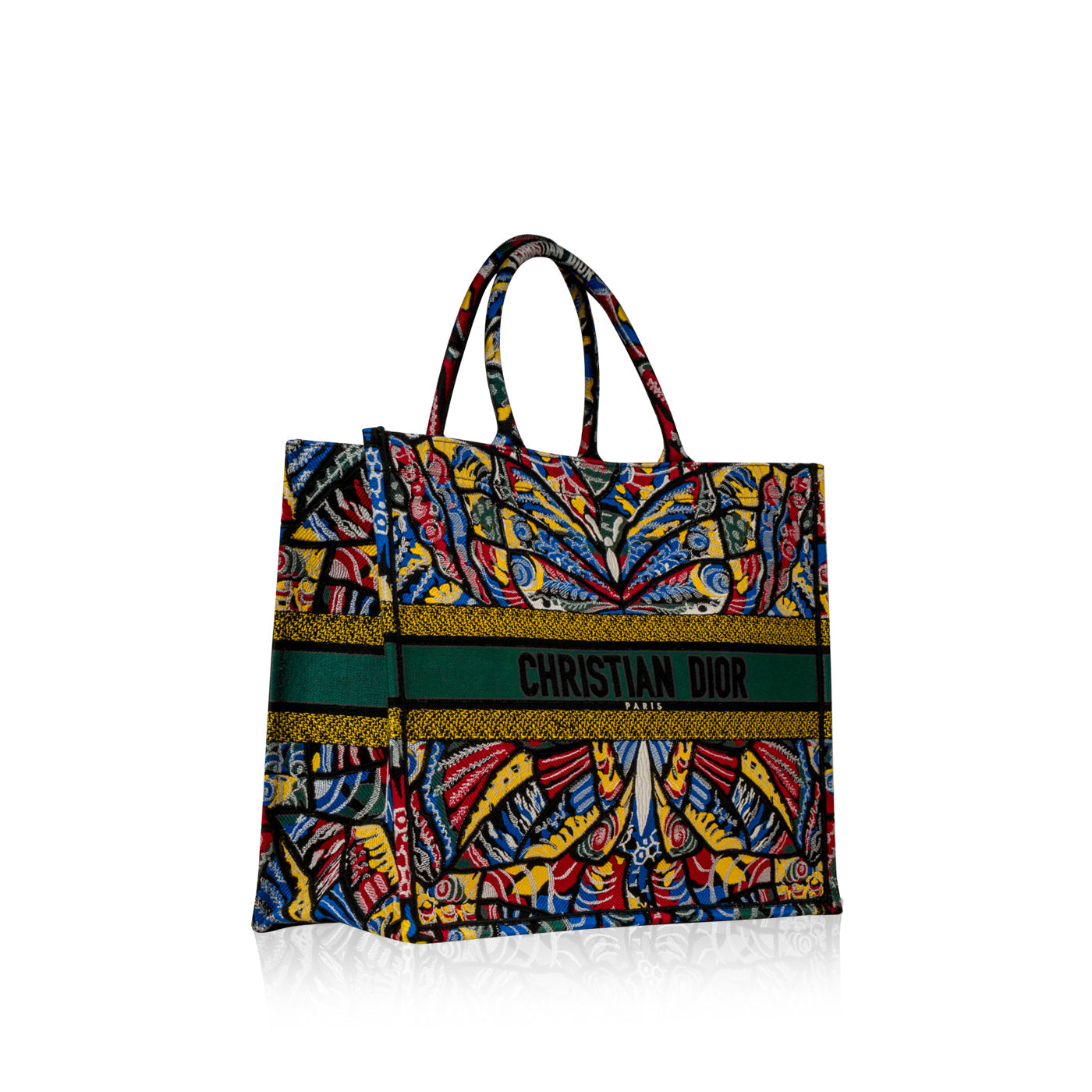 One of the hottest and trendiest bags around right now, you've definitely seen the Dior Book Tote on your favourite Instagram blogger. Not only is the Book tote hard to get your hands on - this particular model crafted in multi-coloured butterfly print canvas is a limited edition piece that's next to impossible to find. Pretty much it goes without saying that the Book tote is a bag that every single person needs in their life. Whether you're a student, fashion-forward business woman, travel lover, or just in desperate need of a luxurious go-to bag, the Book tote is the one for you. With a modern, youthful appearance that's fun, colourful and joyous, this glamorous bag is really made for any woman who likes to carry her whole world with her wherever she goes. An easy compliment to any neutral-toned or monochromatic look, the Book tote is a true must have for any Dior lover. A well-worthy addition to any luxury handbag collection, no Dior collection is truly complete without one.