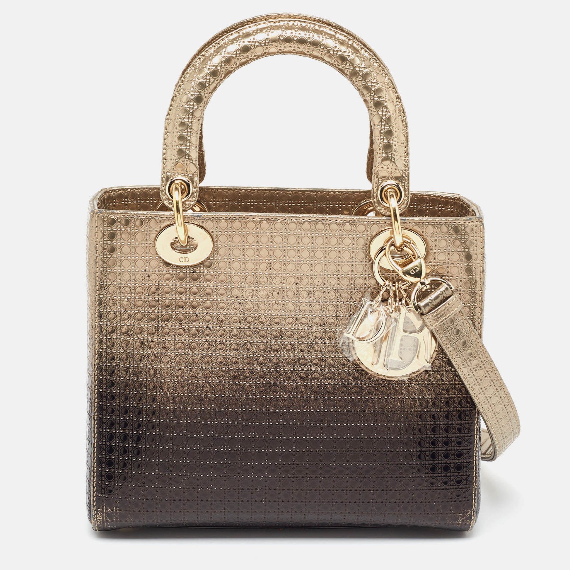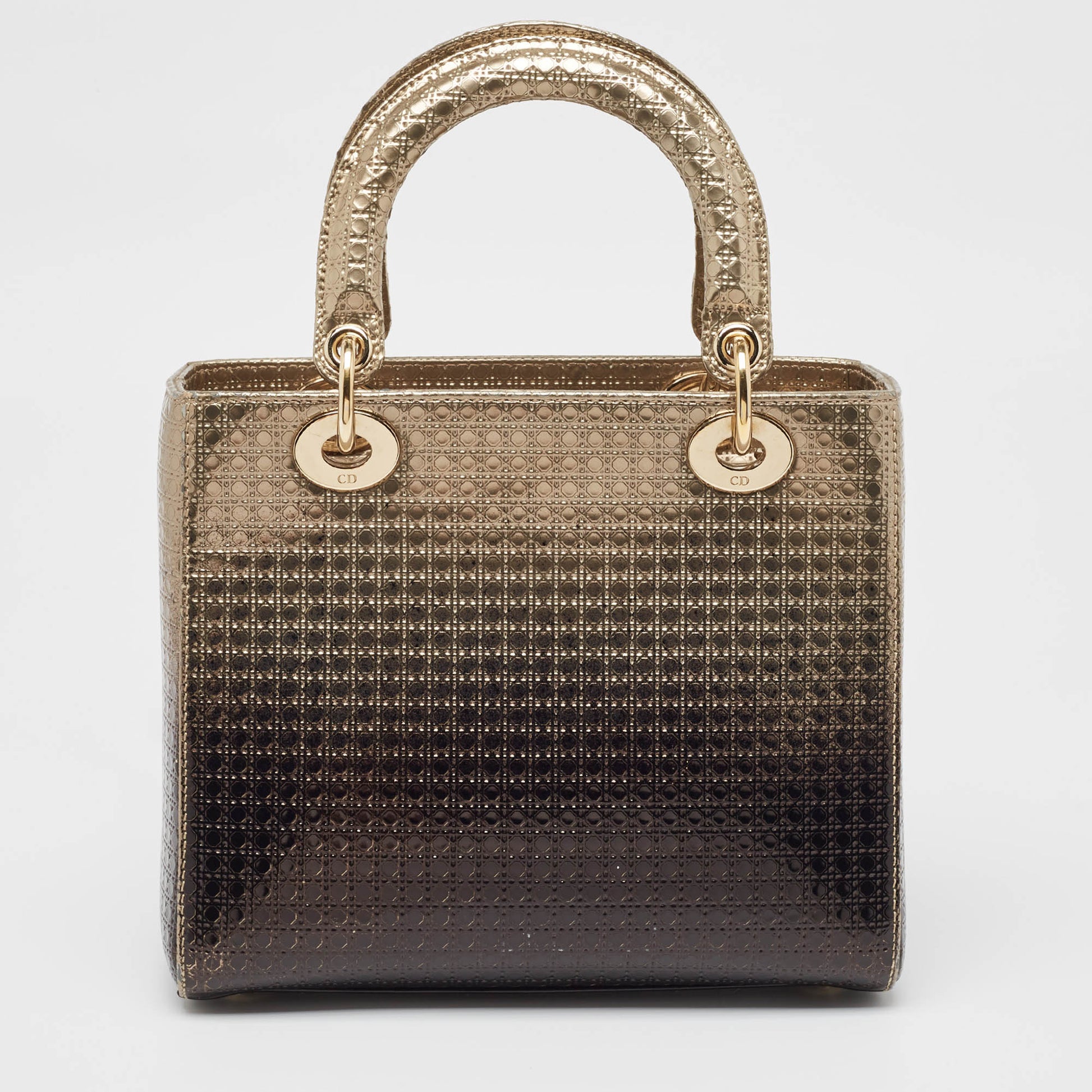 DIOR Ombre Gold Micro Cannage Patent Leather Medium Lady Tote