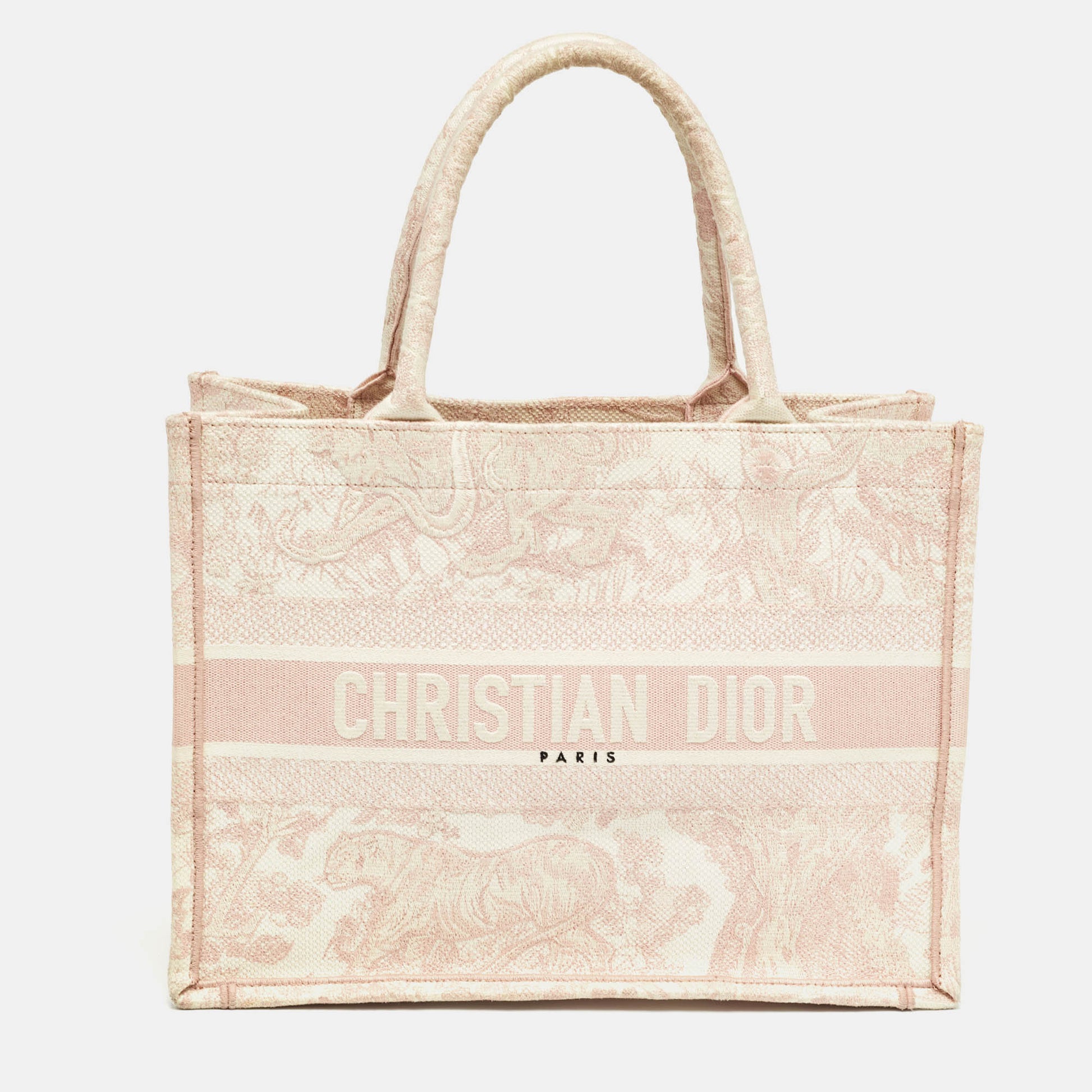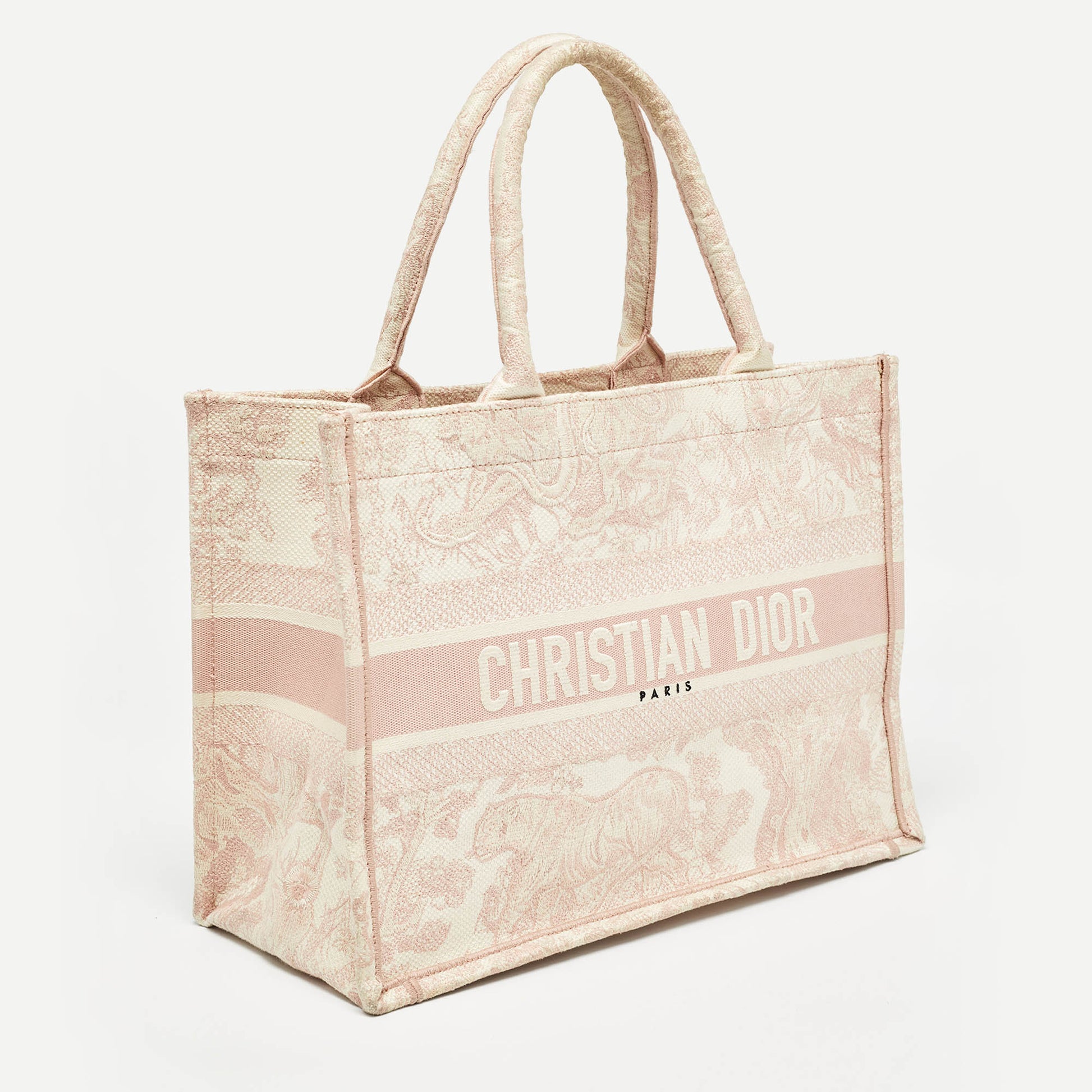 DIOR Pink Embroidery Canvas Medium Book Tote