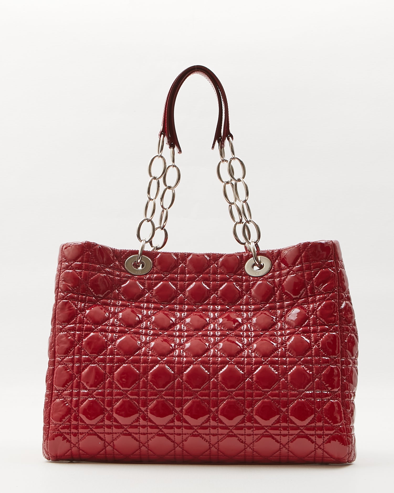 Dior Red Patent Leather Cannage Large Shopping Tote Bag