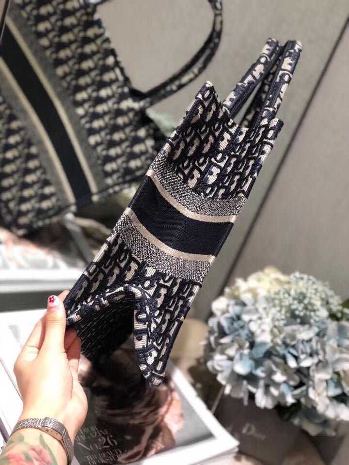 Dior Small Book Tote Bag In Blue Oblique Canvas